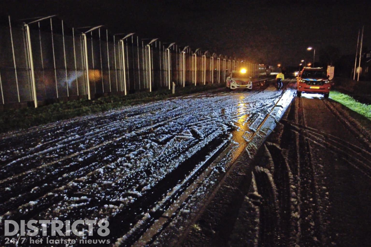 Honselersdijk – De flinke hagelbui die over onze regio heen kwam zondagavond zijn er verschillende incidenten gebeurd. Op de Zwethlaan in Honselersdijk raakte een auto te water door de gladheid.