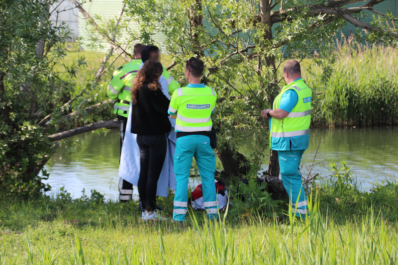 Ambulancepersoneel is ter plaatse geweest, maar vervoer naar het ziekenhuis was niet nodig. De auto is total loss en is door een berger uit het water gehaald.