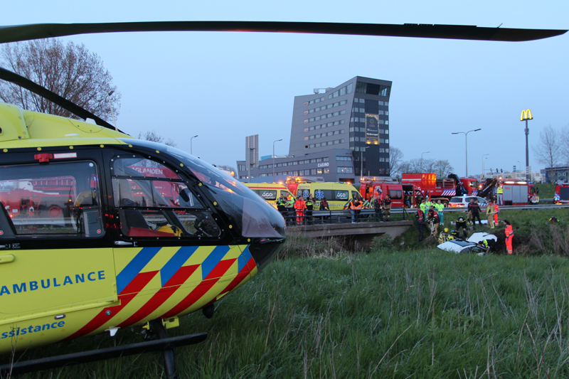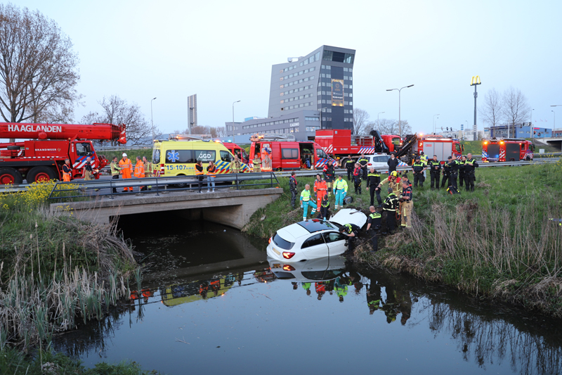 Delft – Maandagavond 15 april is er langs de A13 bij Delft-Noord een auto te water geraakt, de auto knalde volgens een getuige tussen de vangrail door en belandde een stuk verder in een meertje. Direct werden de hulpdiensten groots gealarmeerd, brandweer, ambulance en politie kwamen met spoed ter plaatse. Ook werd de traumahelikopter gealarmeerd.