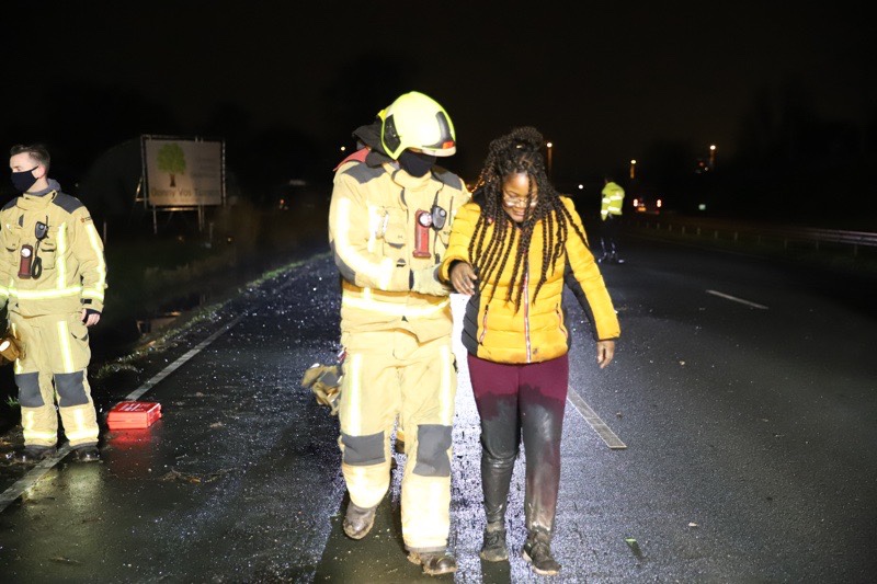 Een voorbijganger heeft een poging gedaan de bestuurder uit het voertuig te halen,De bestuurder van het voertuig is opgevangen door de brandweer en het ambulancepersoneel.