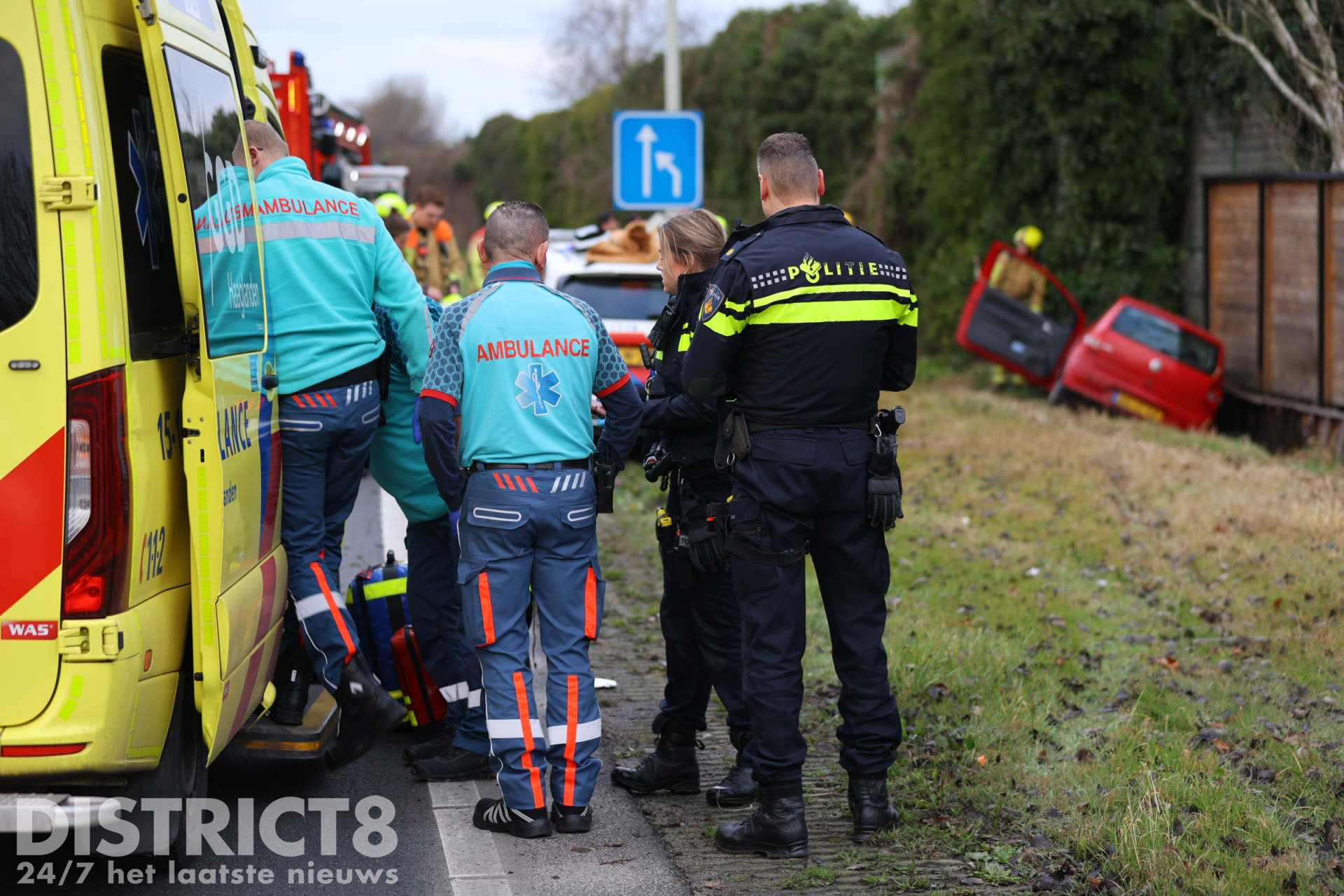 Ter plaatse was een automobilist met zijn auto van de weg geraakt en kwam tot stilstand in de greppel. De bestuurder raakte niet bekneld. De inzittende wordt behandeld in de ambulance aan zijn verwondingen, de arts van het MMT ondersteunt hierbij. De brandweer verricht hand-en-spandiensten.