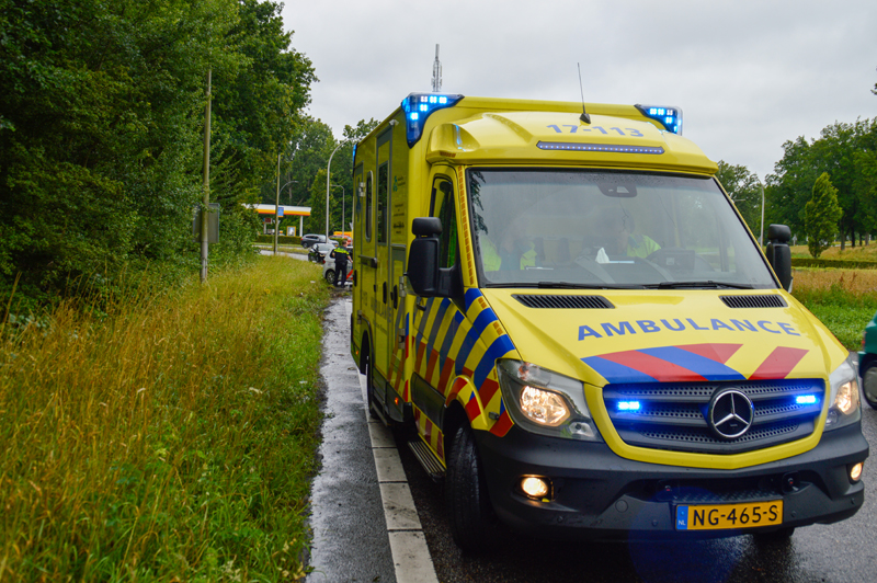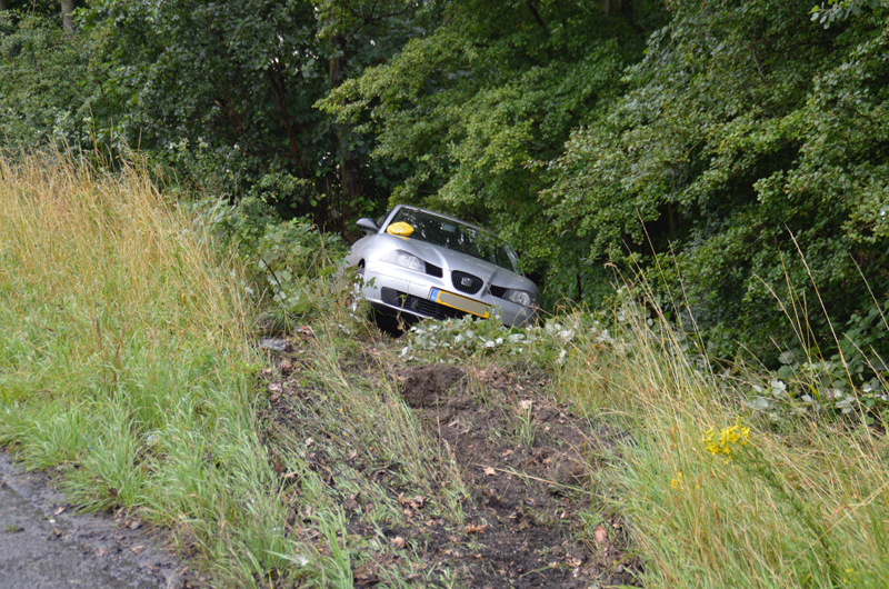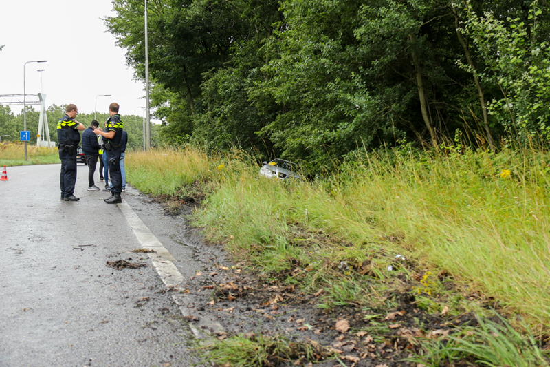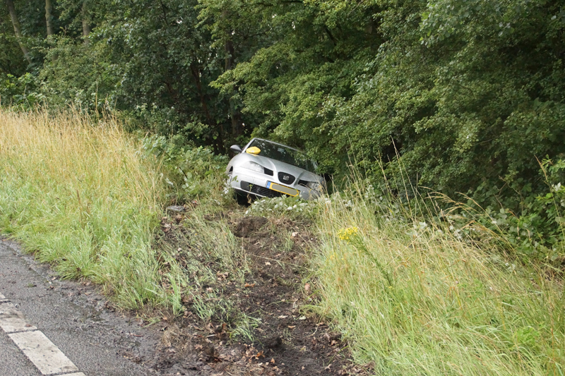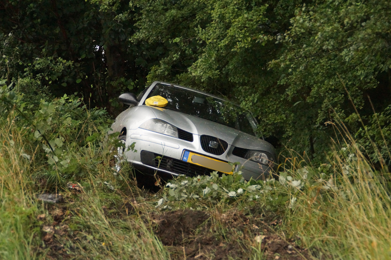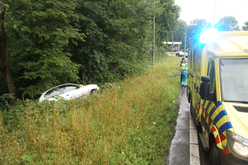 De auto raakte, mogelijk door het natte wegdek, van de weg en kwam tot stilstand tegen een boom in de berm. De inzittenden konden het voertuig zelfstandig verlaten.