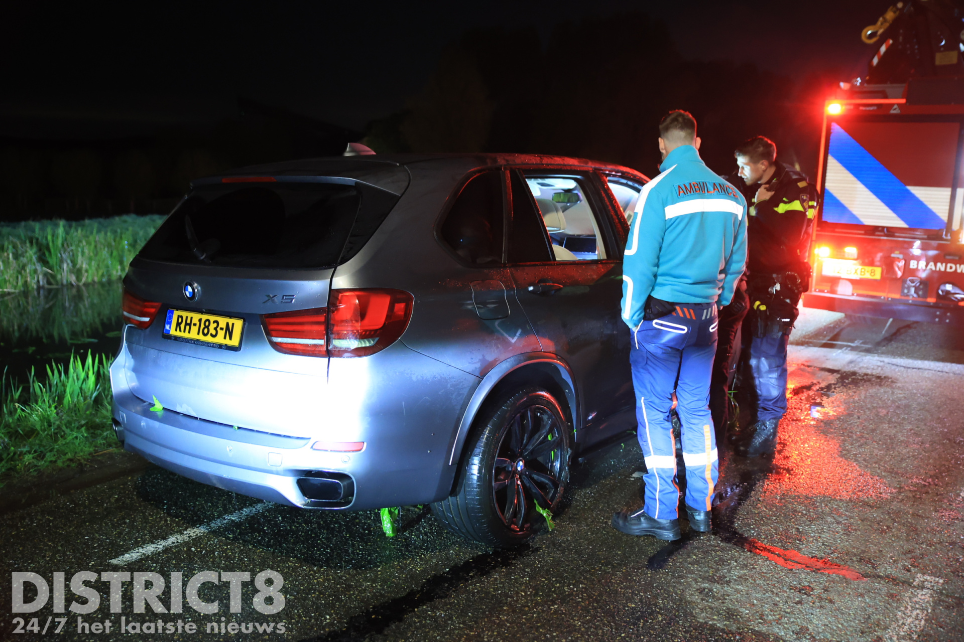De bestuurder van de auto kon snel uit zijn auto komen en wordt in de ambulance onderzocht.