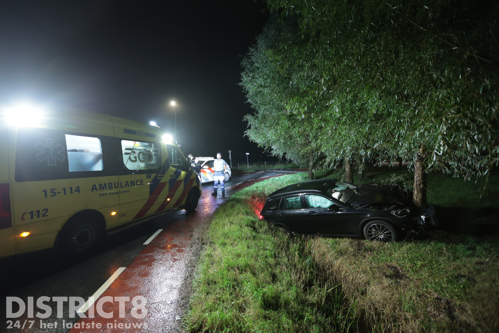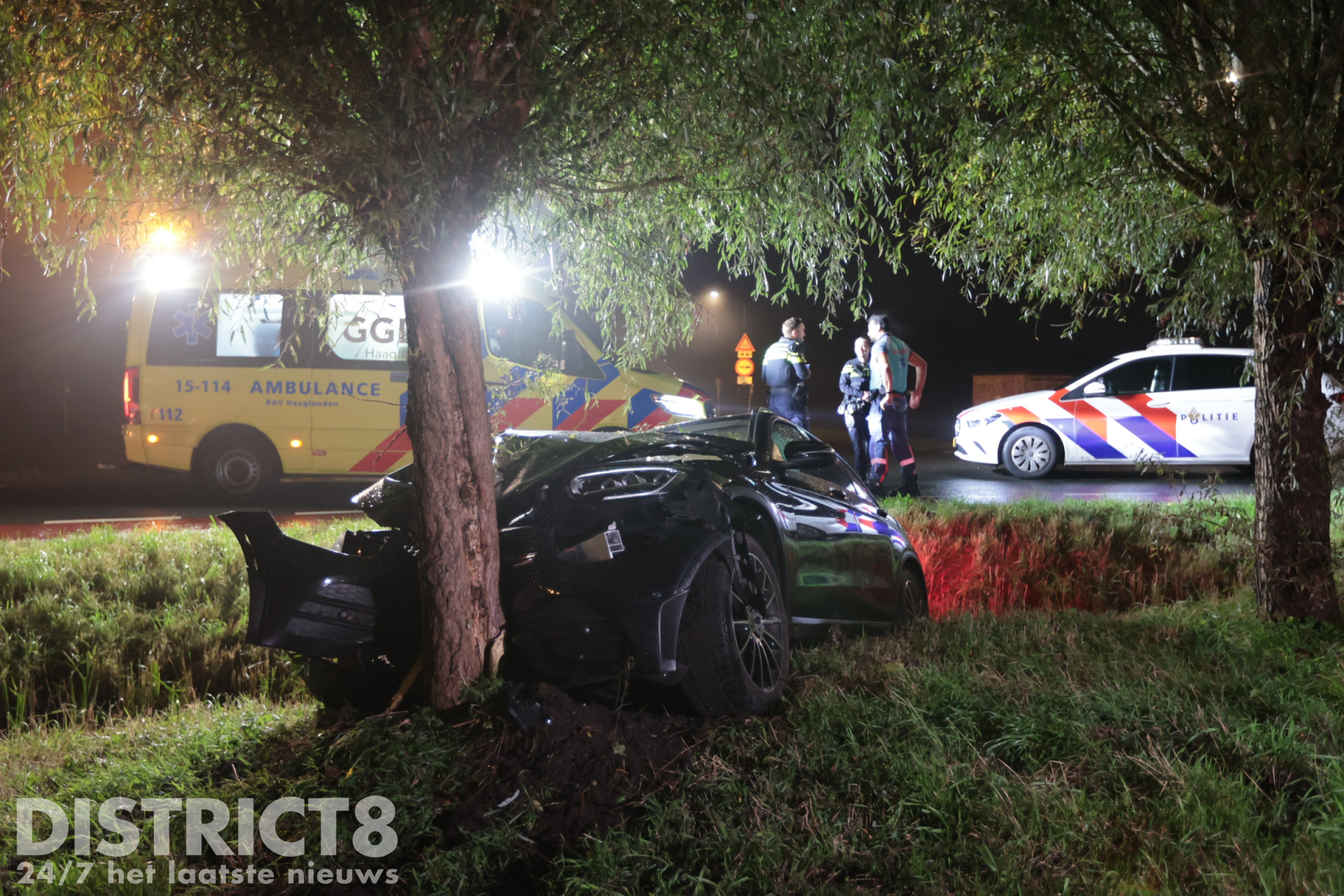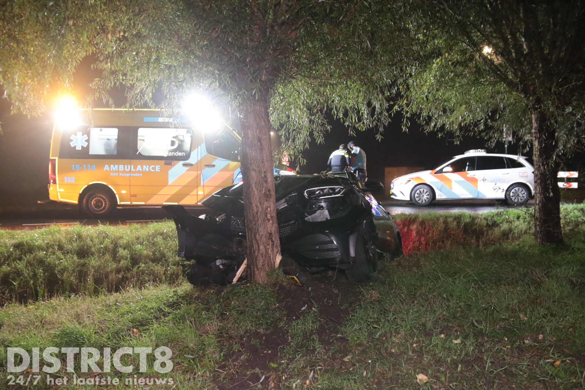 Leidschendam – Op de Kortverlorenweg kruising Veenweg in Leidschendam is dinsdagavond 1 oktober een auto van de weg geraakt en tegen een boom tot stilstand gekomen.
