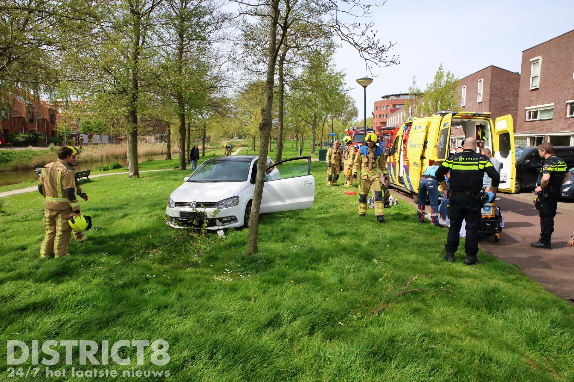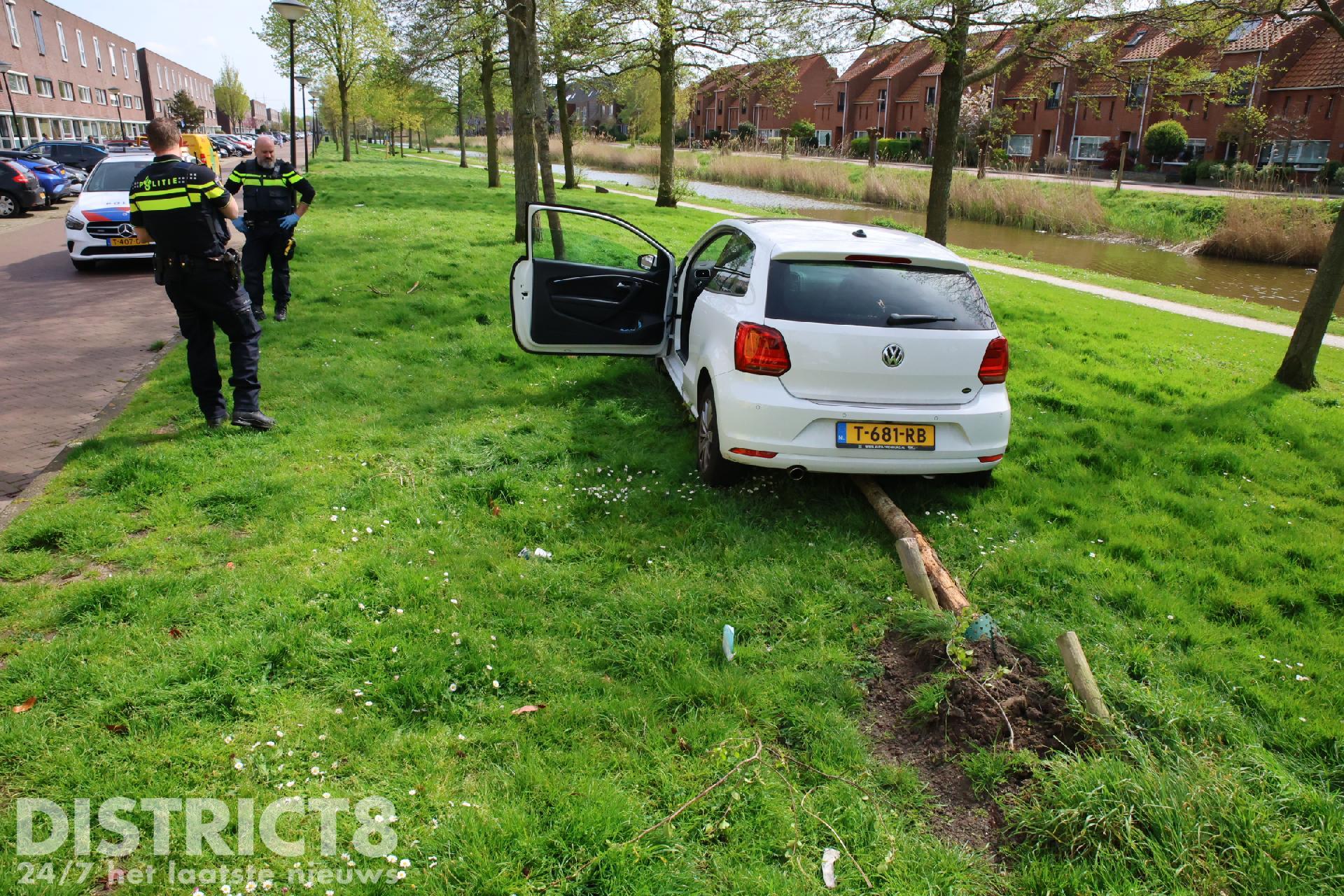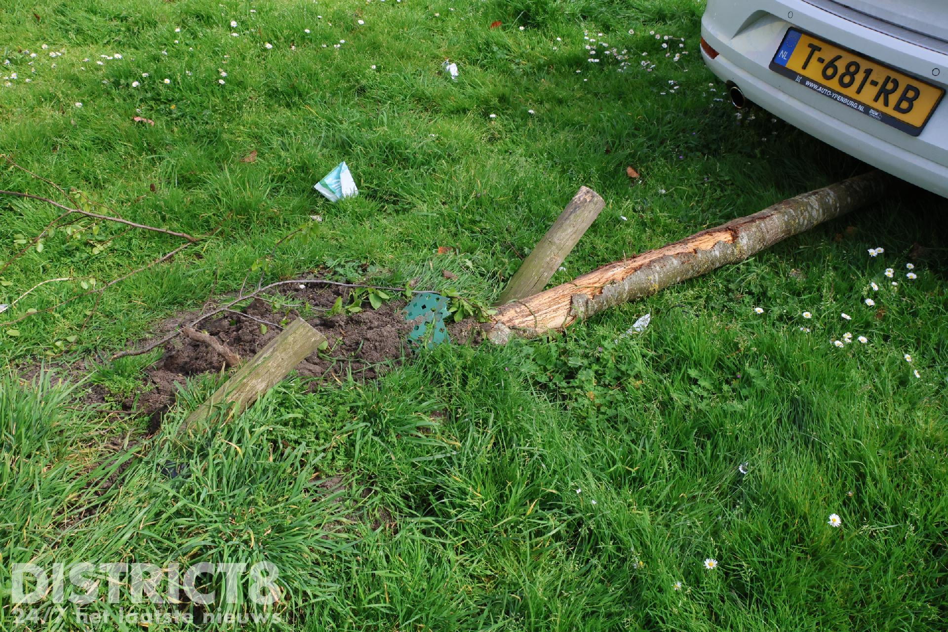 De auto heeft lichte schade opgelopen en een boompje is gesneuveld.