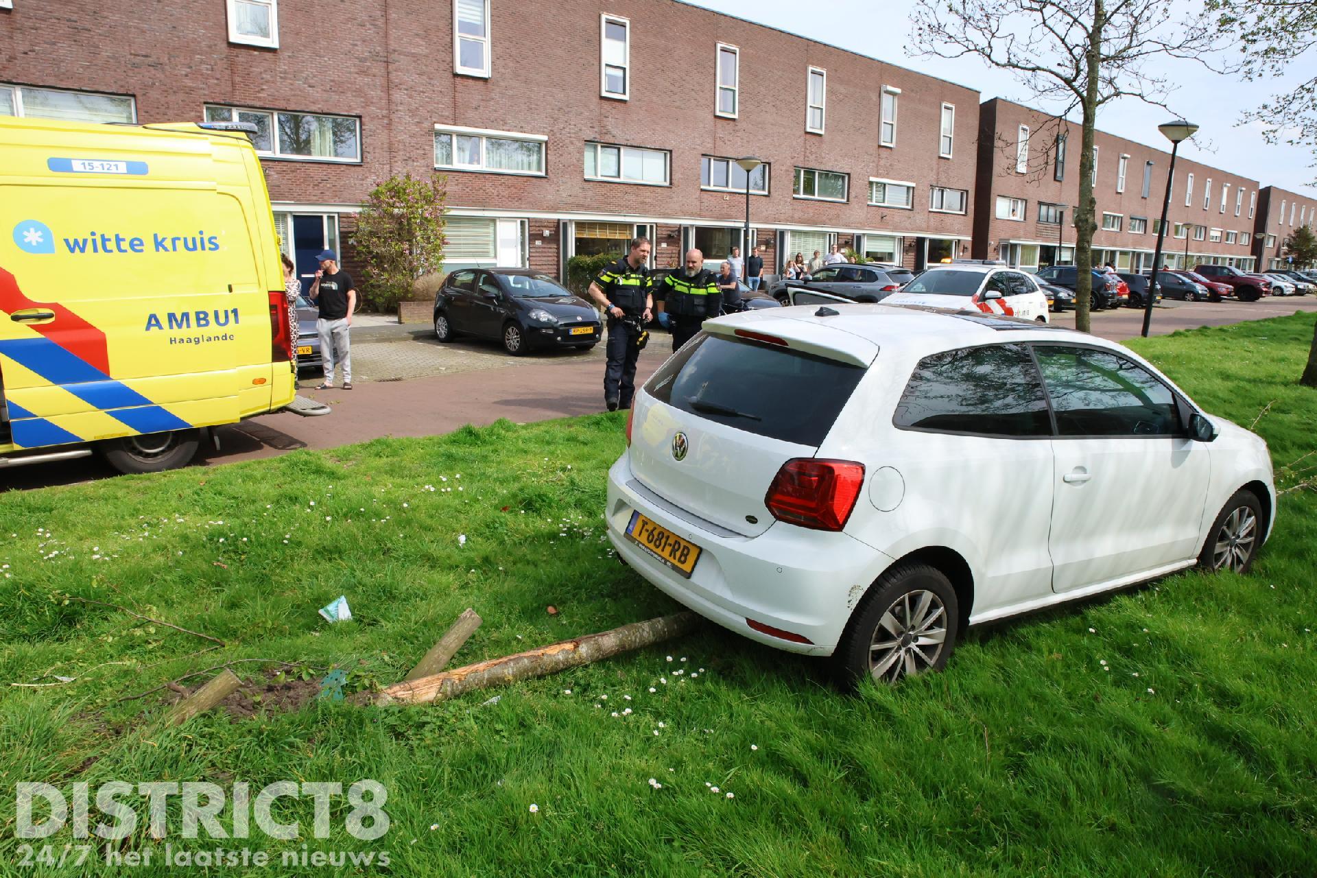 Den Haag – Zaterdagmiddag 13 april is een auto van de weg geraakt en heeft daarbij een boompje geraakt op de Athenesingel in Den Haag.