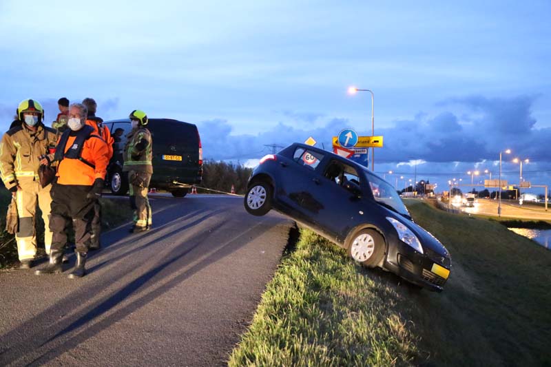 Maasdijk – Op de Maasdijk in Maasdijk is woensdagavond 14 oktober een auto in de berm terechtgekomen na een mislukte keermanoeuvre. De auto kwam met één wiel van de grond en dreigde in het water te vallen.