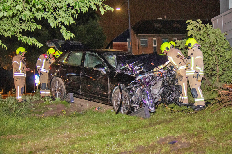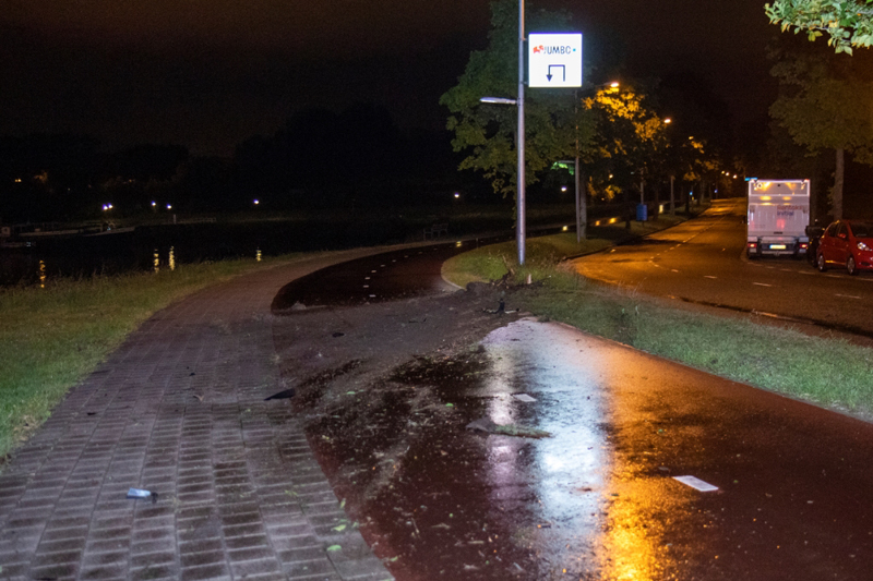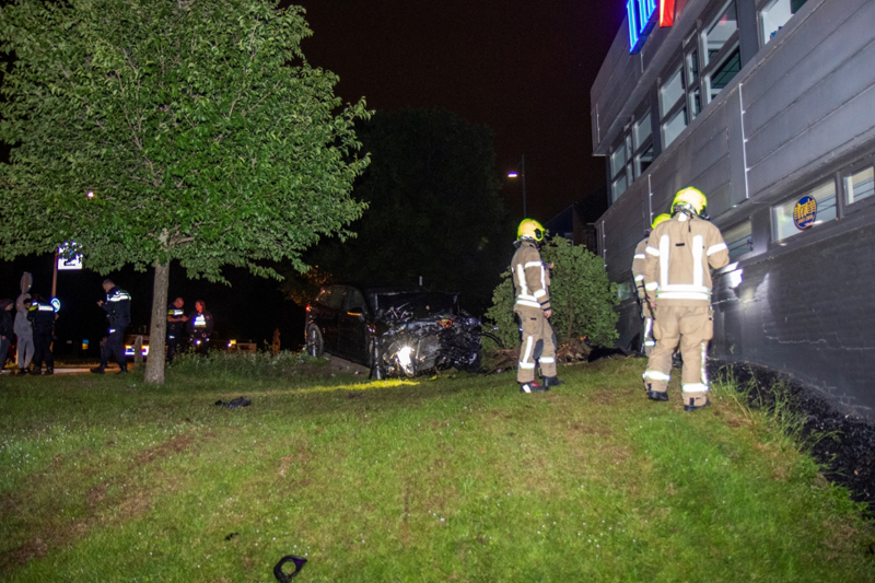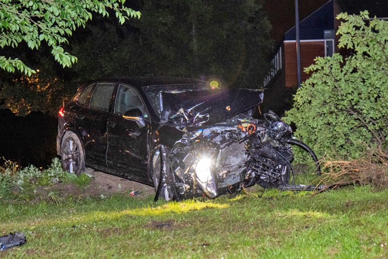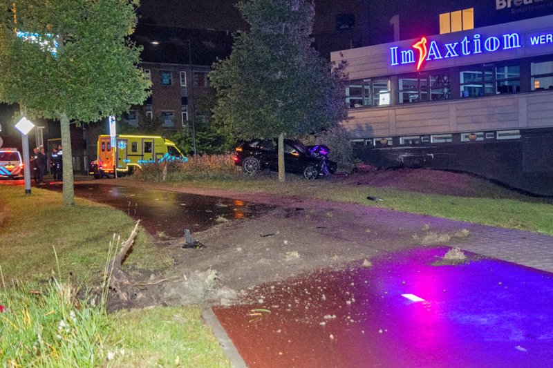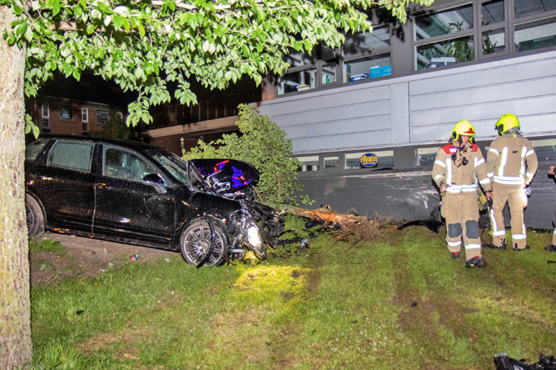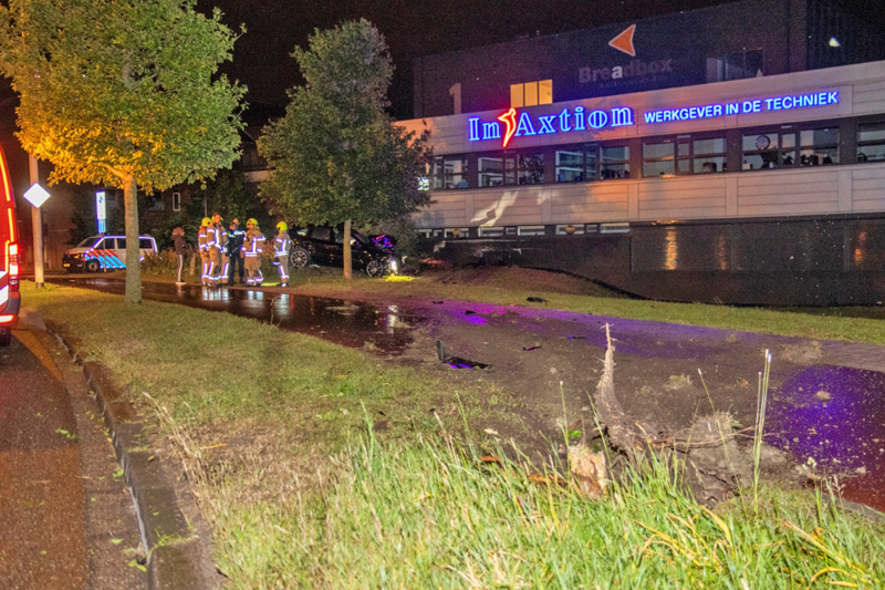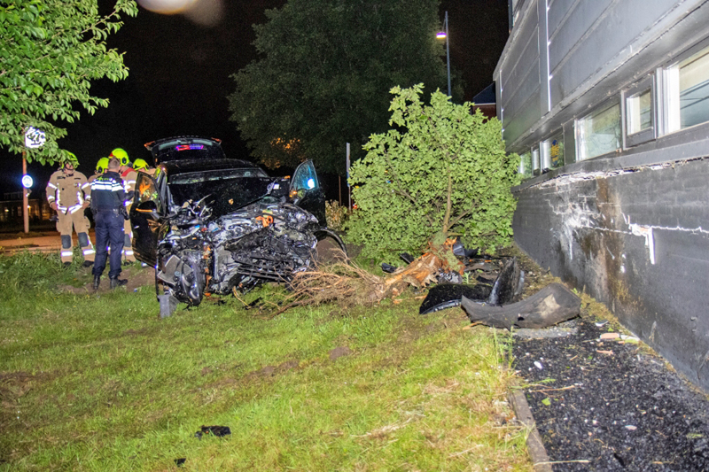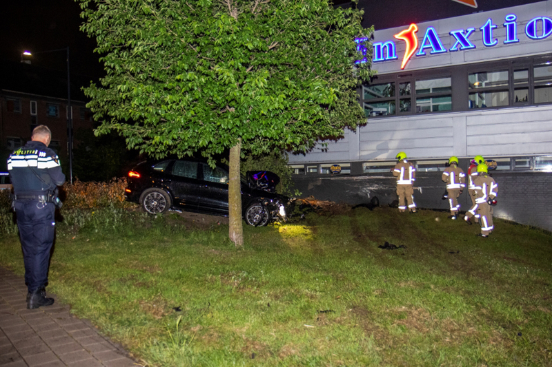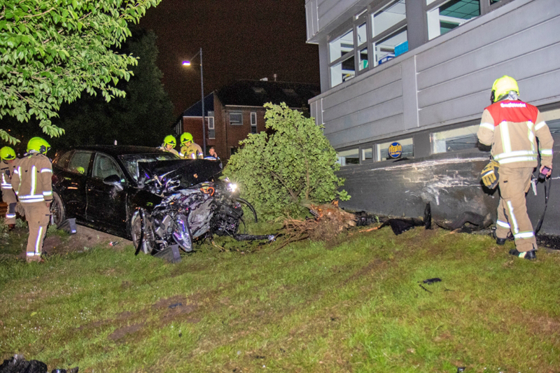 Schiedam – Op de Havendijk in Schiedam heeft in de nacht van maandag op dinsdag een ongeval plaatsgevonden. Een auto vloog met forse snelheid uit de bocht, schampte een lantaarnpaal, reed een boom uit de grond en kwam tot stilstand tegen een gebouw.