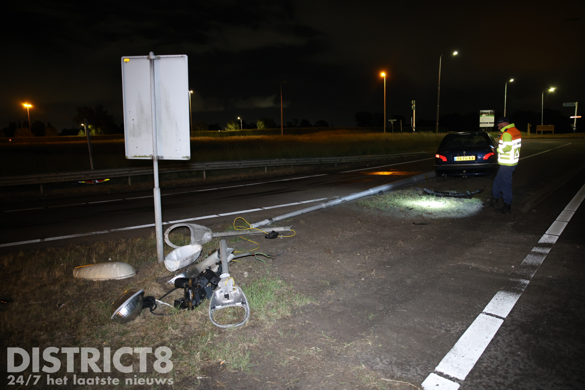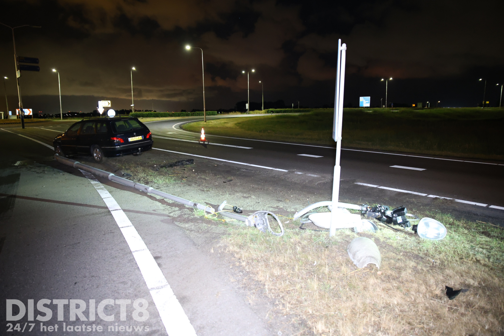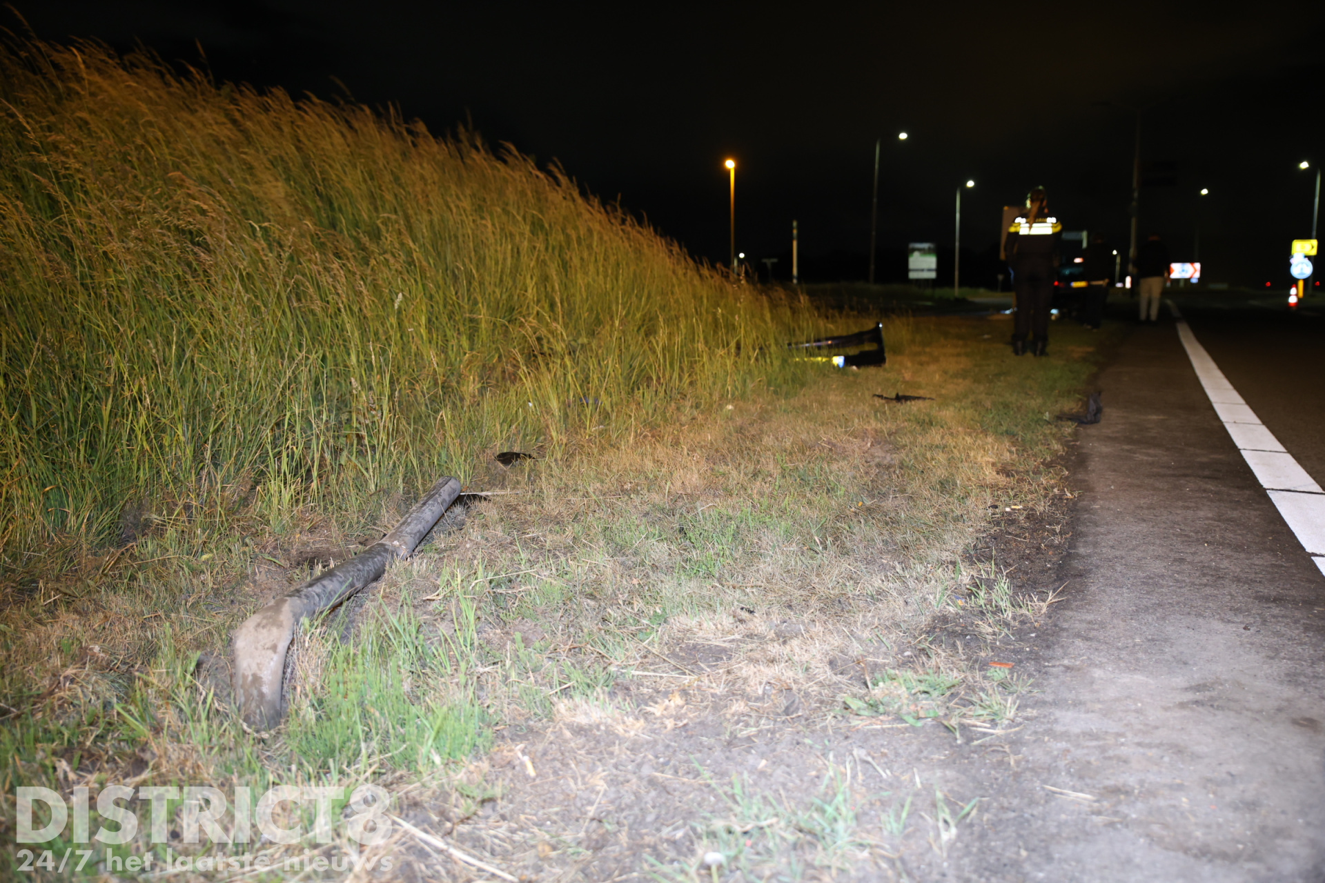 Hierdoor ramde de automobilist een verkeersbord en iets verderop een lichtmast. De auto kwam uiteindelijk zwaar gehavend tot stilstand.