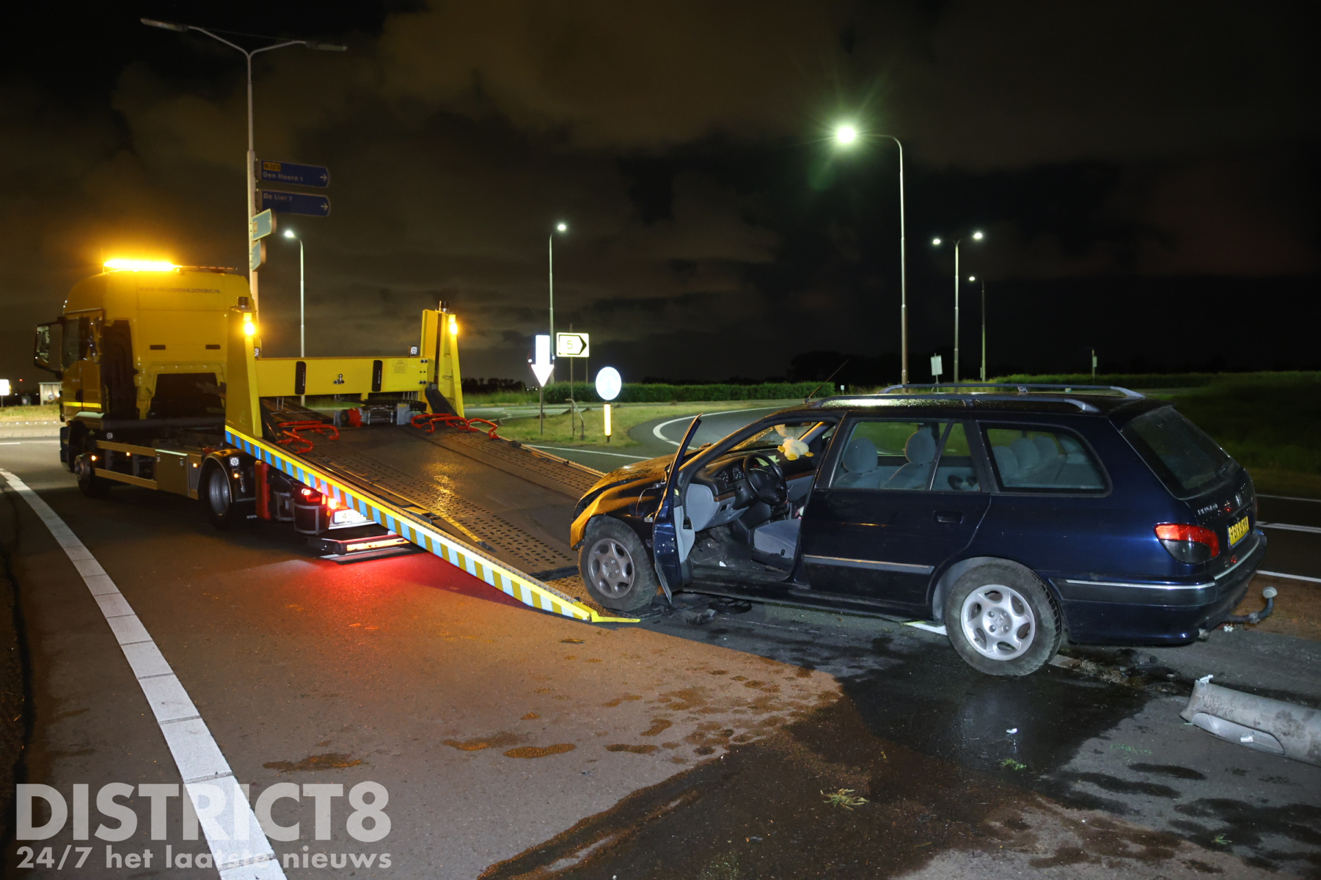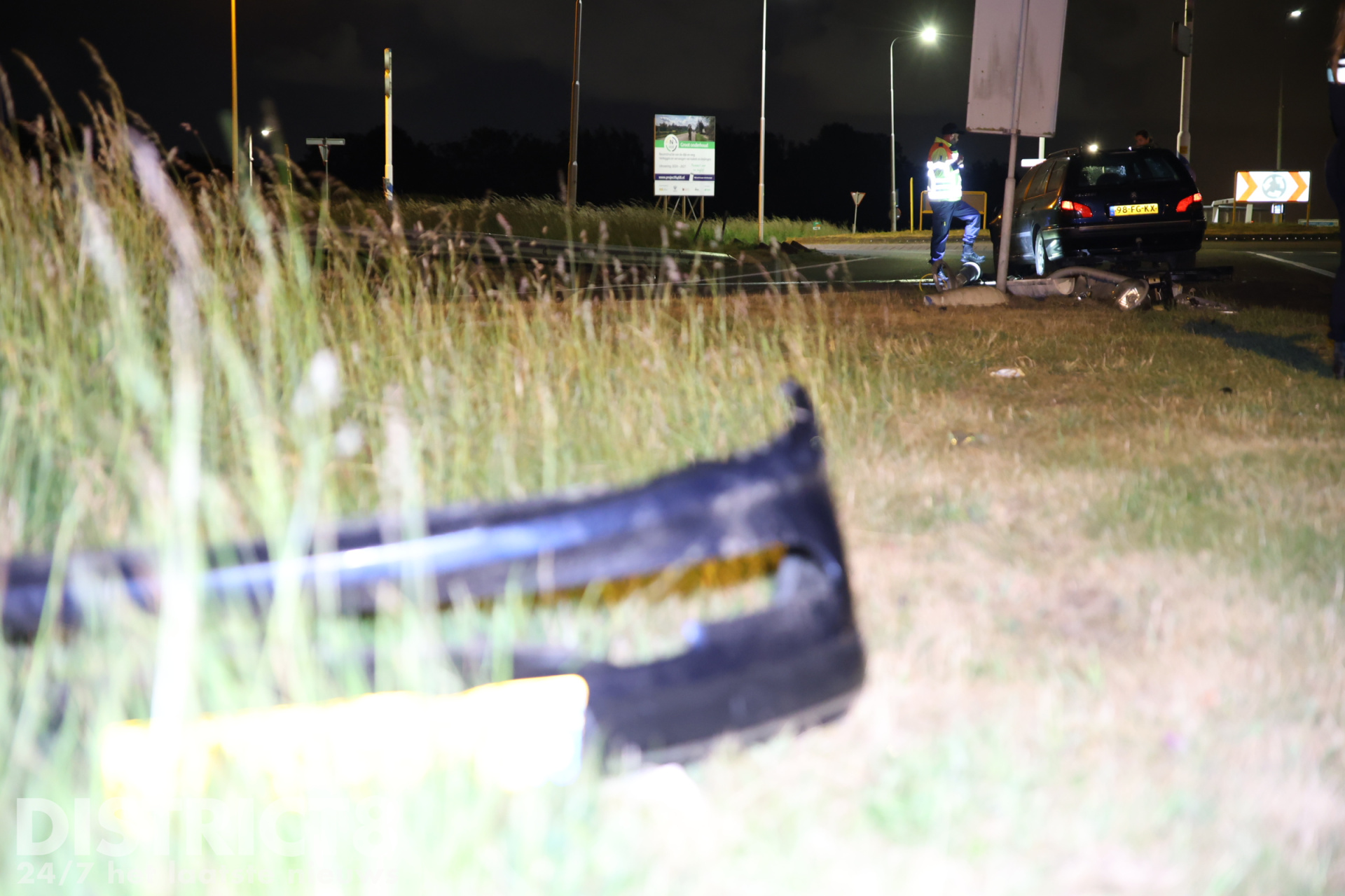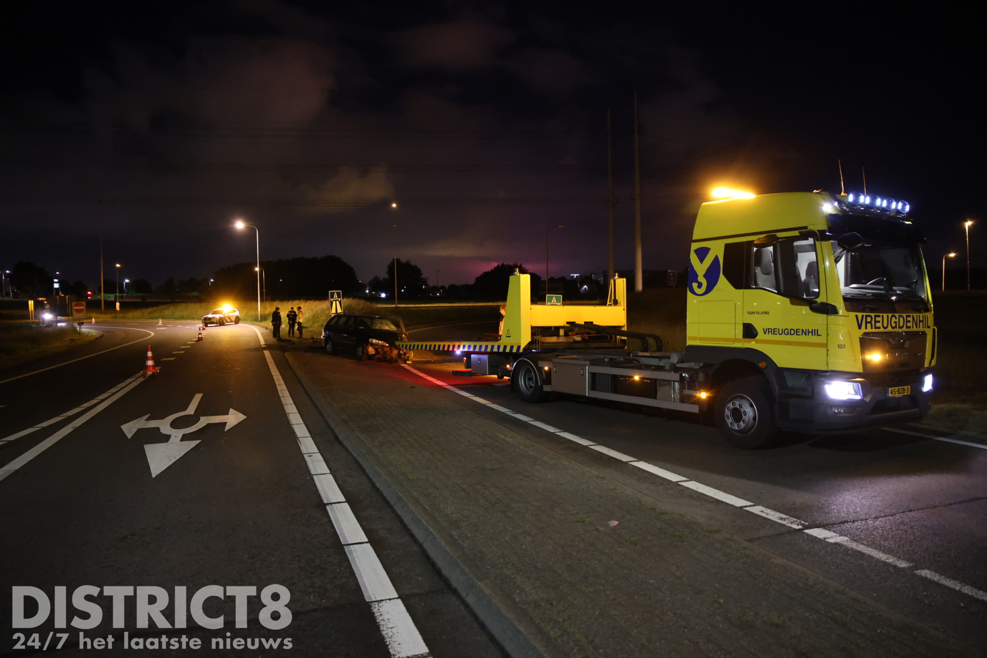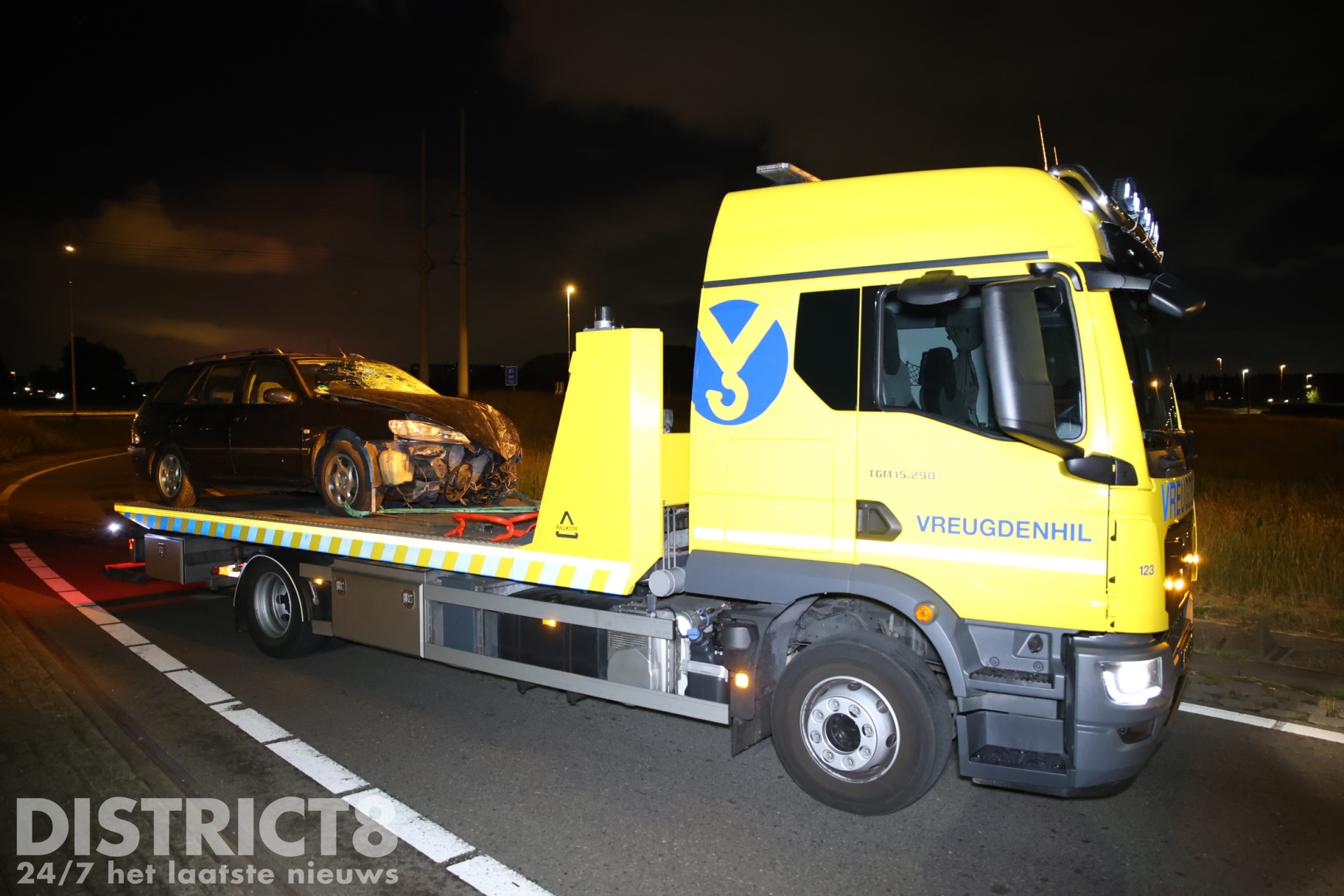 Hierdoor ramde de automobilist een verkeersbord en iets verderop een lichtmast. De auto kwam uiteindelijk zwaar gehavend tot stilstand.