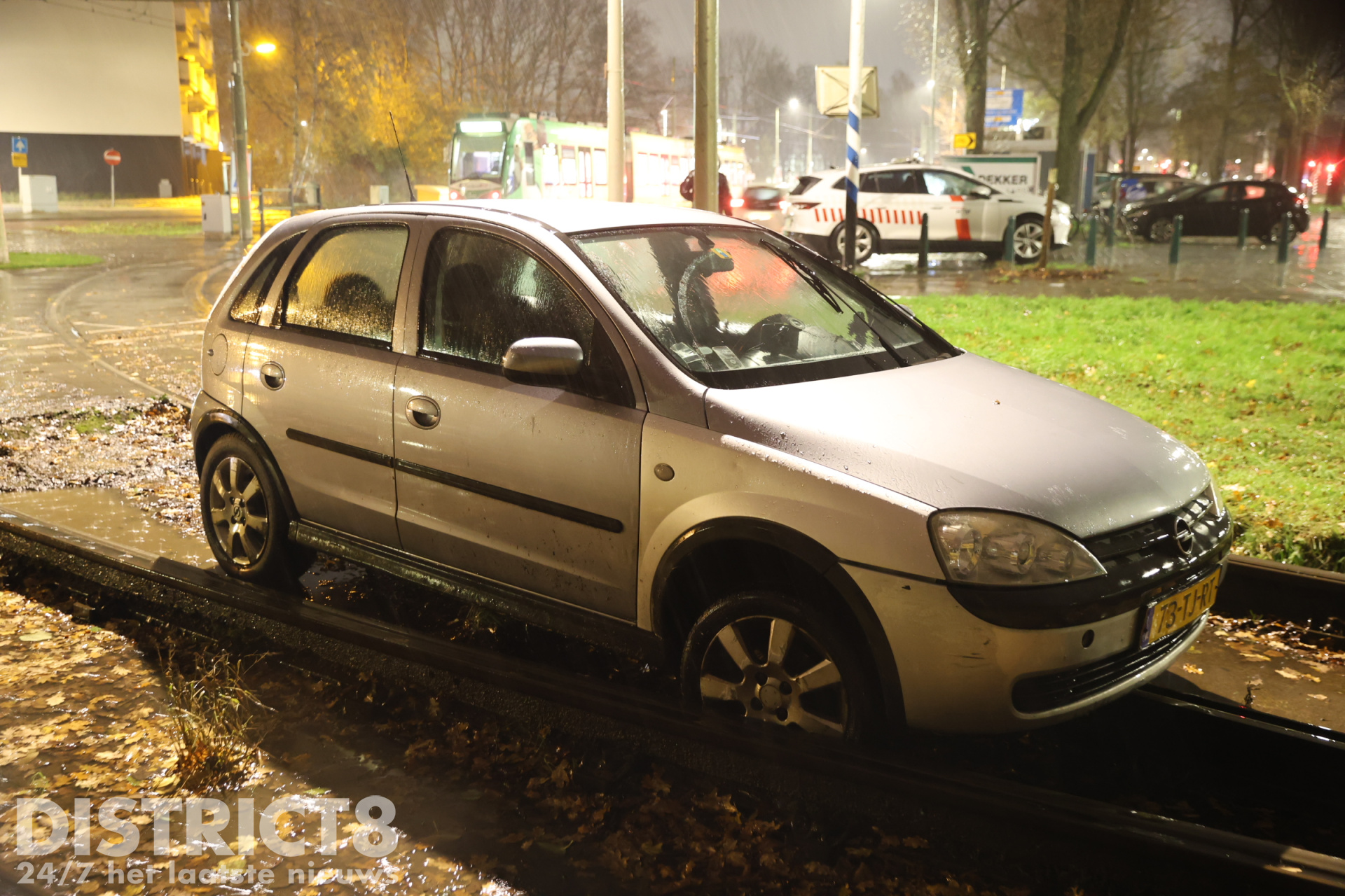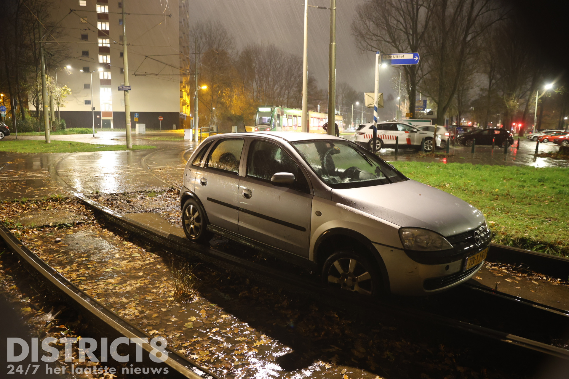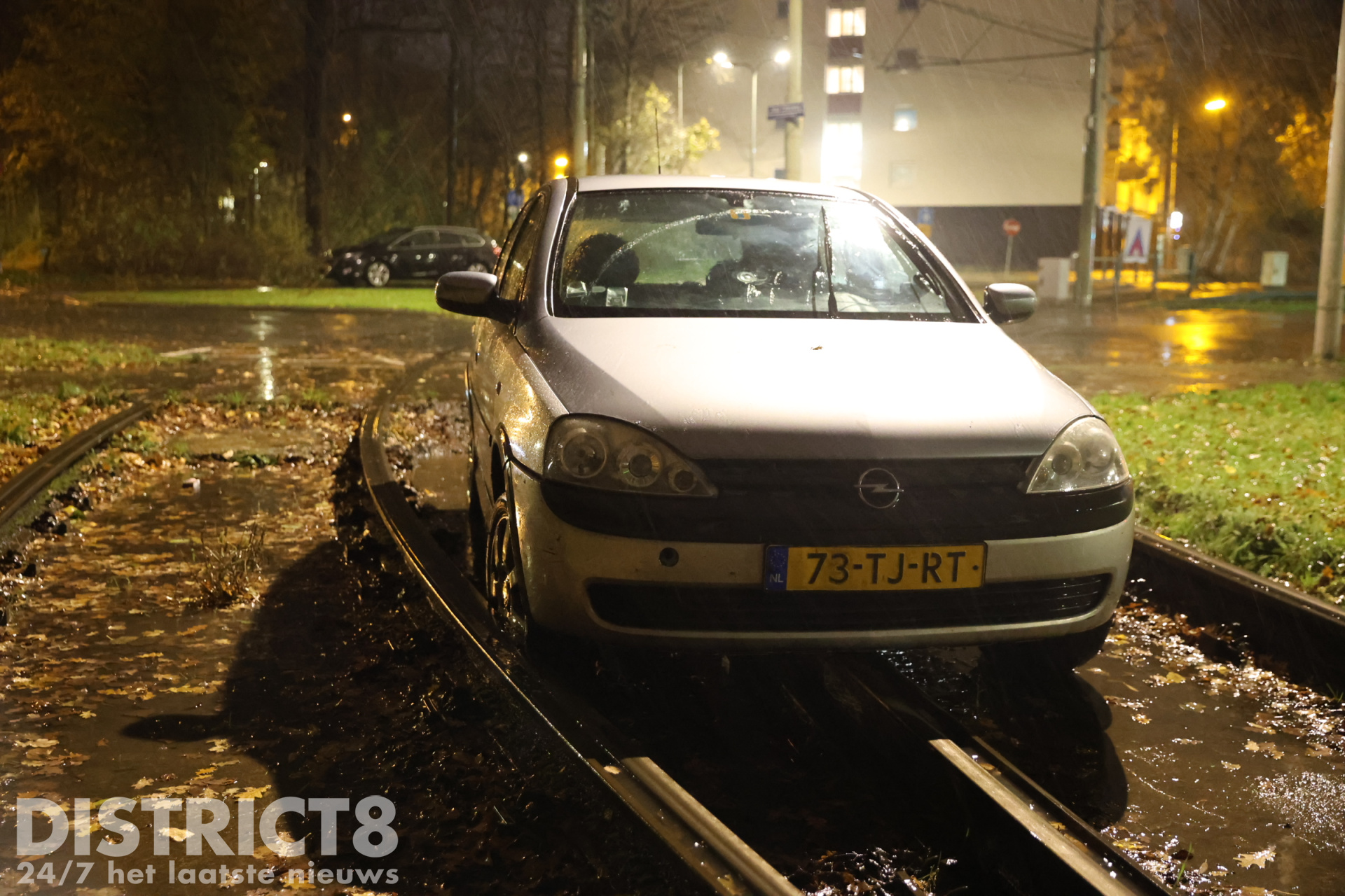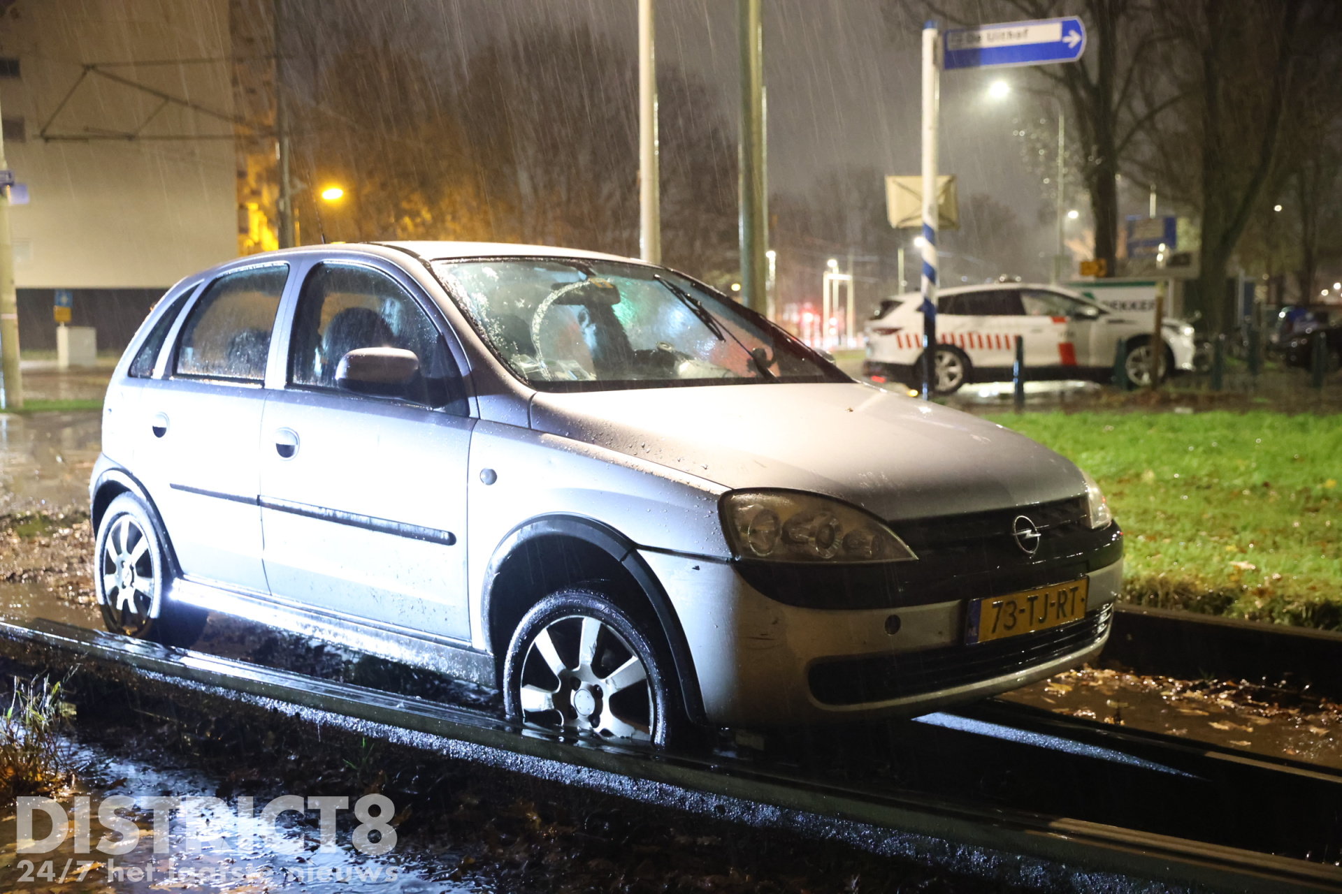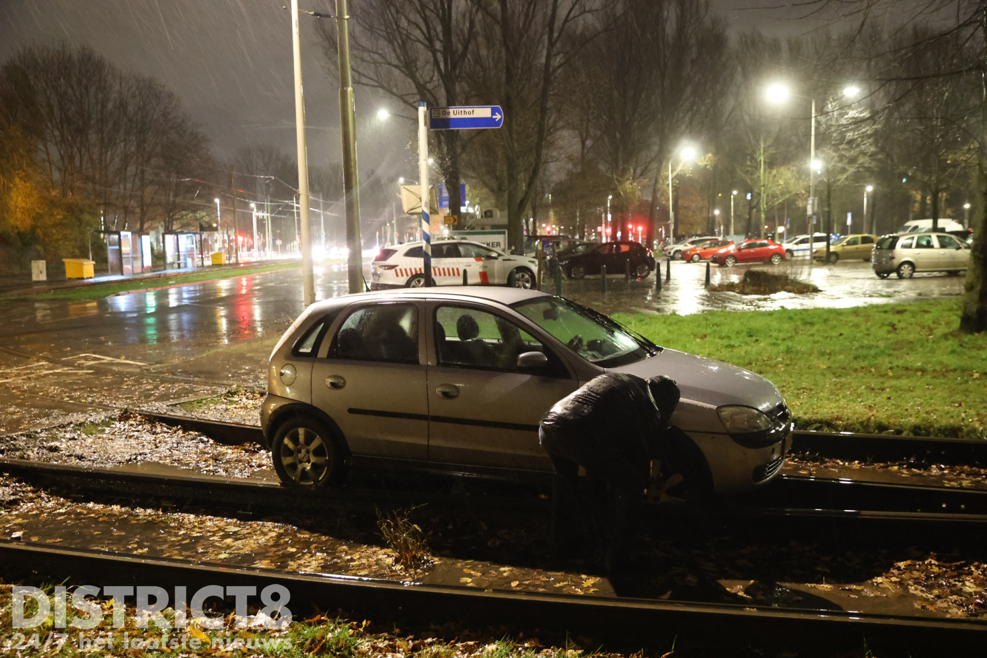 Den Haag – Een auto heeft zichzelf in de nacht van zaterdag 23 november op zondag 24 november vastgereden op het spoor aan de Jaap Edenweg in Den Haag.