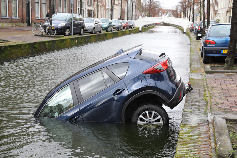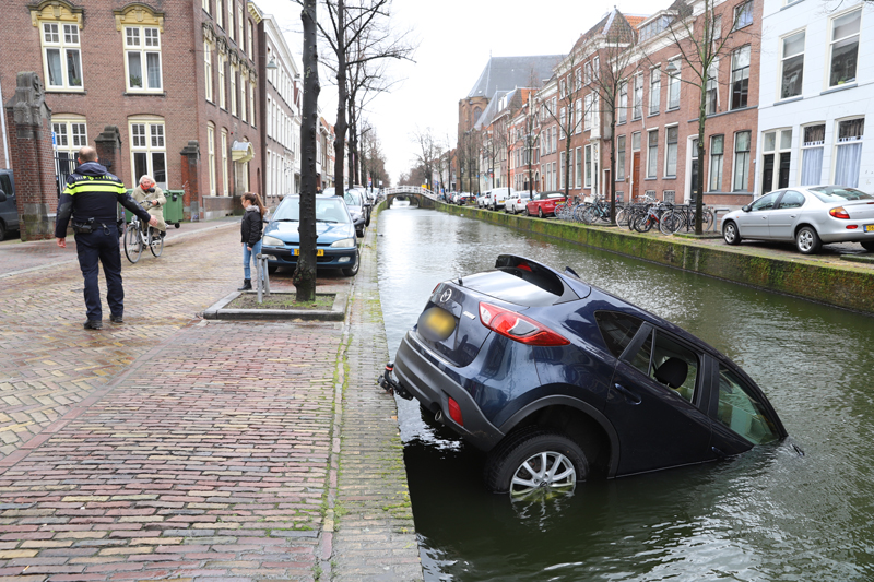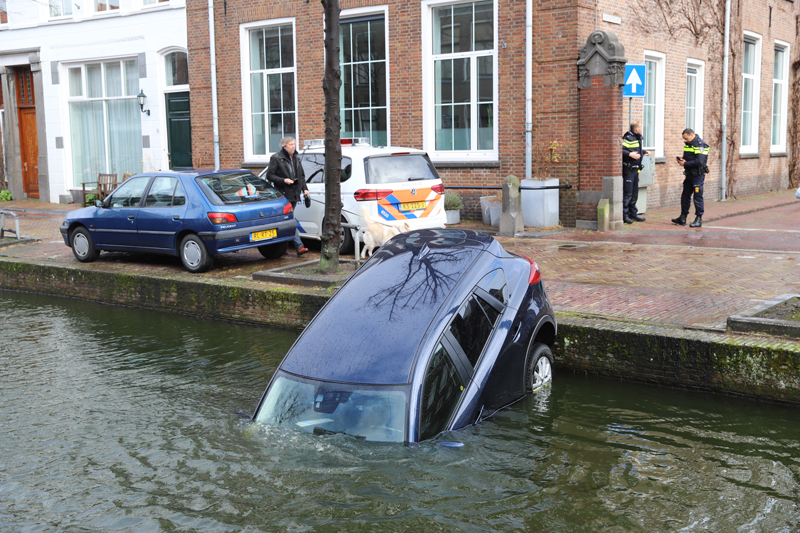 Delft – Een auto is donderdagochtend 14 maart de gracht ingerold aan de Voorstraat in Delft. De auto stond volgens getuigen deels op de stoep geparkeerd. De auto rolde hierna richting de gracht. Het voertuig raakte te water maar bleef haken op de trekhaak. Het voertuig liep deels vol met water. De schade aan de auto is flink, een berger heeft het voertuig uit het water getakeld en afgevoerd.