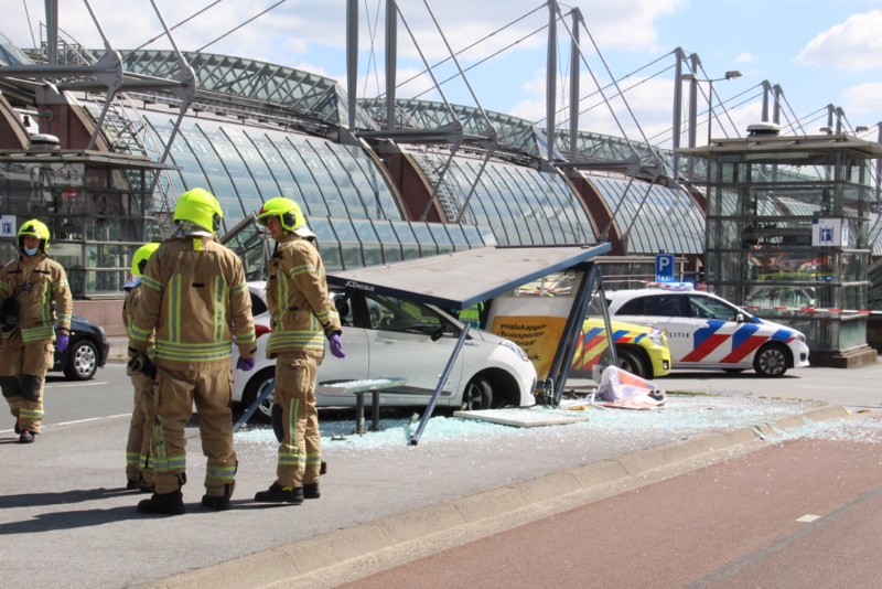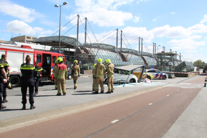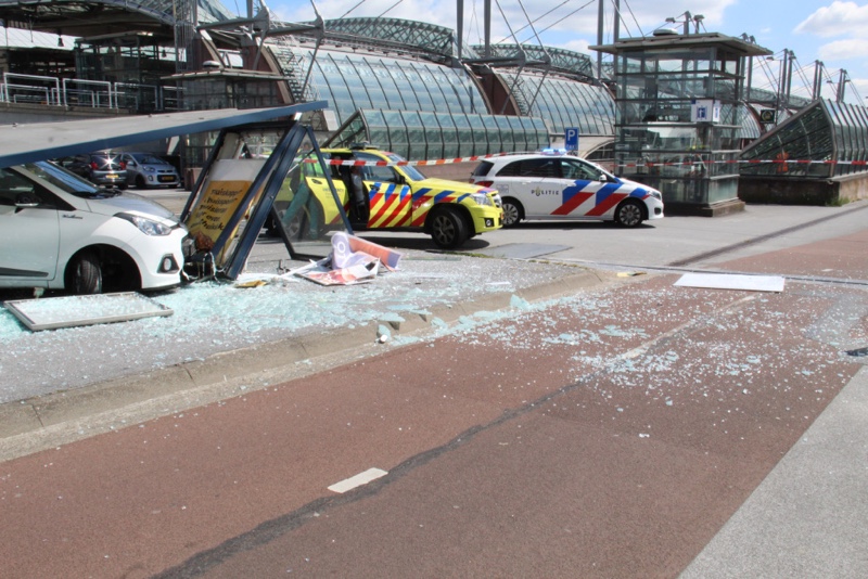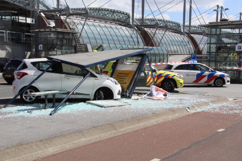 De schade aan auto en bushok is aanzienlijk, het verkeer ondervond korte tijd hinder van het incident.