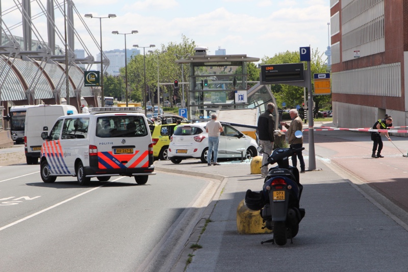 Home Rotterdam-Rijnmond Auto schiet 2x over middenberm en ramt abri Horvathweg Schiedam