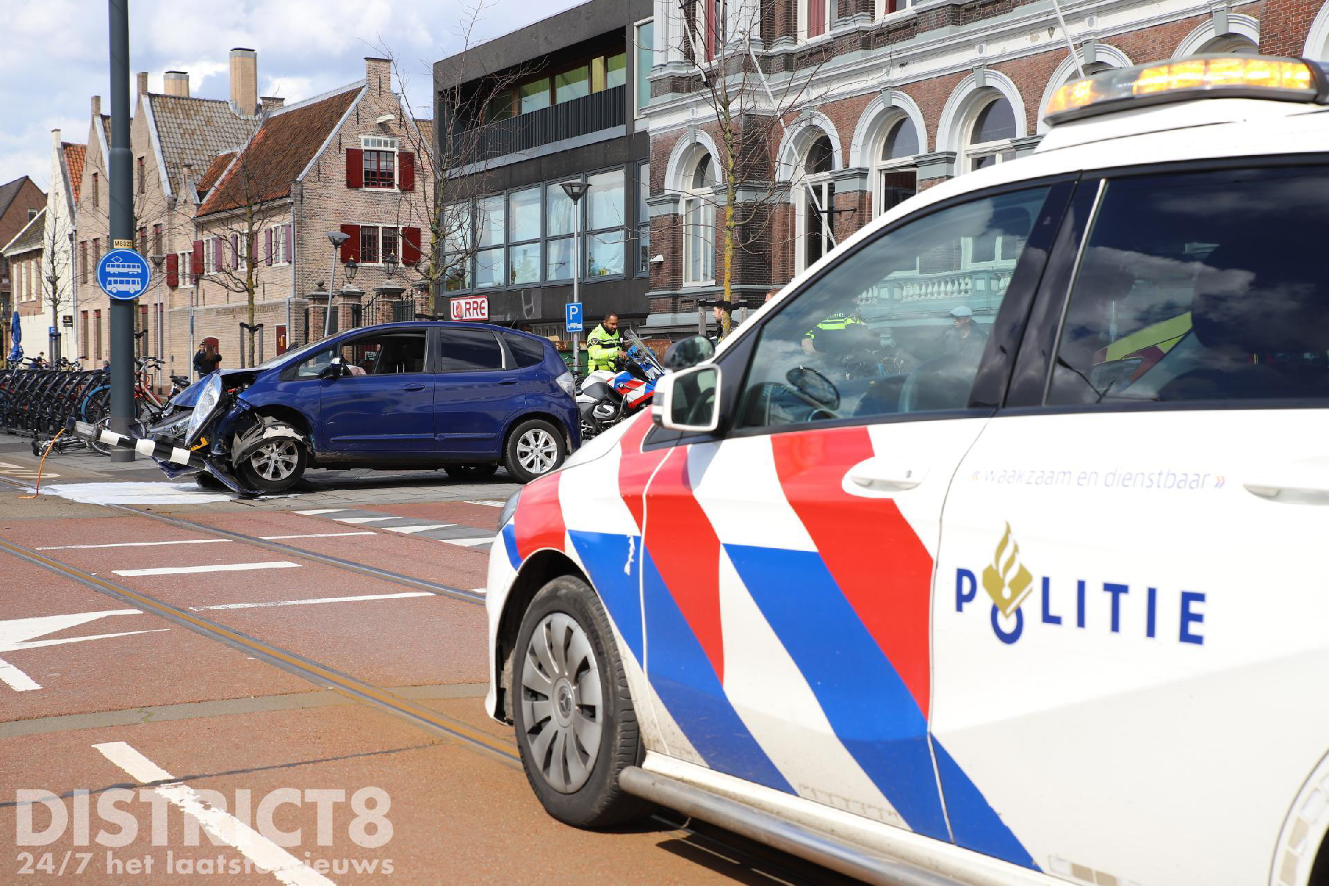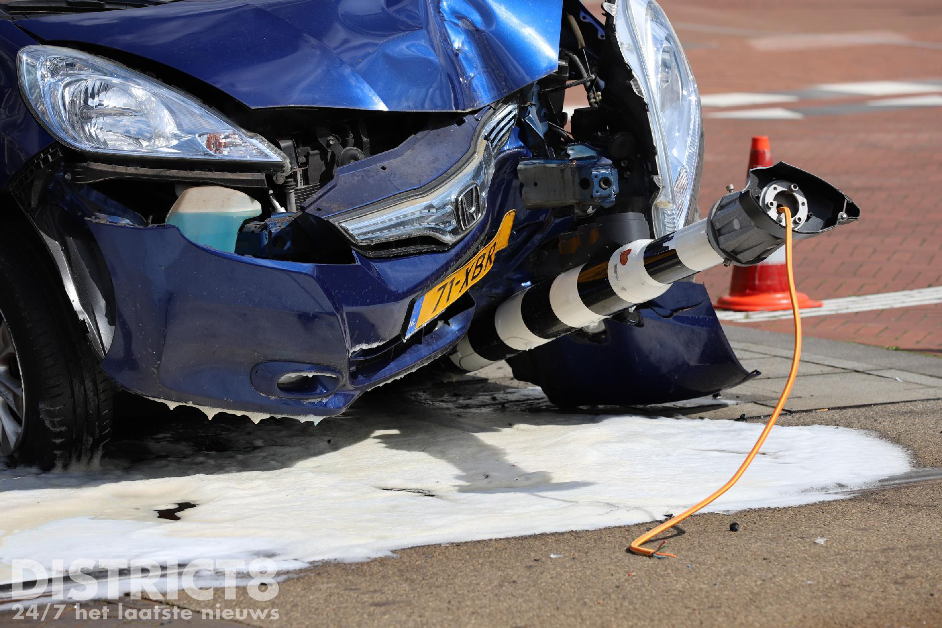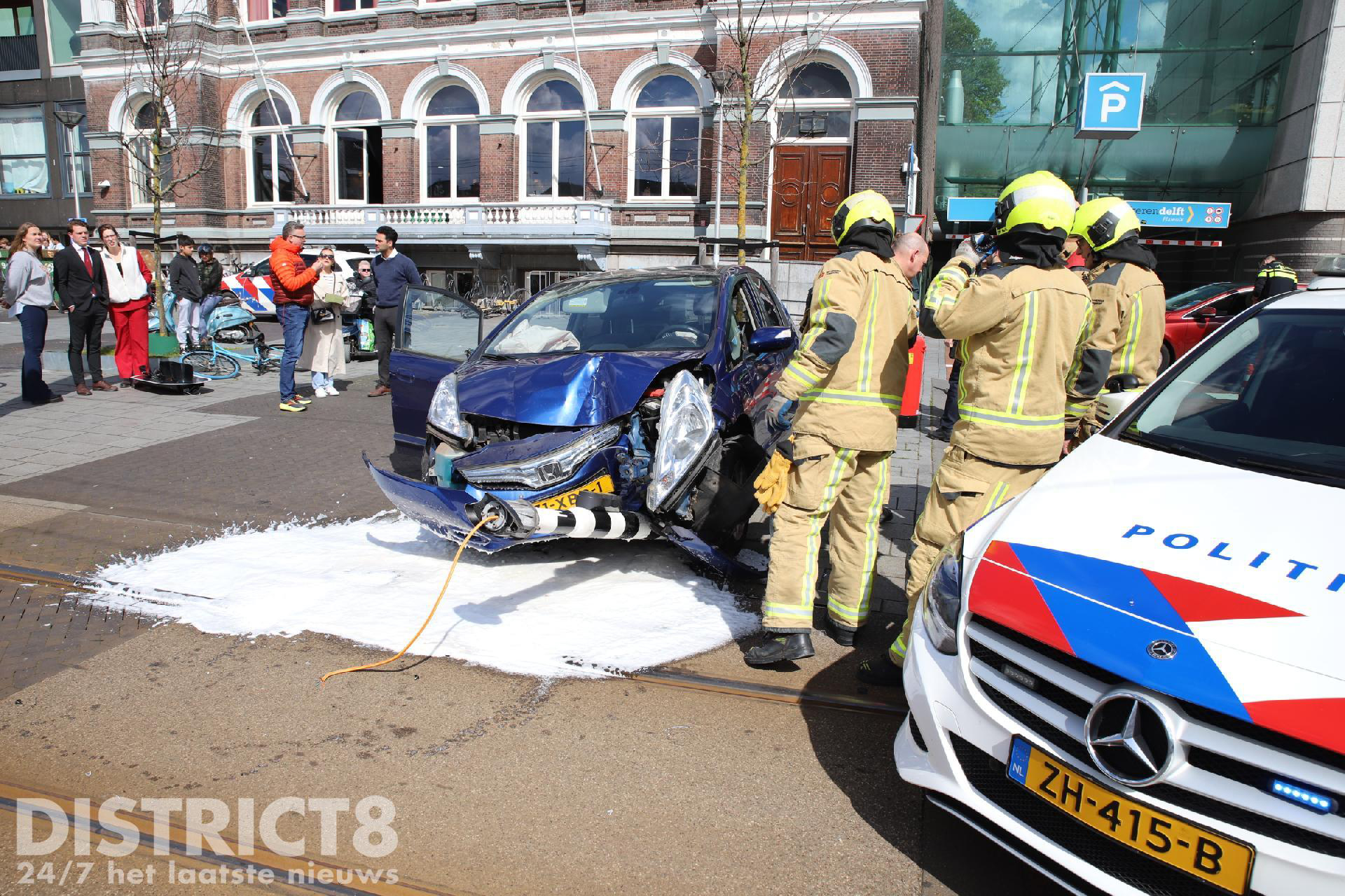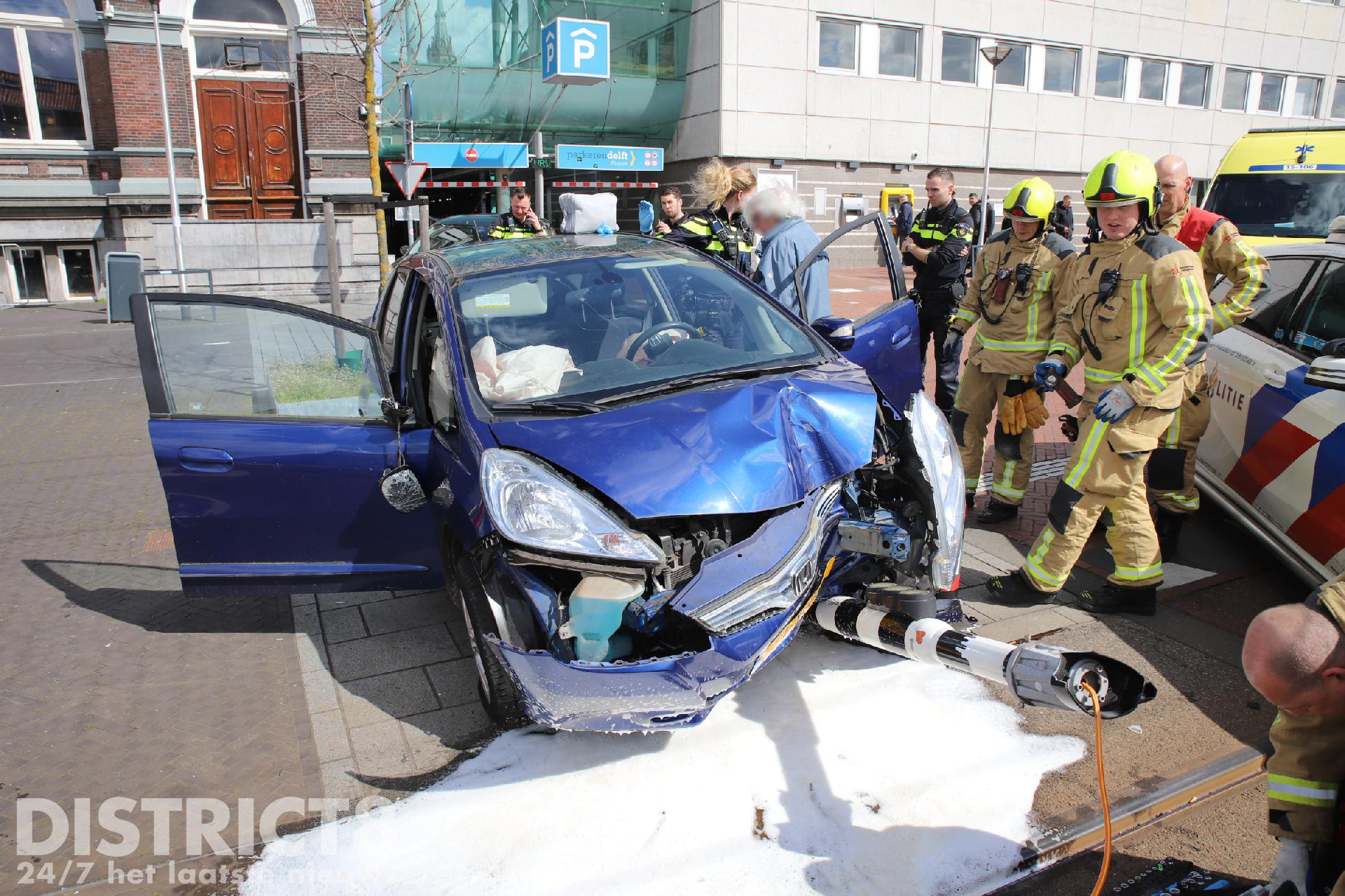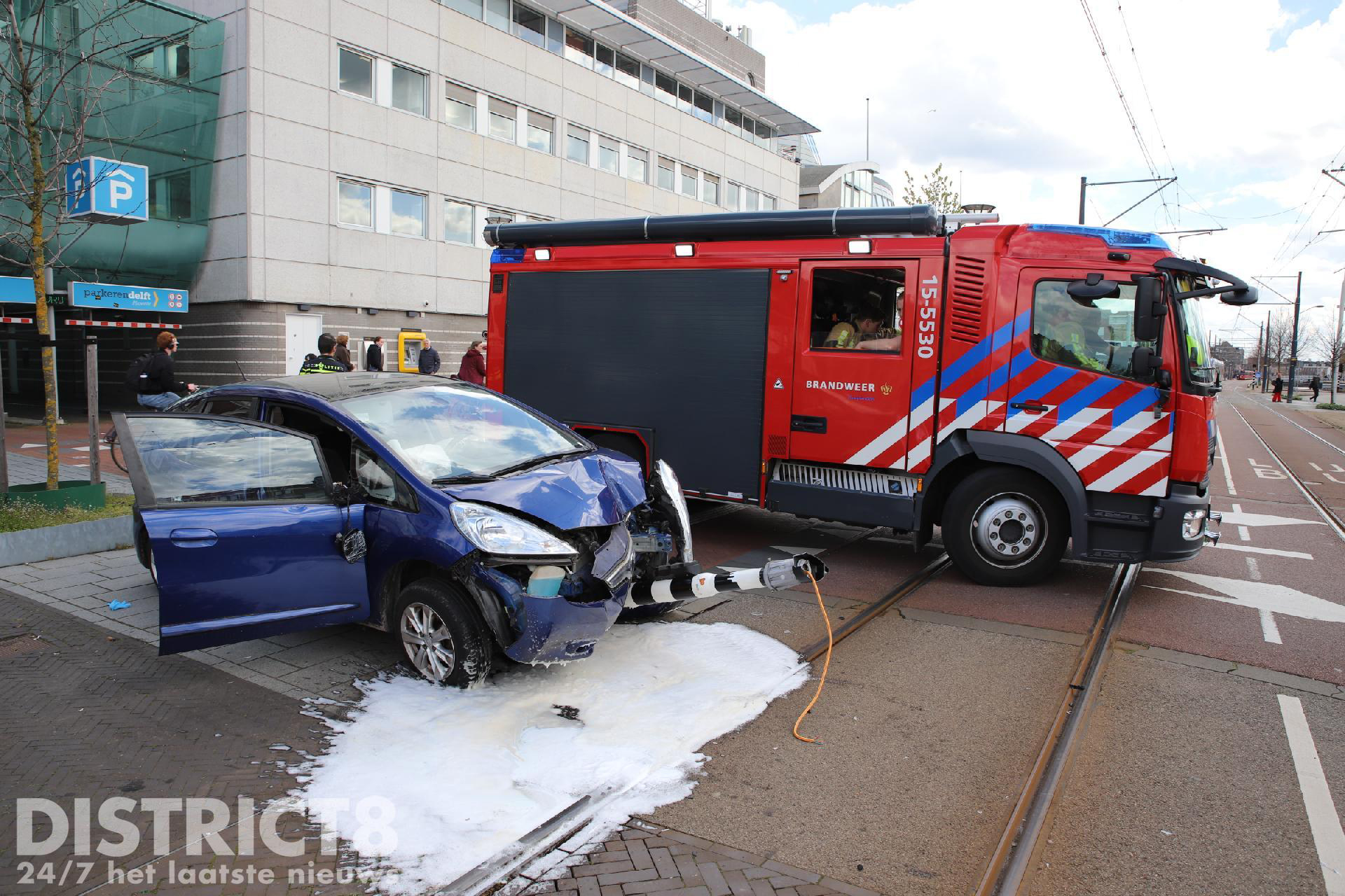 Home Delft Auto schiet uit parkeergarage en knalt tegen verkeerslicht Phoenixstraat Delft