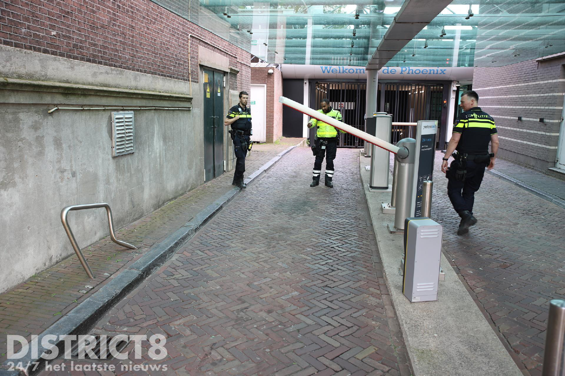 Auto schiet uit parkeergarage en knalt tegen verkeerslicht Phoenixstraat Delft