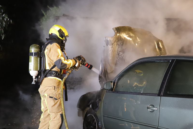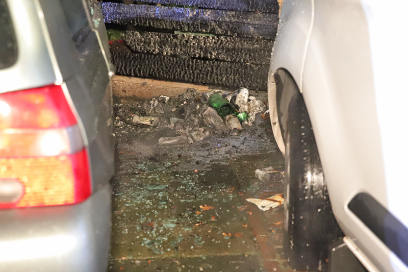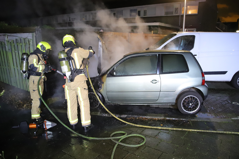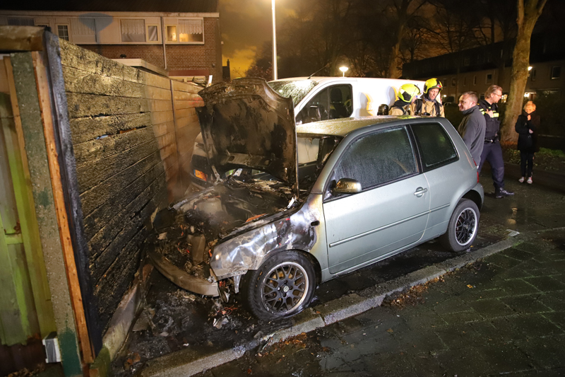 Nog geen 20 minuten later, om 06:00 kreeg de brandweer een melding van een autobrand aan de Lombokstraat, aldaar was een kliko tussen twee geparkeerde auto’s in brand gestoken, deze brand sloeg over naar een schutting en twee geparkeerde voertuigen, de schade hiervan is enorm.