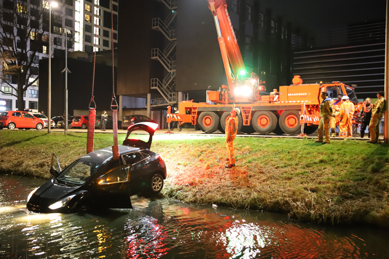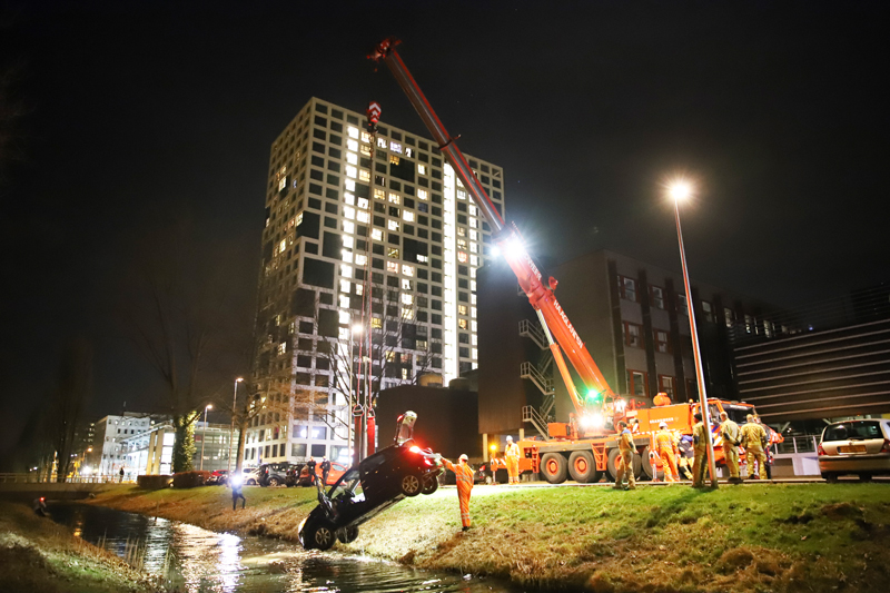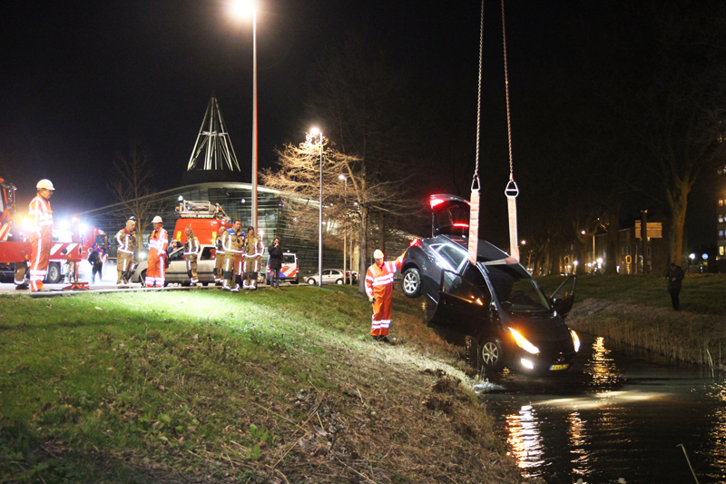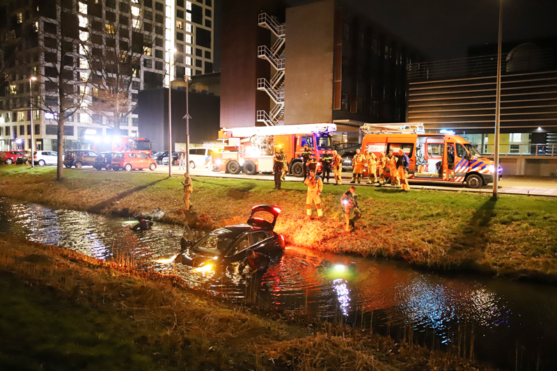 Delft – Zaterdagavond 20 februari werd de brandweer gealarmeerd voor een voertuig te water aan de Van der Waalsweg in Delft.