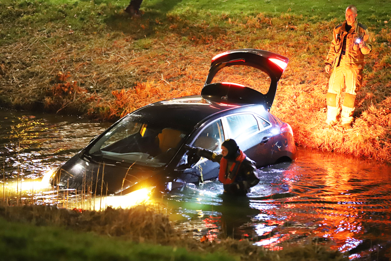 Aldaar bleek een auto in een slootje terecht gekomen te zijn. De bestuurder kon de auto tijdig verlaten en raakte niet gewond bij het incident.