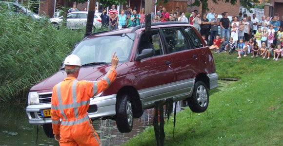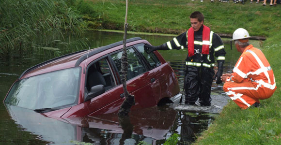 Den Haag – Vrijdagavond 24 augustus kreeg de brandweer van Delft een melding dat op de Weidevogellaan in de Haagse-wijk Ypenburg een auto in het water is gereden. Meerdere voertuigen, waaronder de grote kraan, zijn uitgerukt. Terplaatse lag er inderdaad een auto in het water. De bestuurder is op eigen kracht het voertuig uit gekomen, dus de duikploeg kon weer terug. De kraan is gekomen om het voertuig uit het water te halen. De auto is door een berging-bedrijf vervoerd, de auto is naar alle omstandigheden total-loss.