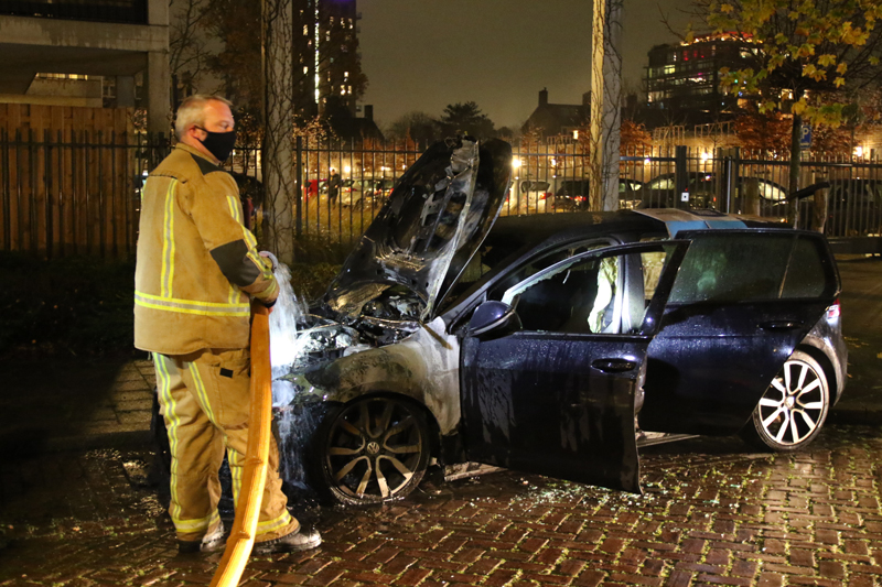 De brandweer kwam met spoed ter plaatse en is direct begonnen met het blussen van de brand. Het voertuig is volgens omstanders een hybride voertuig. De brandweer had de situatie snel onder controle. De schade aan het voertuig is flink.