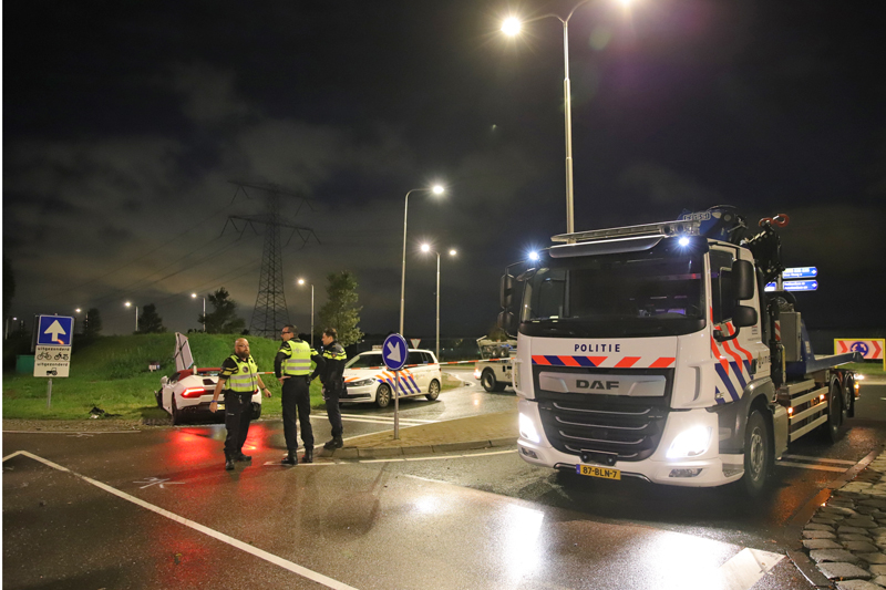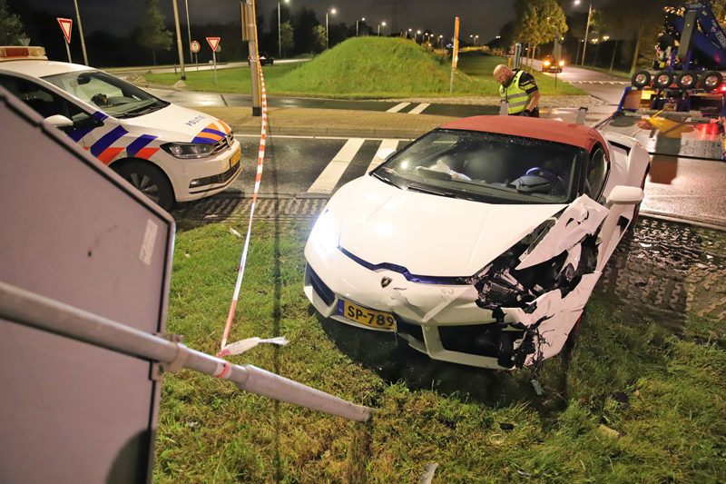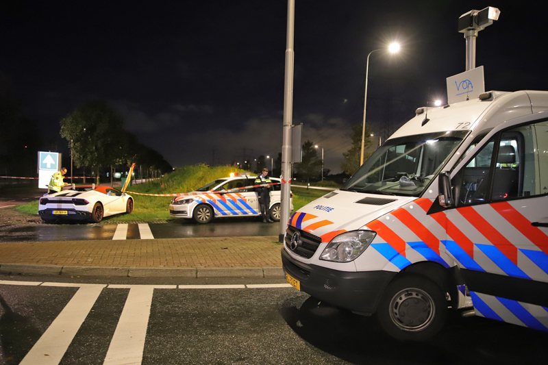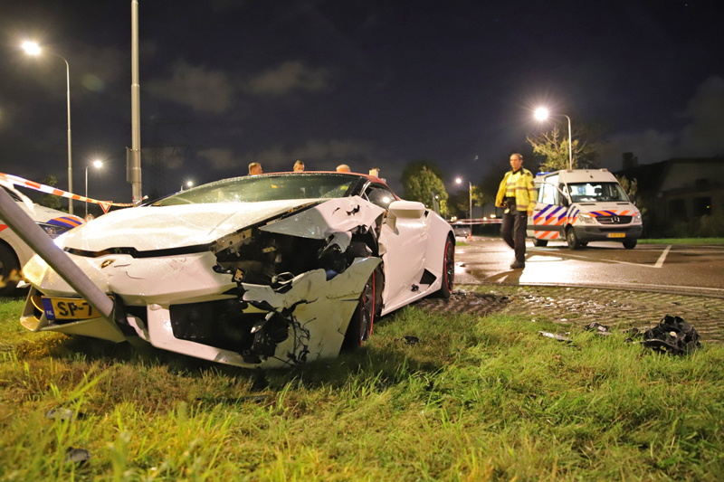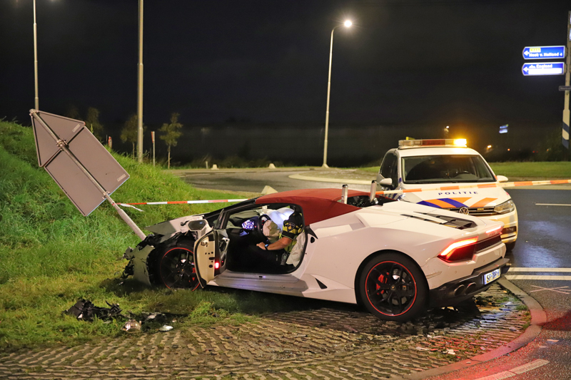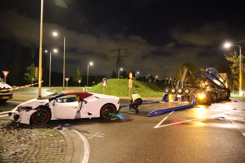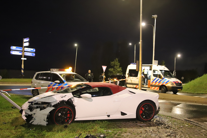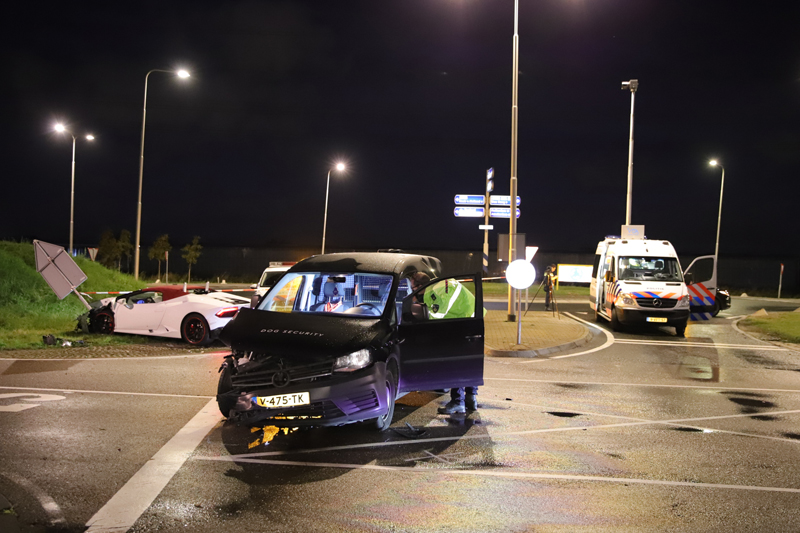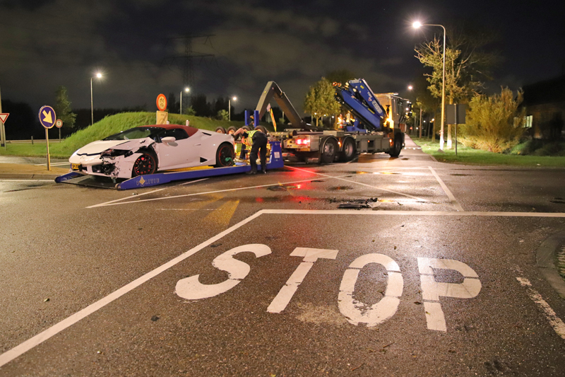 Een trouwstoet kwam met hoge snelheid de kruising opgereden, een van de wagens van de trouwstoet, een Lamborghini Hurucán met een nieuwwaarde van zo’n €300,000 kwam hierbij in botsing met een beveiligingsbusje.