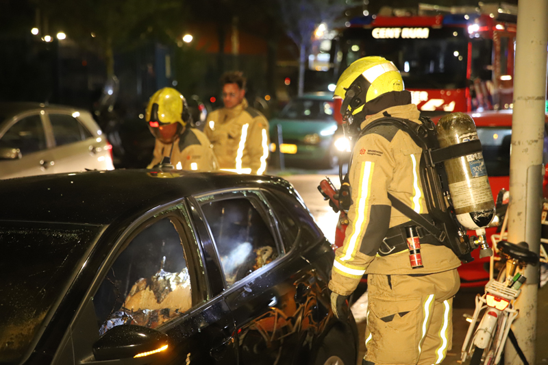 Bij aankomst van de brandweer sloegen de vlammen al uit de auto, de brandweer had de brand snel onder controle. De schade aan de auto is groot, de gehele binnenkant is door de brand uitgebrand.