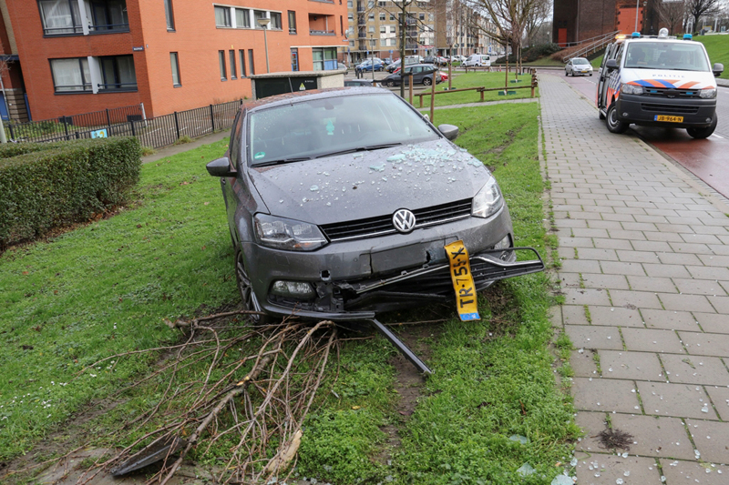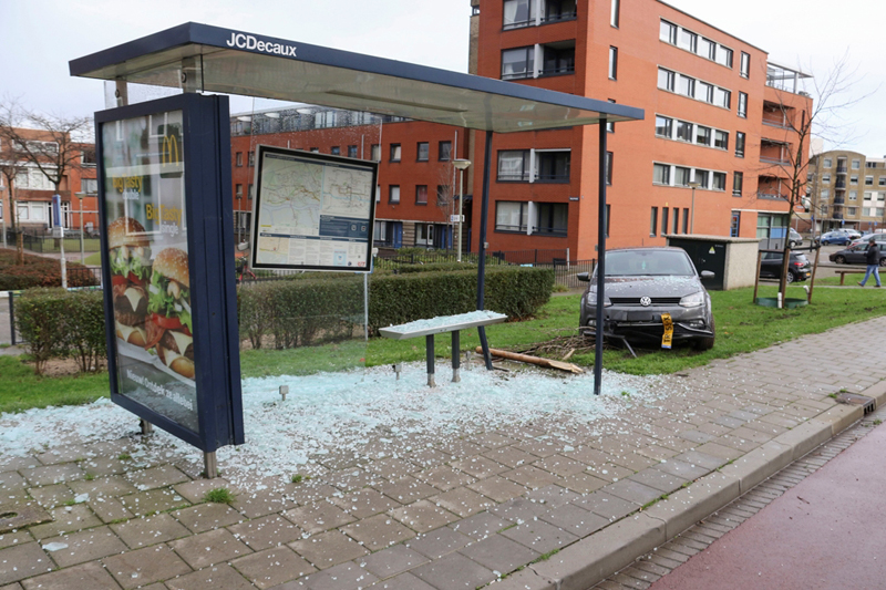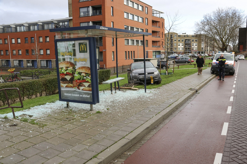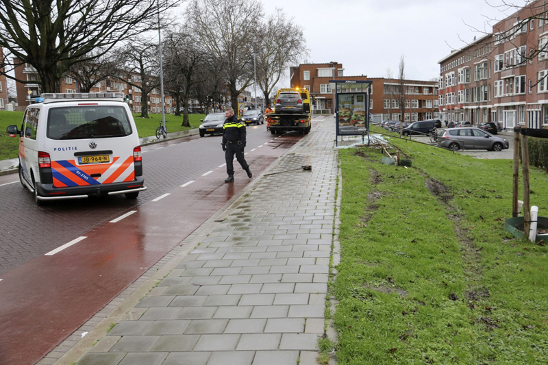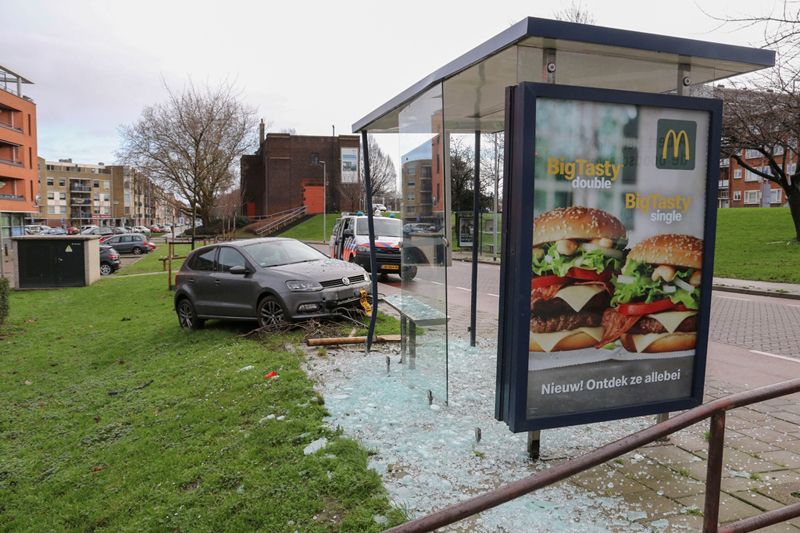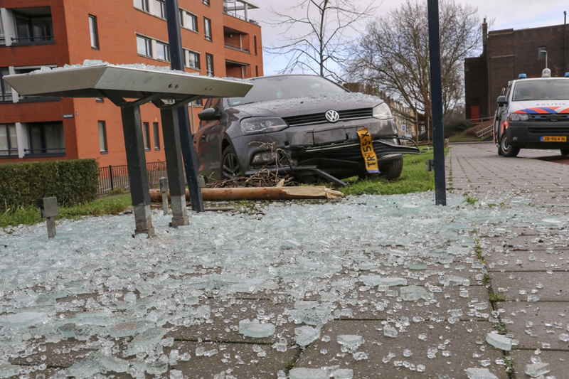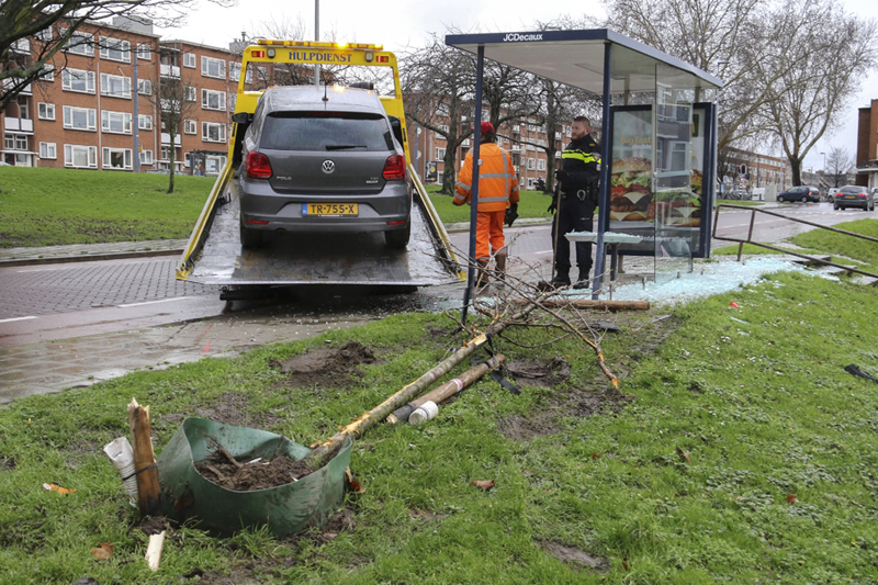 Schiedam – Een automobiliste is donderdagmiddag in een bocht op de Boerhaavelaan de macht over het stuur kwijt geraakt en via een boom tegen een bushokje tot stilstand gekomen. Het onlangs aangeplante boompje werd volledig omver gereden saman met de twee steunpalen van de boom, het bushokje raakte ook flink beschadigd en diverse ruiten zijn gesneuveld. De bestuurster was weggelopen van de locatie en de politie trof niemand meer aan bij de auto. In het bushokje was op het moment van de aanrijding ook niemand. Nadat de politie ter plaatse was melde de bestuurster zich ook. Een berger heeft de auto weggetakeld, het glas en boompje zullen opgeruimd worden door de gemeente en het bedrijf van de bushokjes zal het bushokje repareren.