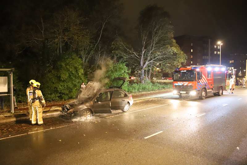 Na de kruising met de Guntersteinweg heeft de automobilist zijn voertuig geparkeerd bij de bushalte op de Prinses Beatrixlaan in Rijswijk, waar direct de vlammen onder de motorkap uit sloegen.