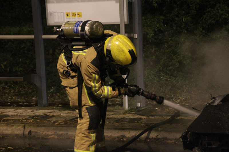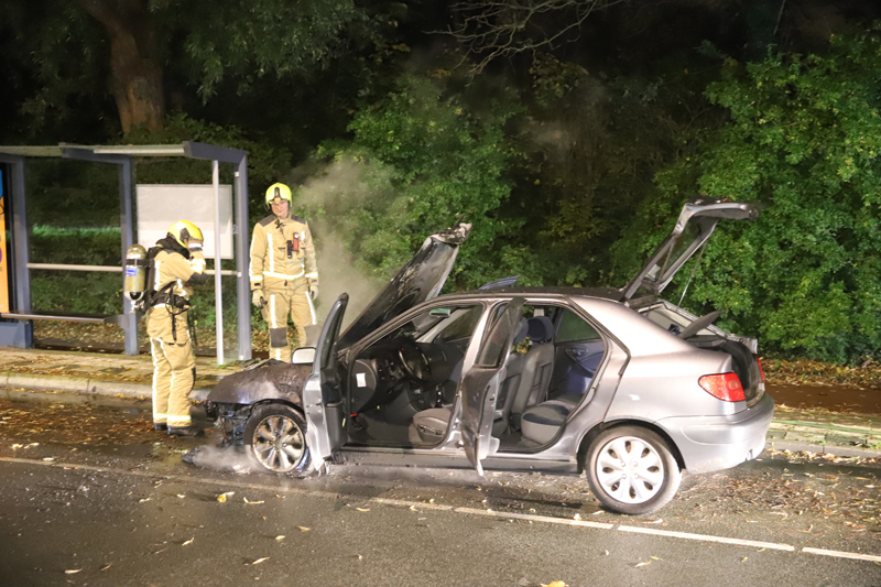 Hierop heeft de automobilist de brandweer gebeld en ondanks dat deze zeer snel ter plaatse was, kon niet voorkomen worden dat de volledige voorkant van de auto uitbrandde.