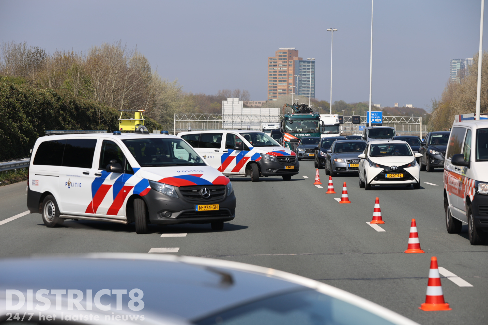 Door het ongeval werden twee rijstroken afgesloten en ontstond er een flinke file.
