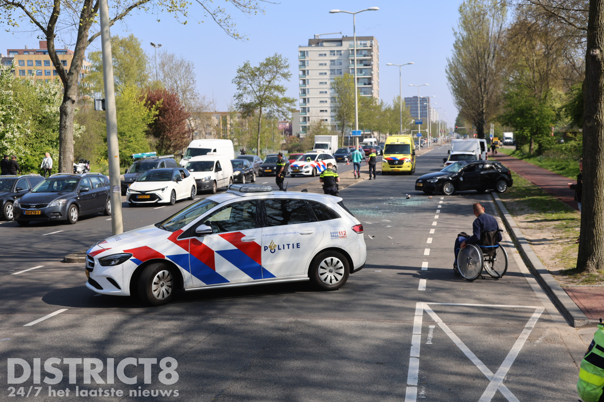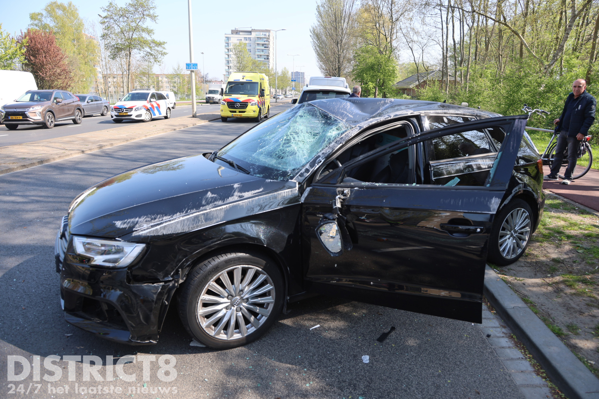 Den Haag – Bij een aanrijding op de Erasmusweg in Den Haag is zaterdagochtend 12 april een auto over de kop geslagen. De bestuurder van het voertuig raakte daarbij gewond.