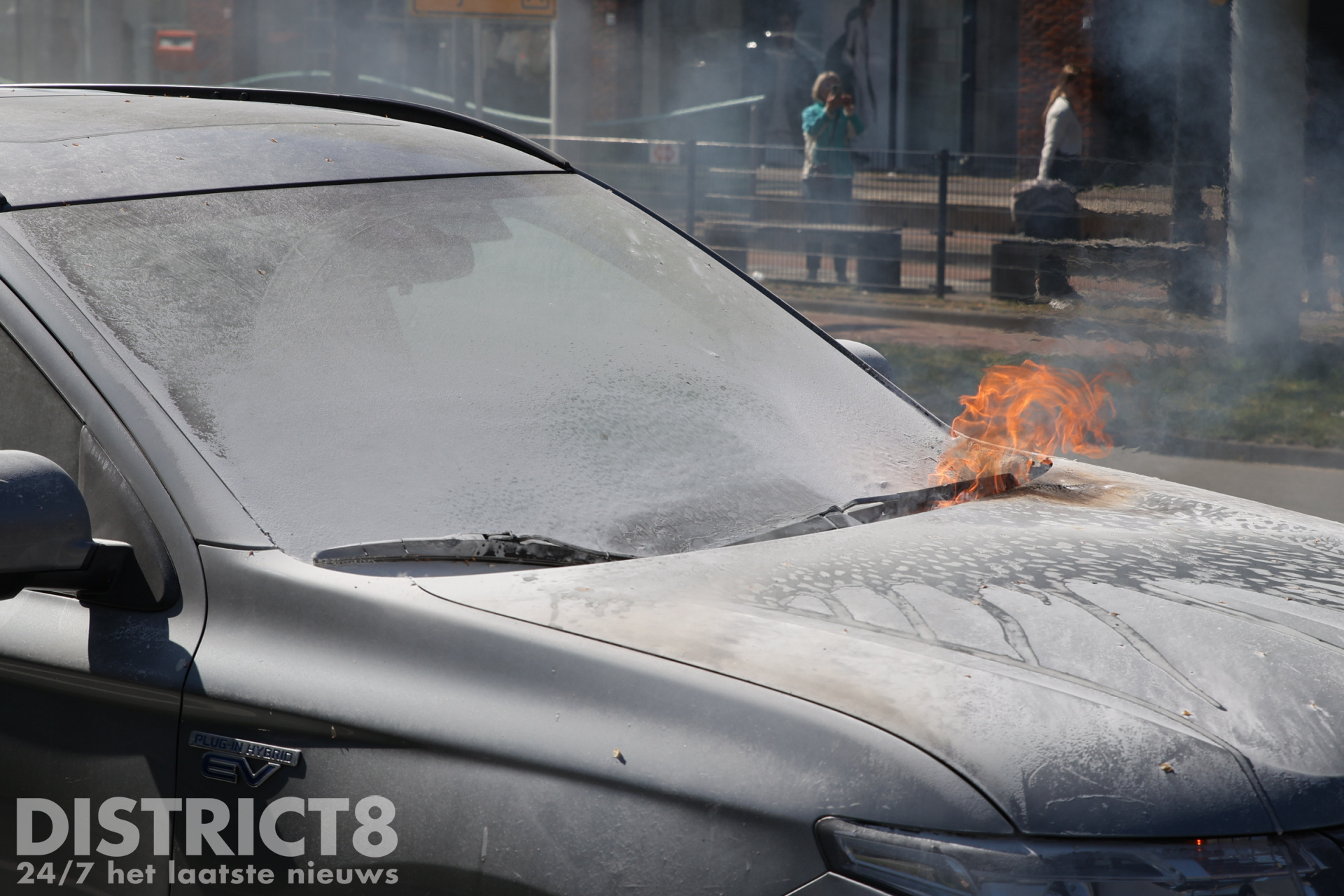 Agenten die als eerste ter plaatse waren, hebben met een poederblusser geprobeerd de brand te blussen, maar dit had niet het gewenste resultaat. De brandweer arriveerde korte tijd later en nam het blussen over. Nadat de motorkap van de auto was geopend, kon de brandweer het vuur snel onder controle krijgen.