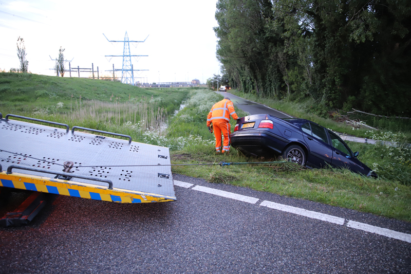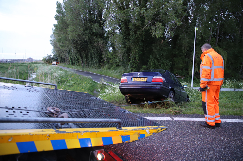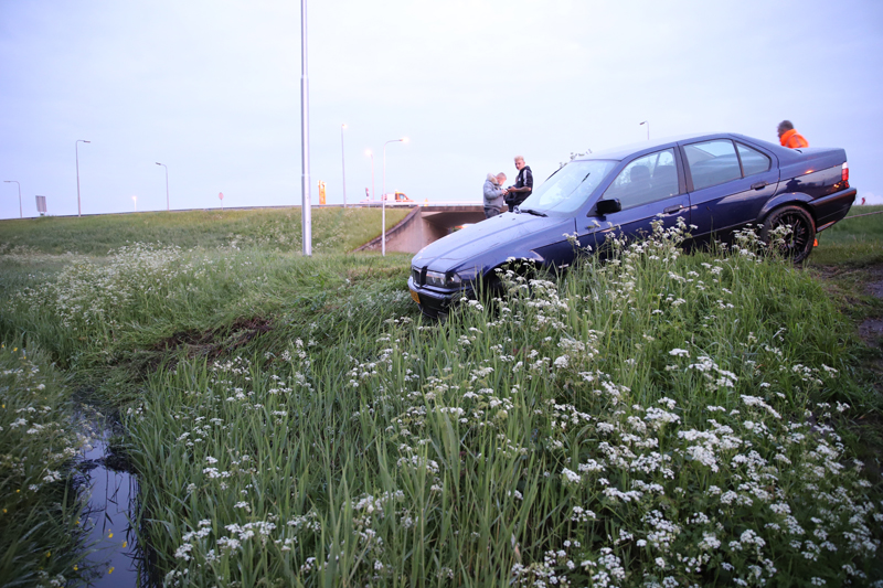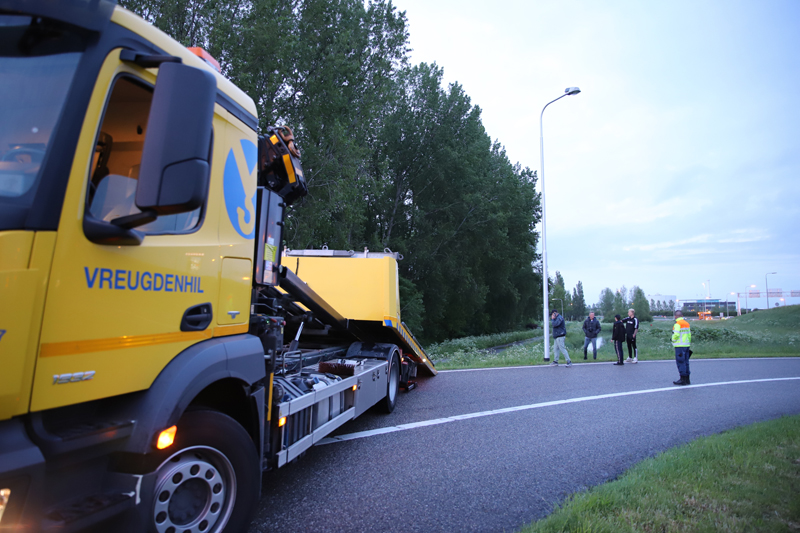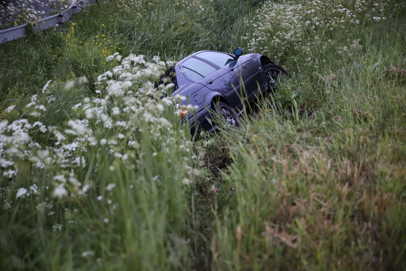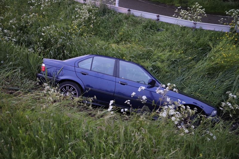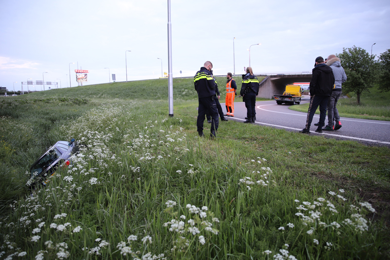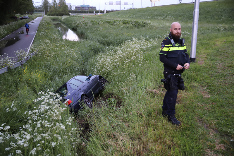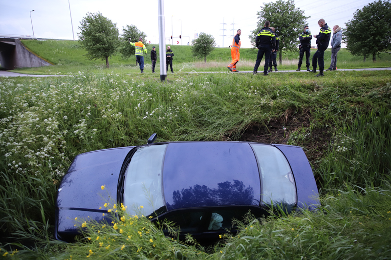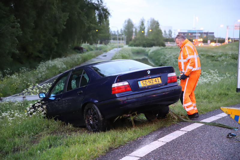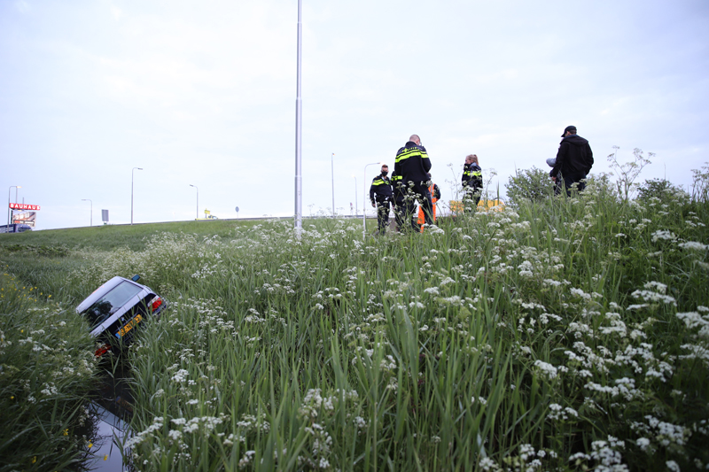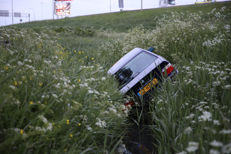 Auto vliegt uit de bocht en belandt in sloot afrit A4 Den Hoorn