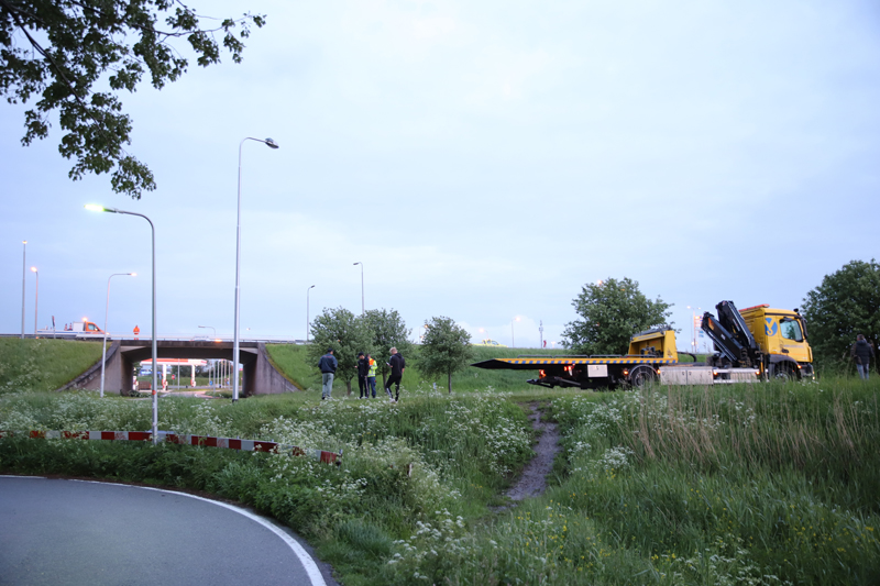 De afrit naar het tankstation is afgesloten voor de bergingswerkzaamheden.