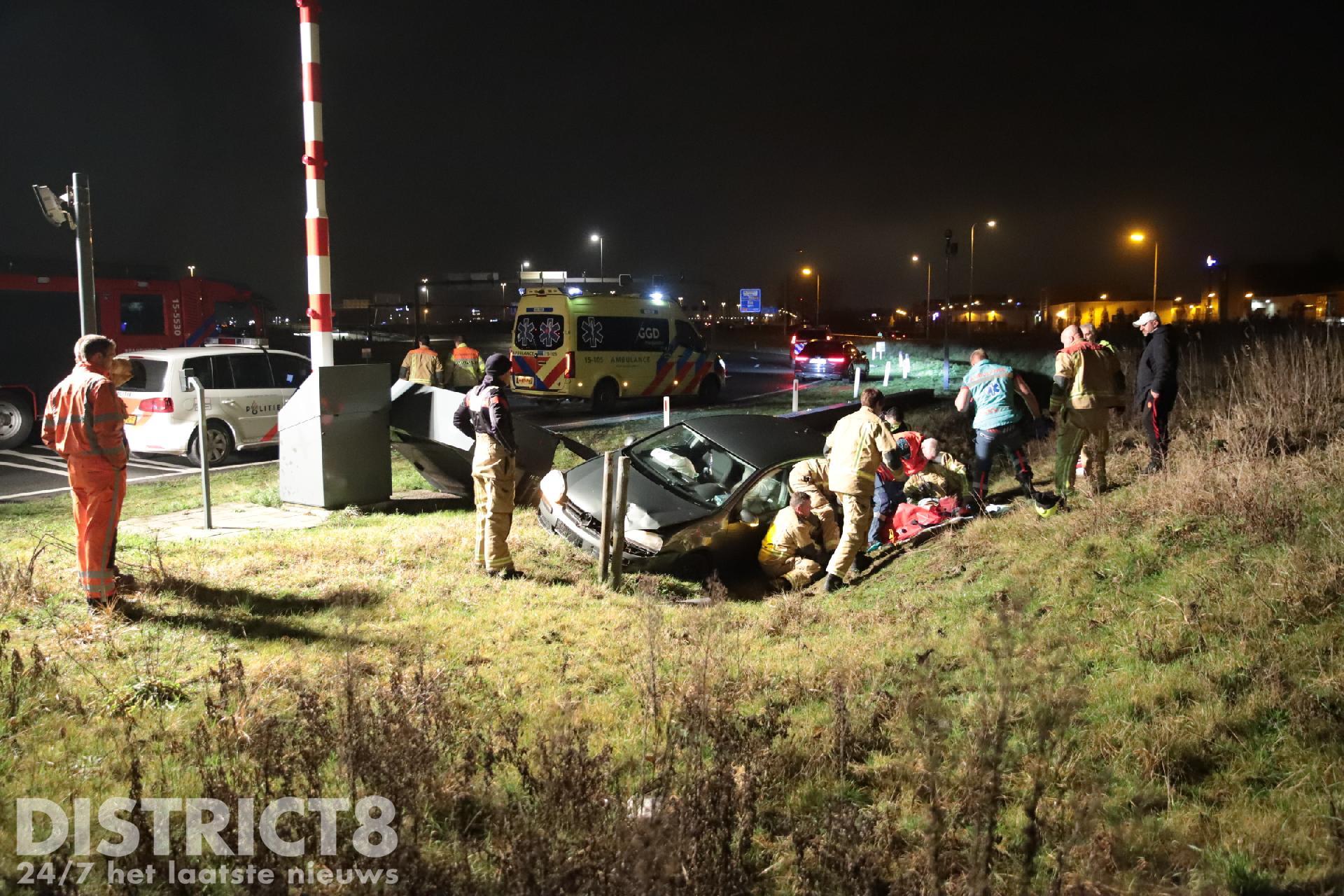 Een auto kwam vanaf de Binckhorst de tunnel uitgereden, in de bocht net voor de kruising van de Rotterdamsebaan met de Laan van Delfvliet ging het mis. De auto vloog uit de bocht, raakte een regelkast en kwam tot stilstand in de greppel. Meteen werden meerdere hulpdiensten ter plaatse gestuurd.