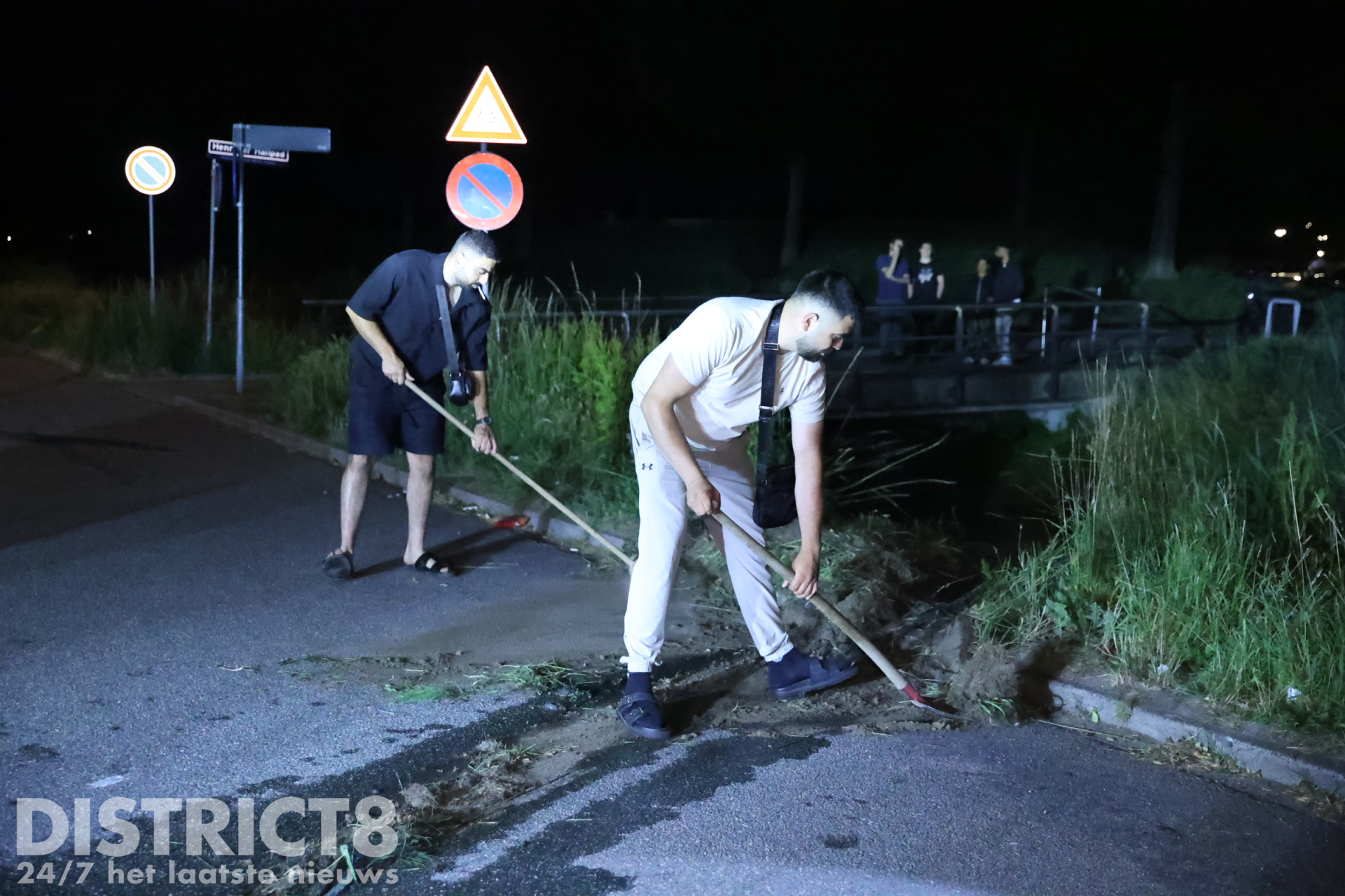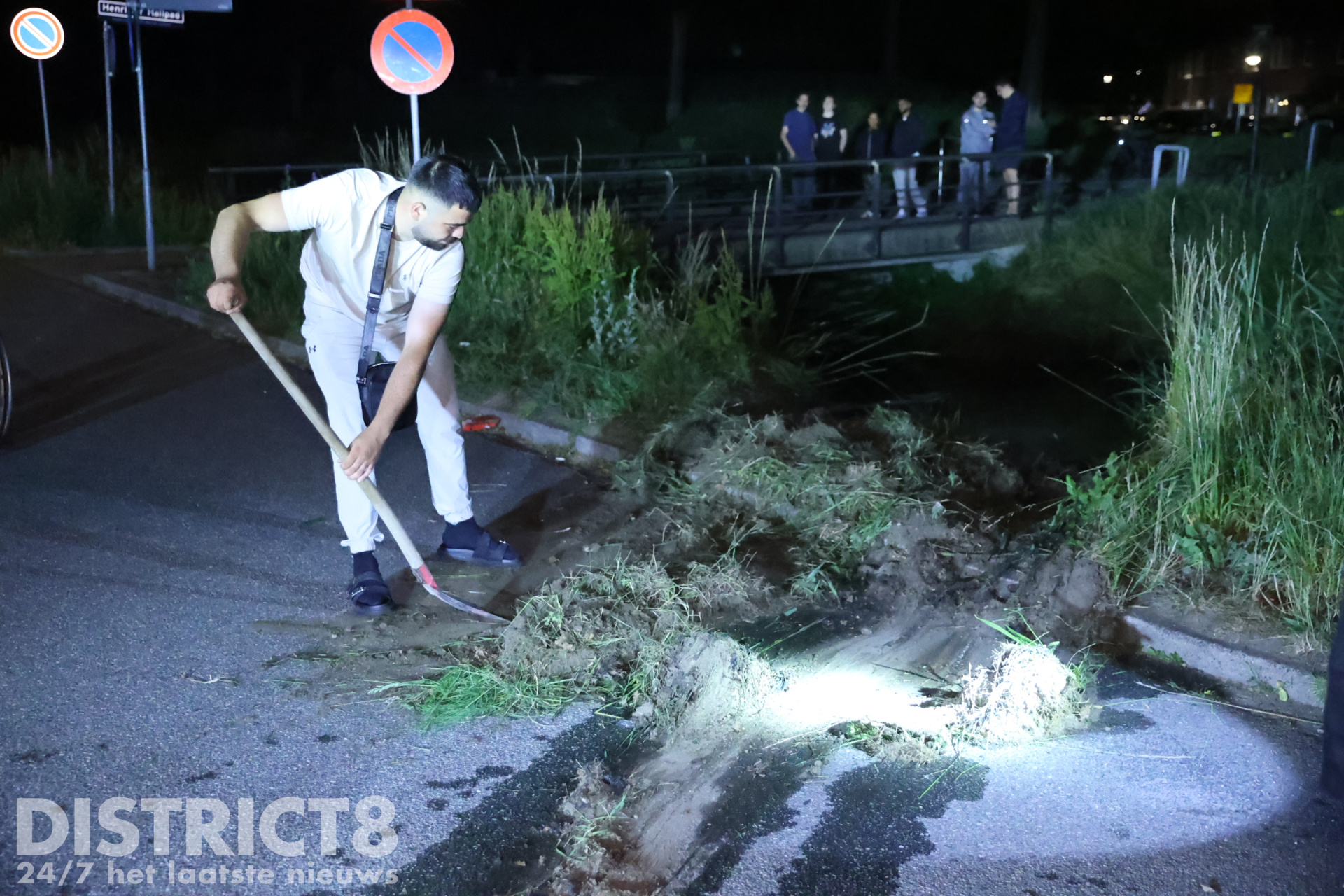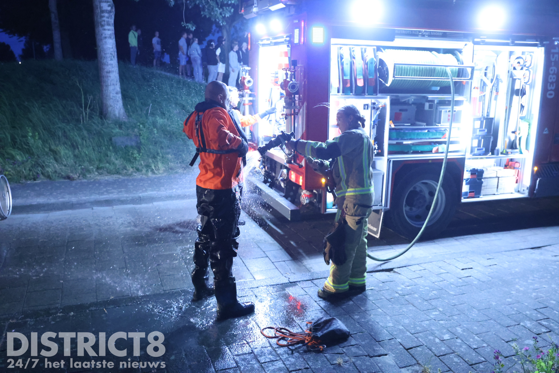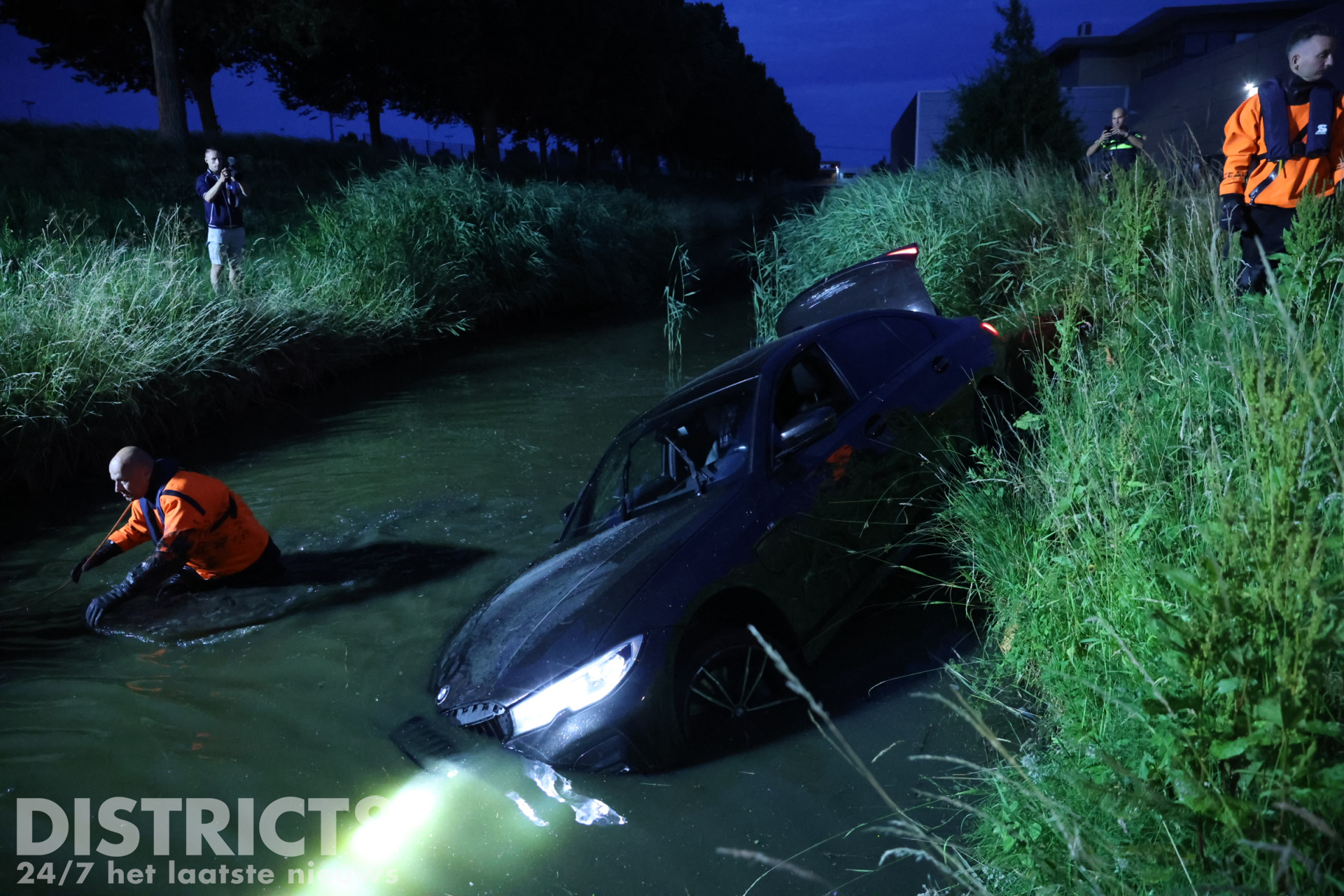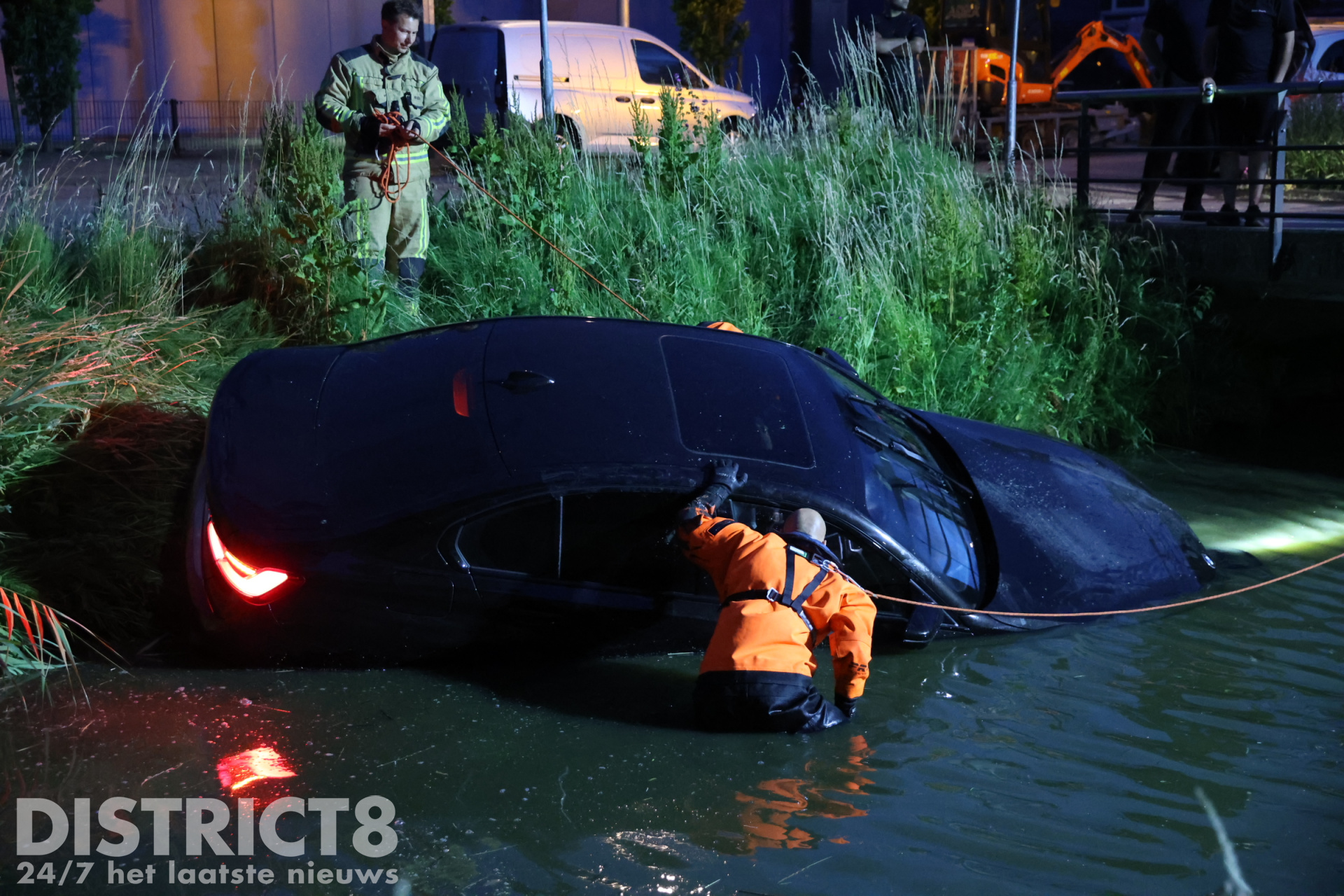 De automobilist belde enkele vrienden van hem. Zo ook de eigenaar van een Dodge Ram waarmee een poging werd gedaan om de auto op het drogen te krijgen. Onder het toeziend oog van meerdere jongeren en buurtbewoners werd twee keer geprobeerd om de auto uit het water te slepen. Nadat voor de tweede keer het spanbandje brak, gaven de vrienden van de automobilist het op.