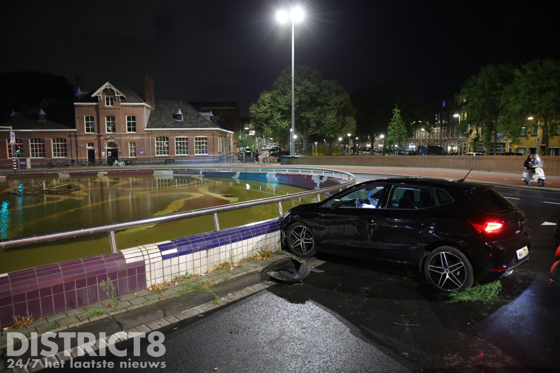 De auto raakte daarbij een verkeerslicht en een boom en kwam vervolgens tot stilstand tegen een betonnen gevel van het plein.