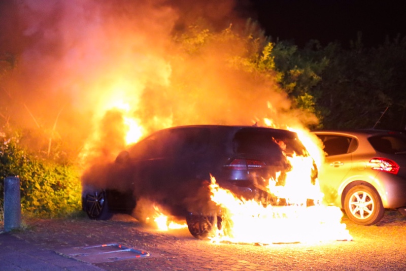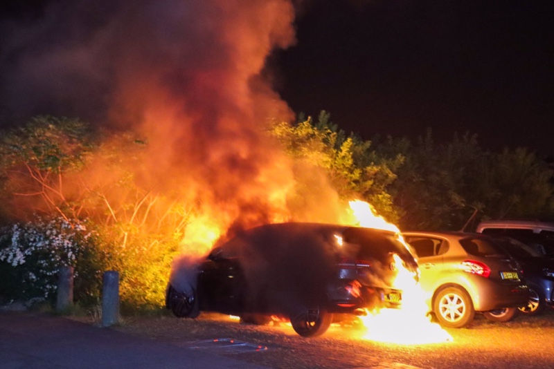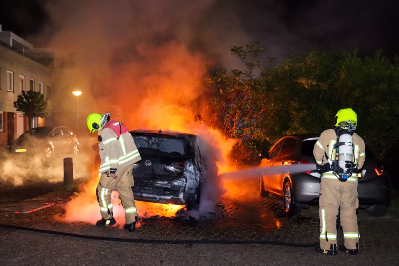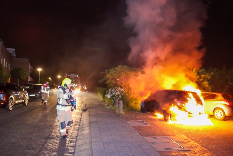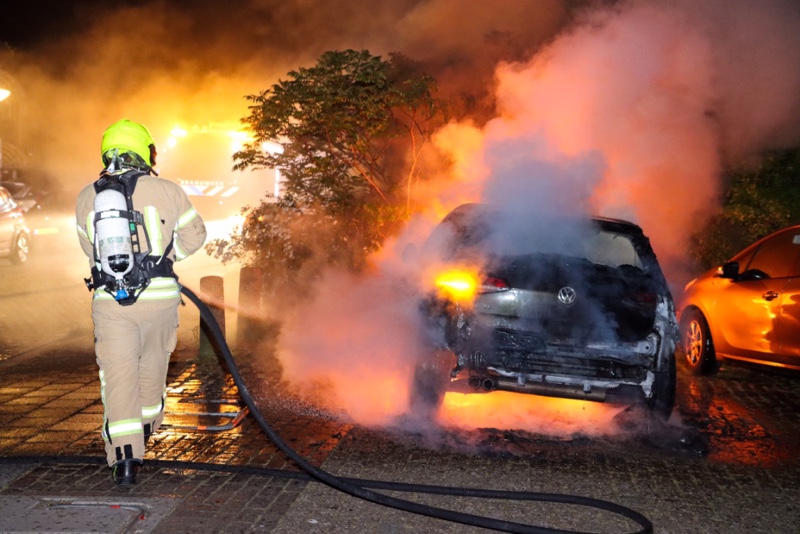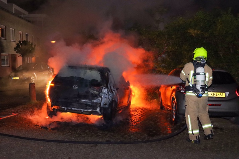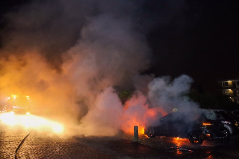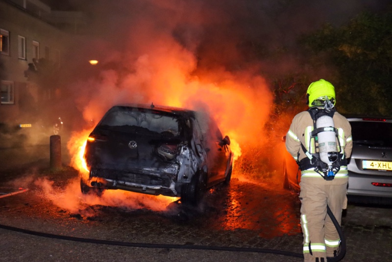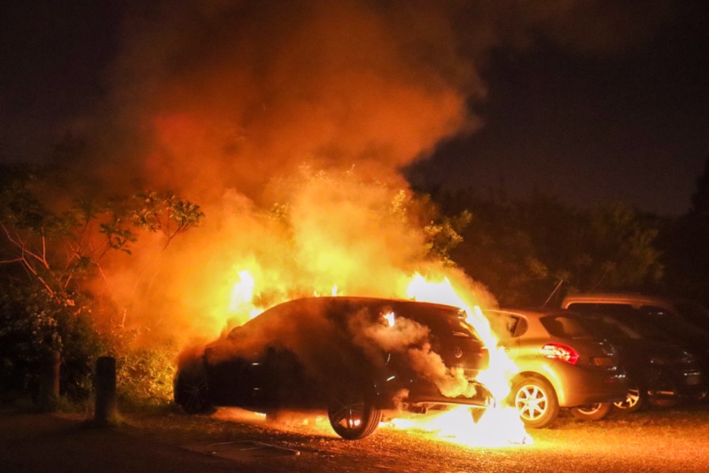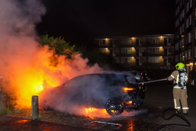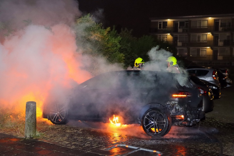Bij aankomst stond de auto compleet in brand. De brandweer had het vuur snel onder controle en kom voorkomen dat een naast gelegen auto beschadigd raakte.