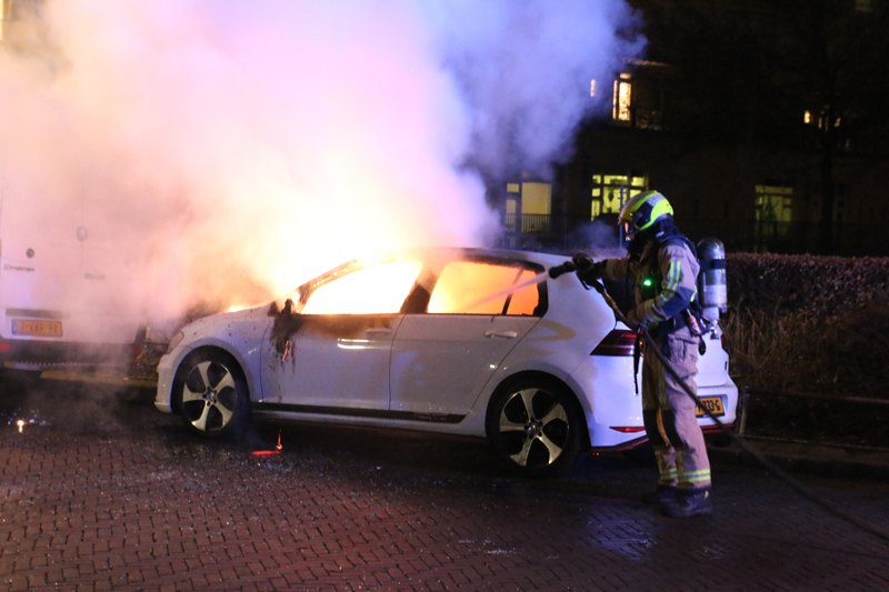 De brandweer kwam met spoed ter plaatse, maar bij aankomst stond het voertuig al volledig in brand. De brand was na aankomst van de brandweer al snel onder controle.