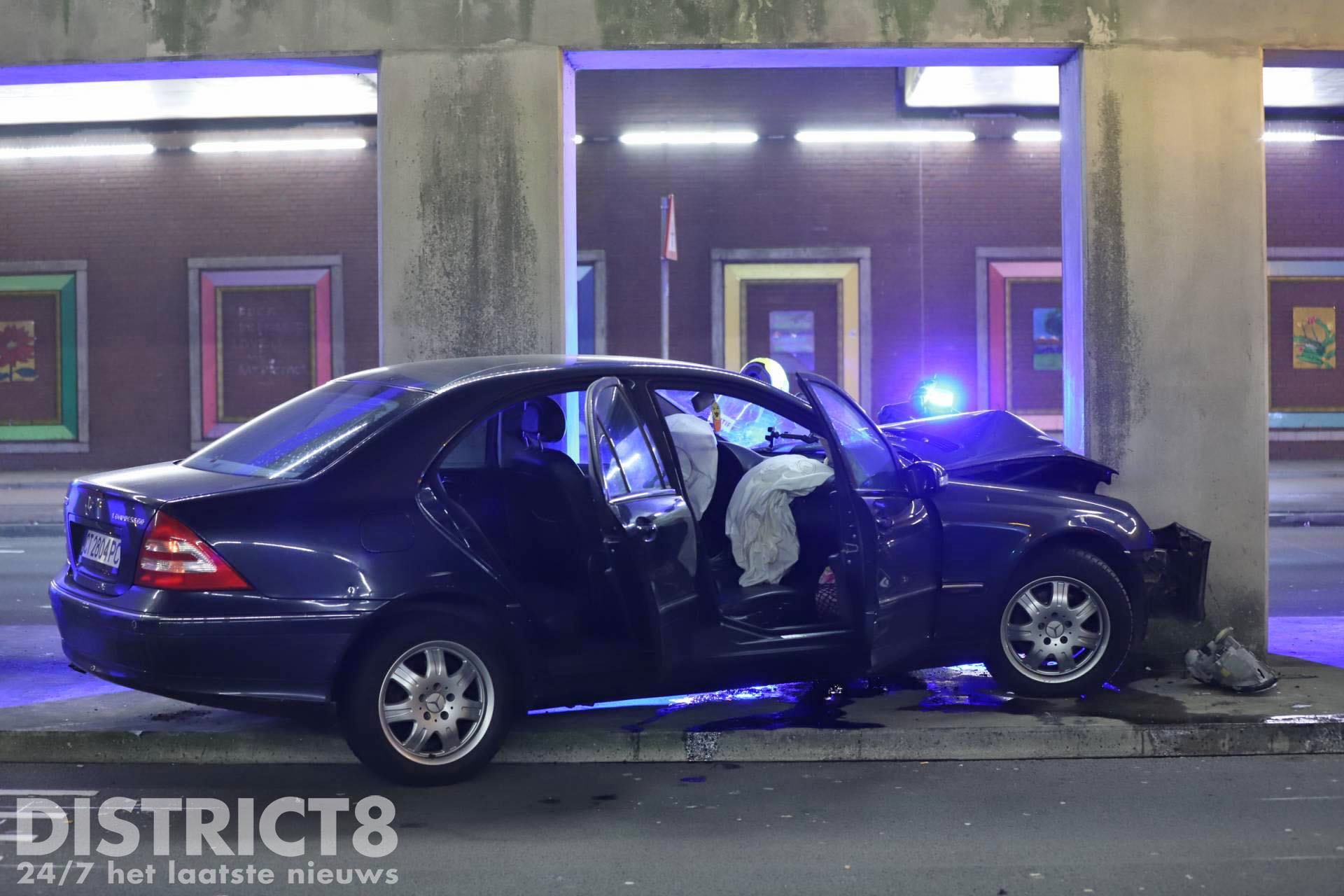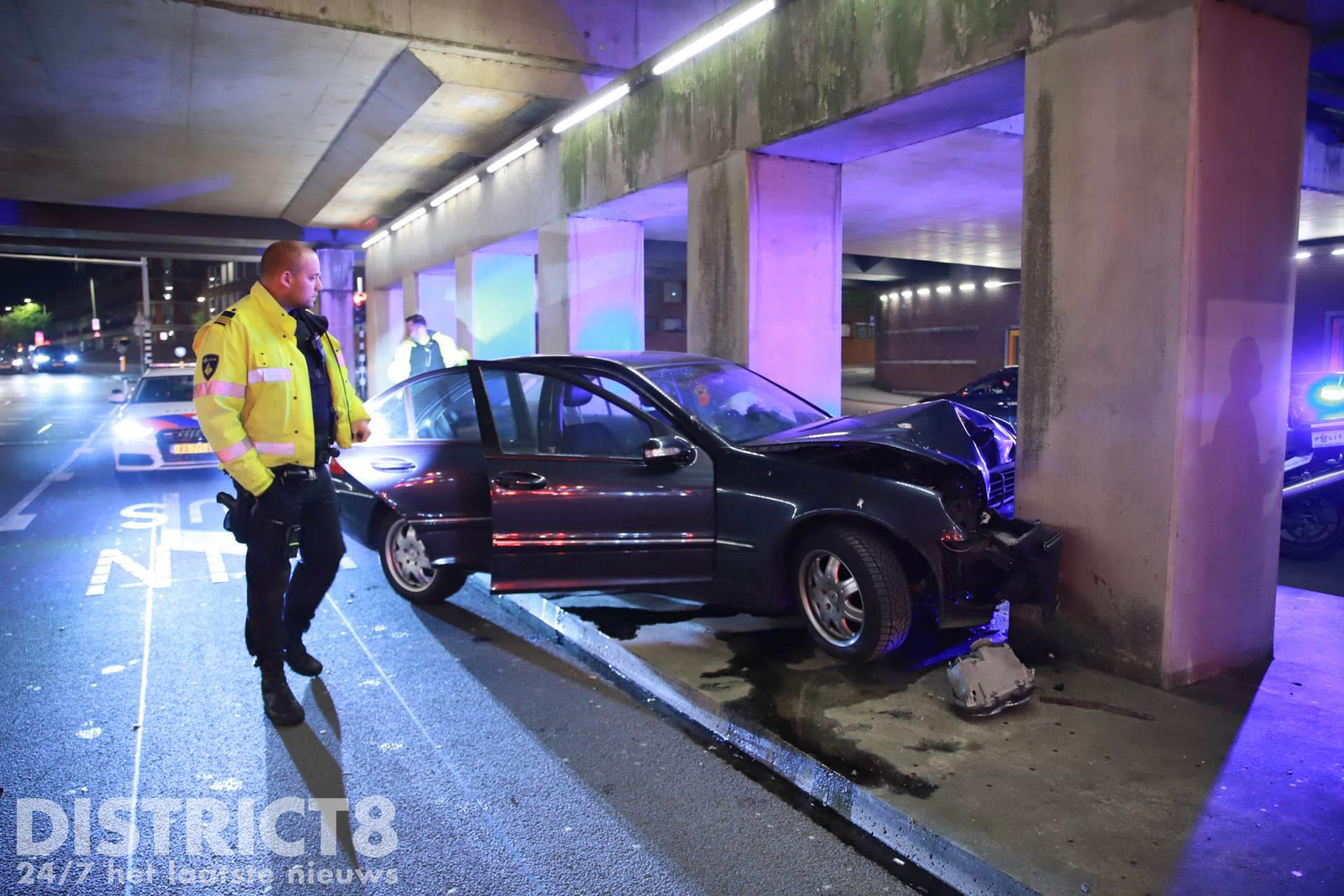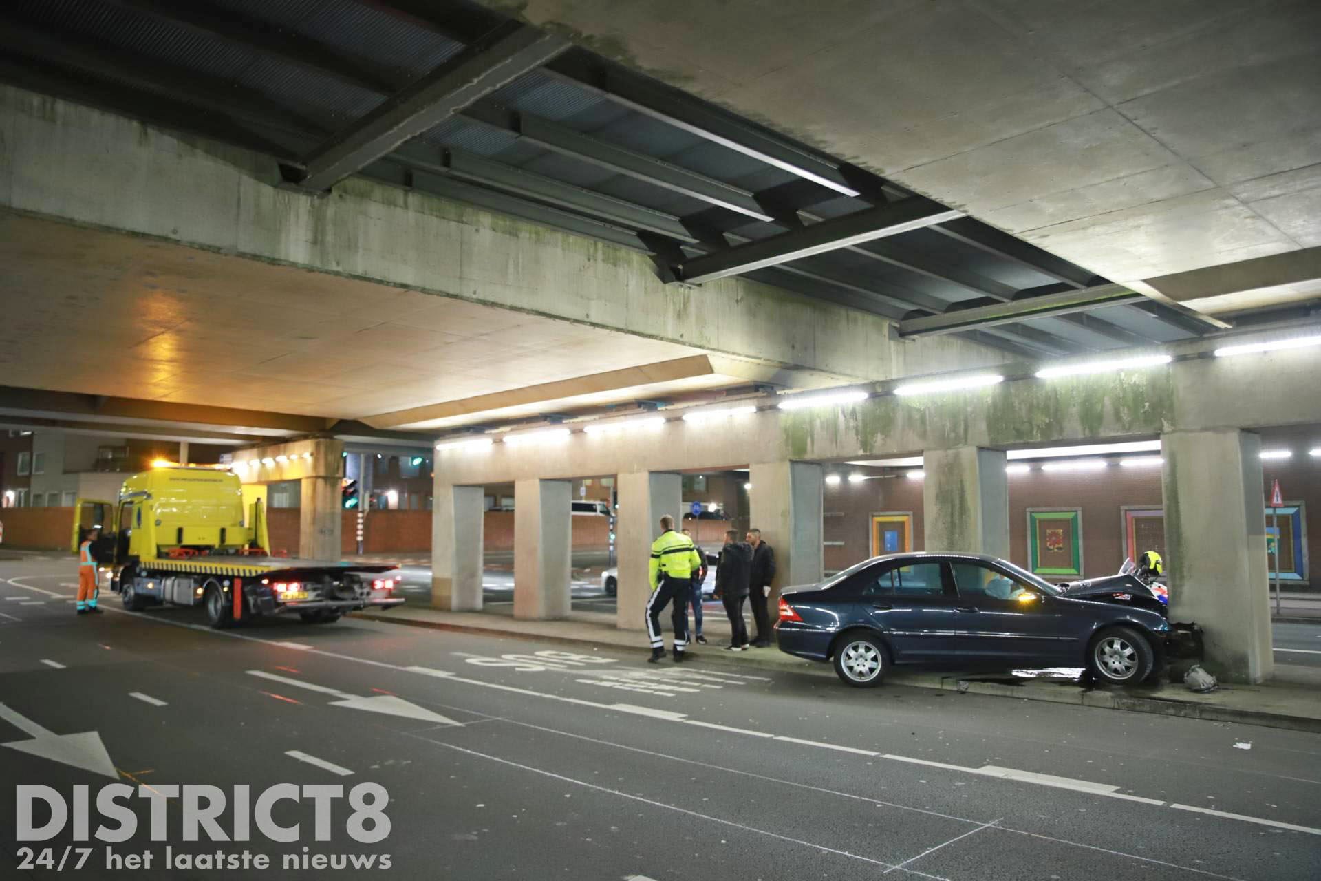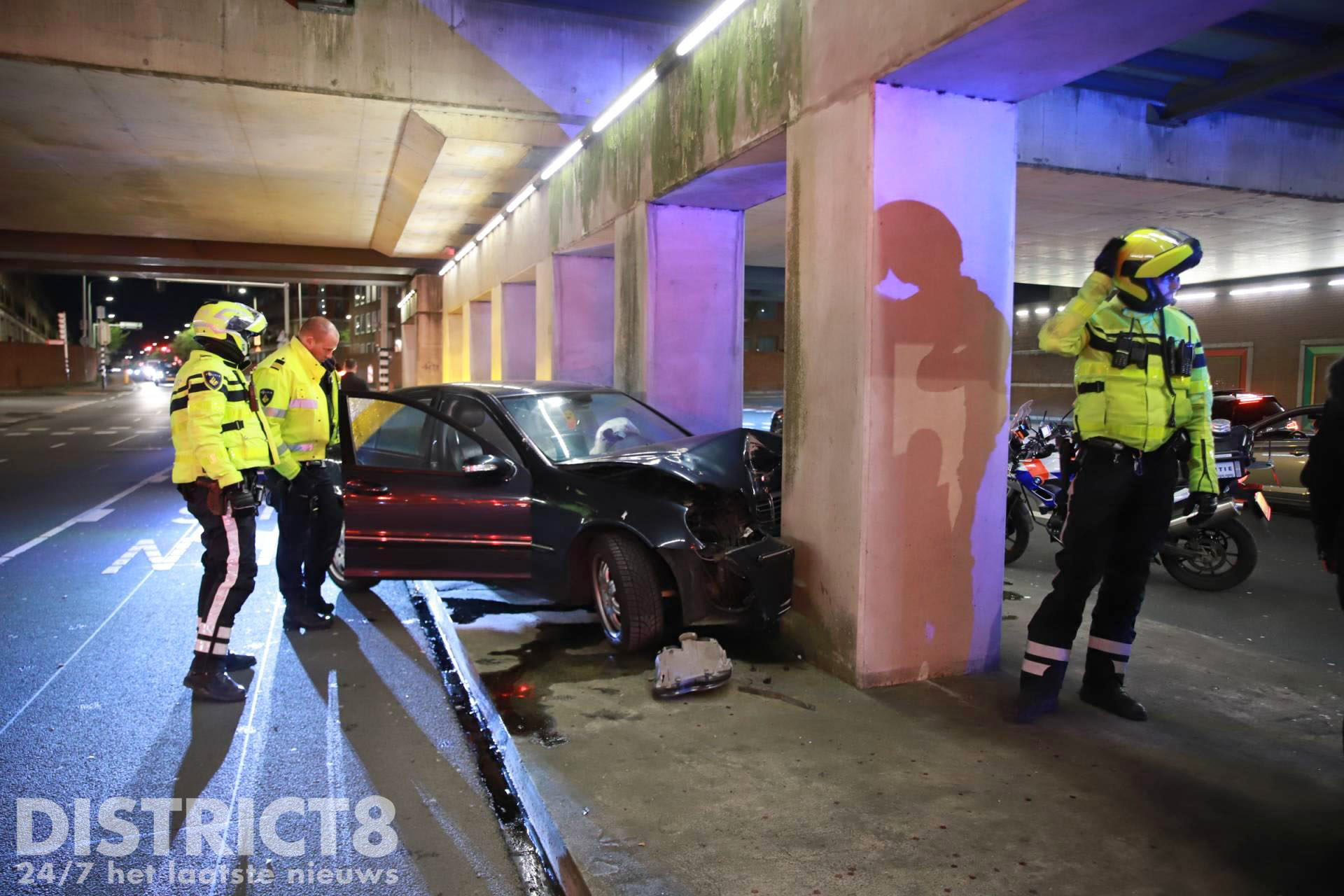 Omstreeks 01:50 vloog volgens getuigen een auto uit bocht. De auto kwam tot stilstand tegen een pilaar van het viaduct. De drie inzittenden kwamen zelfstandig uit de auto.