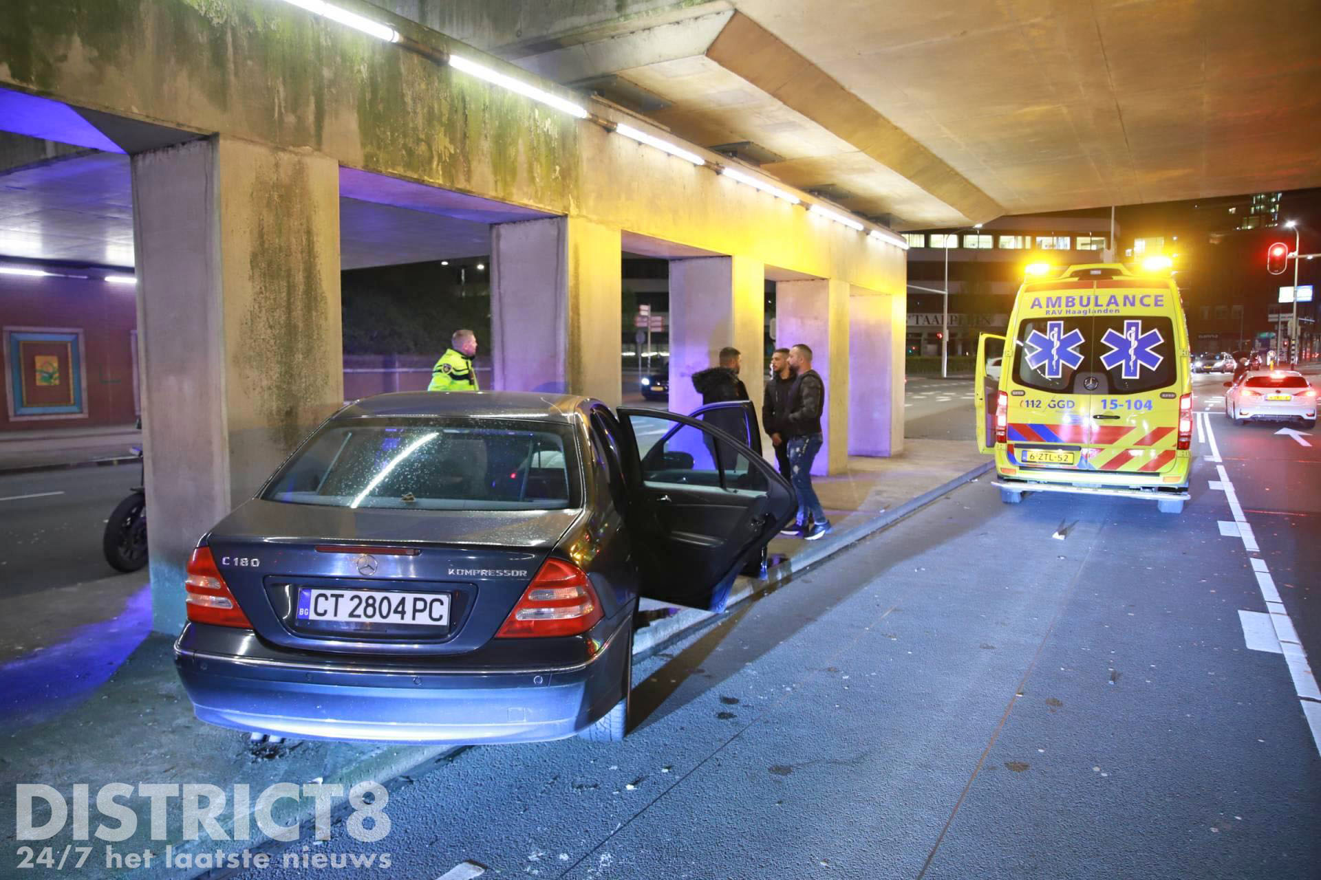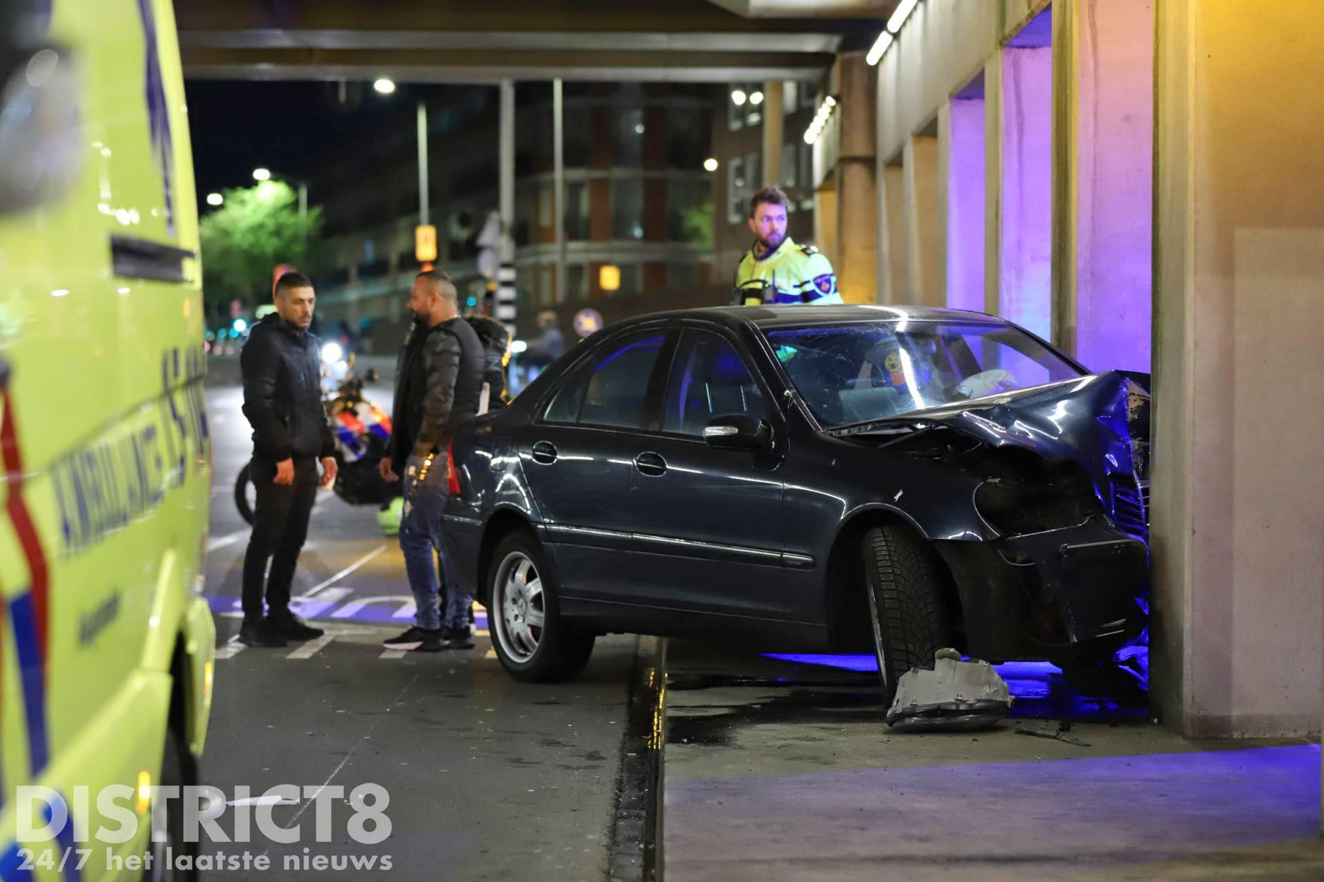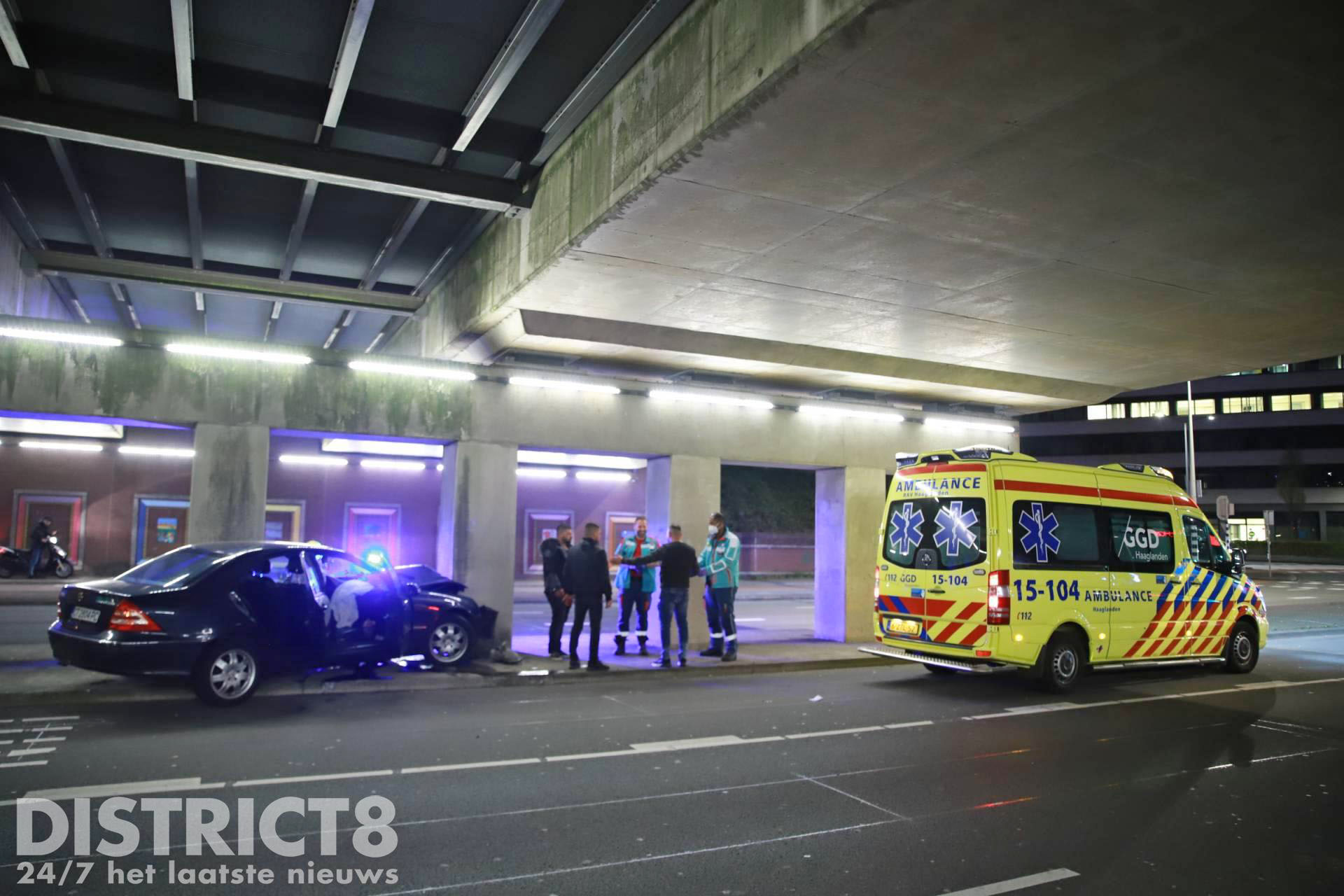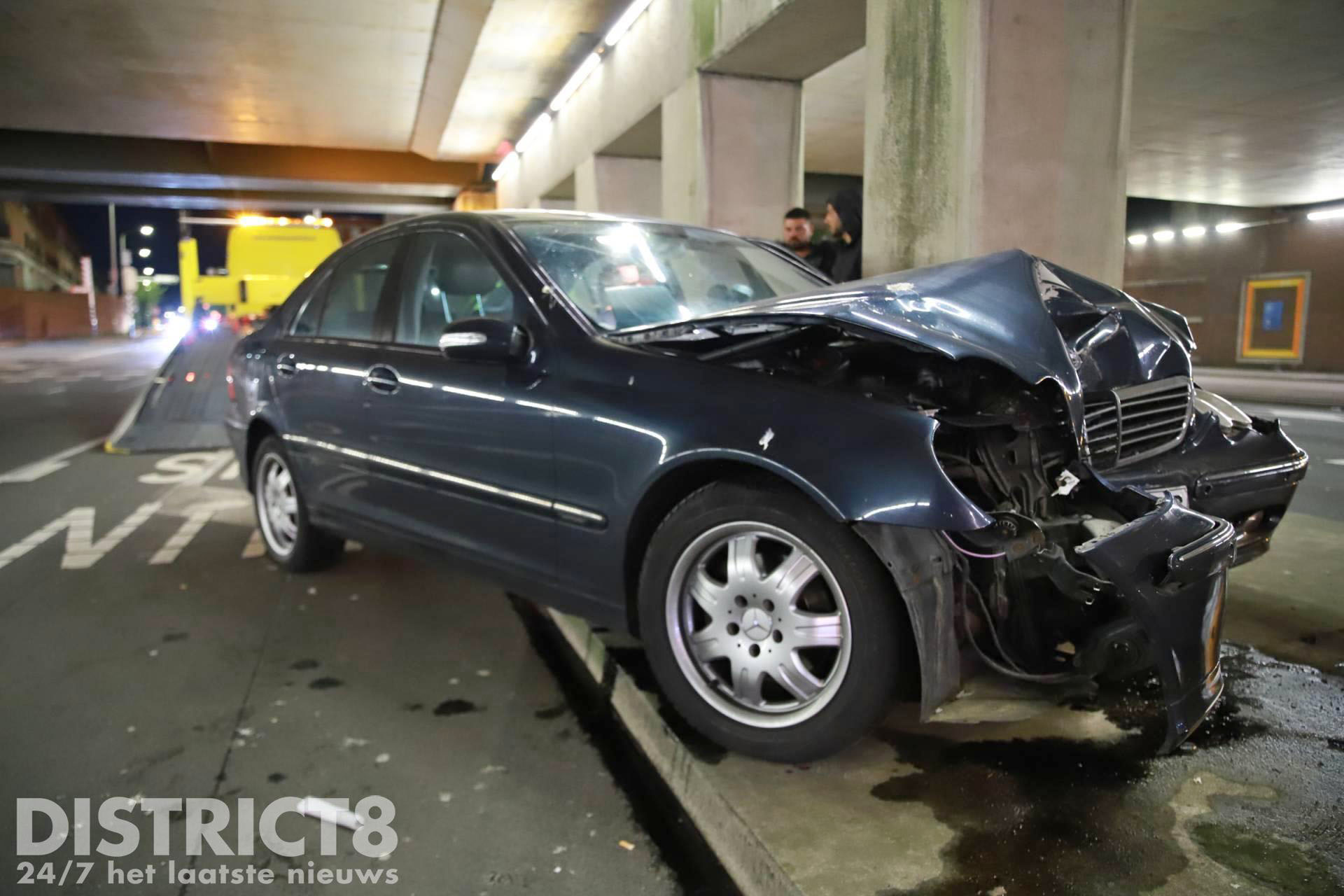 Omstreeks 01:50 vloog volgens getuigen een auto uit bocht. De auto kwam tot stilstand tegen een pilaar van het viaduct. De drie inzittenden kwamen zelfstandig uit de auto.