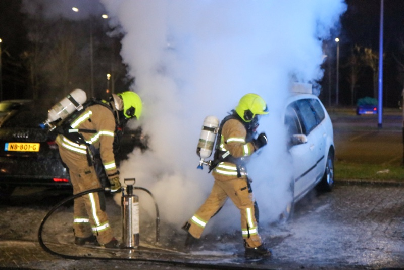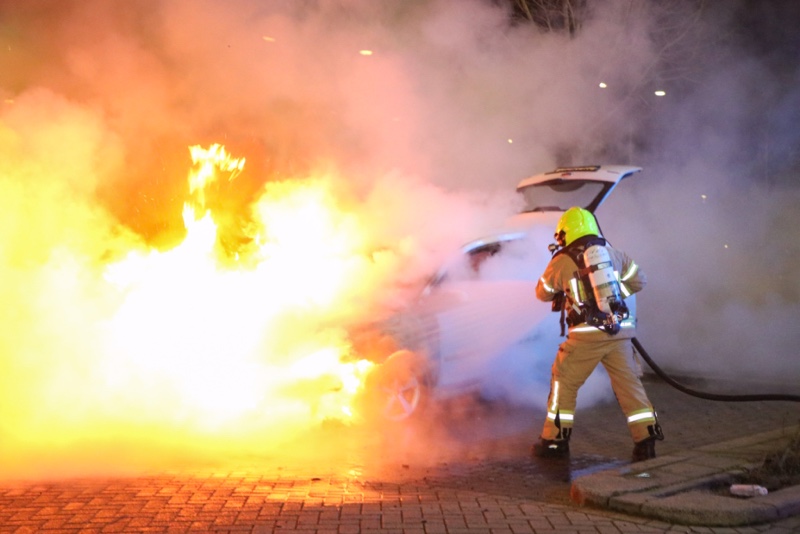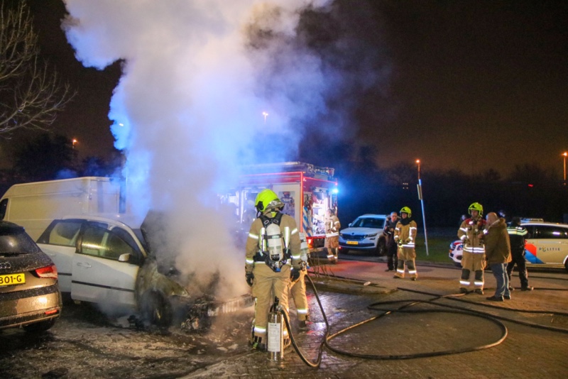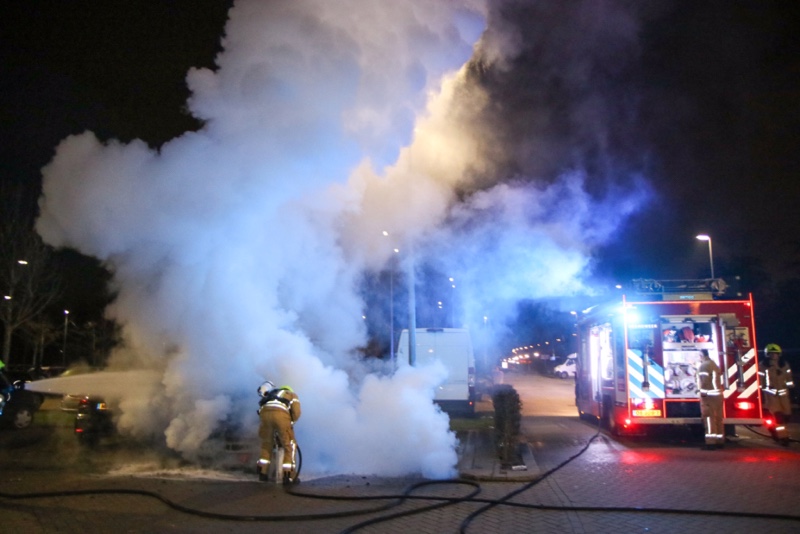 Bij aankomst van de brandweer stond het voorste deel van de auto flink in brand. De brandweer had het vuur snel onder controle. De auto raakte zwaar beschadigd en zal door een berger weggehaald worden.