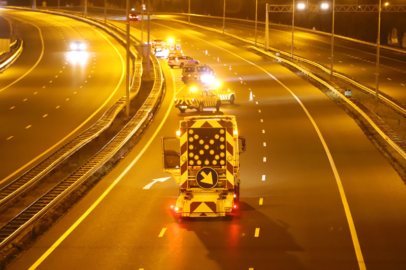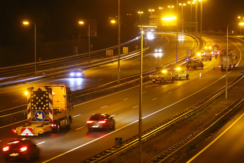 Rijkswaterstaat heeft samen met een aannemer de hoofdrijbaan afgezet. Ondanks de rode kruizen hebben verschillende automobilisten de kruizen genegeerd. Deze zijn stilgezet en hebben een boete gekregen. Het verkeer ondervindt nauwelijks hinder. Het slachtoffer is evenlater vervoerd naar het ziekenhuis. Een berger heeft het voertuig geborgen.