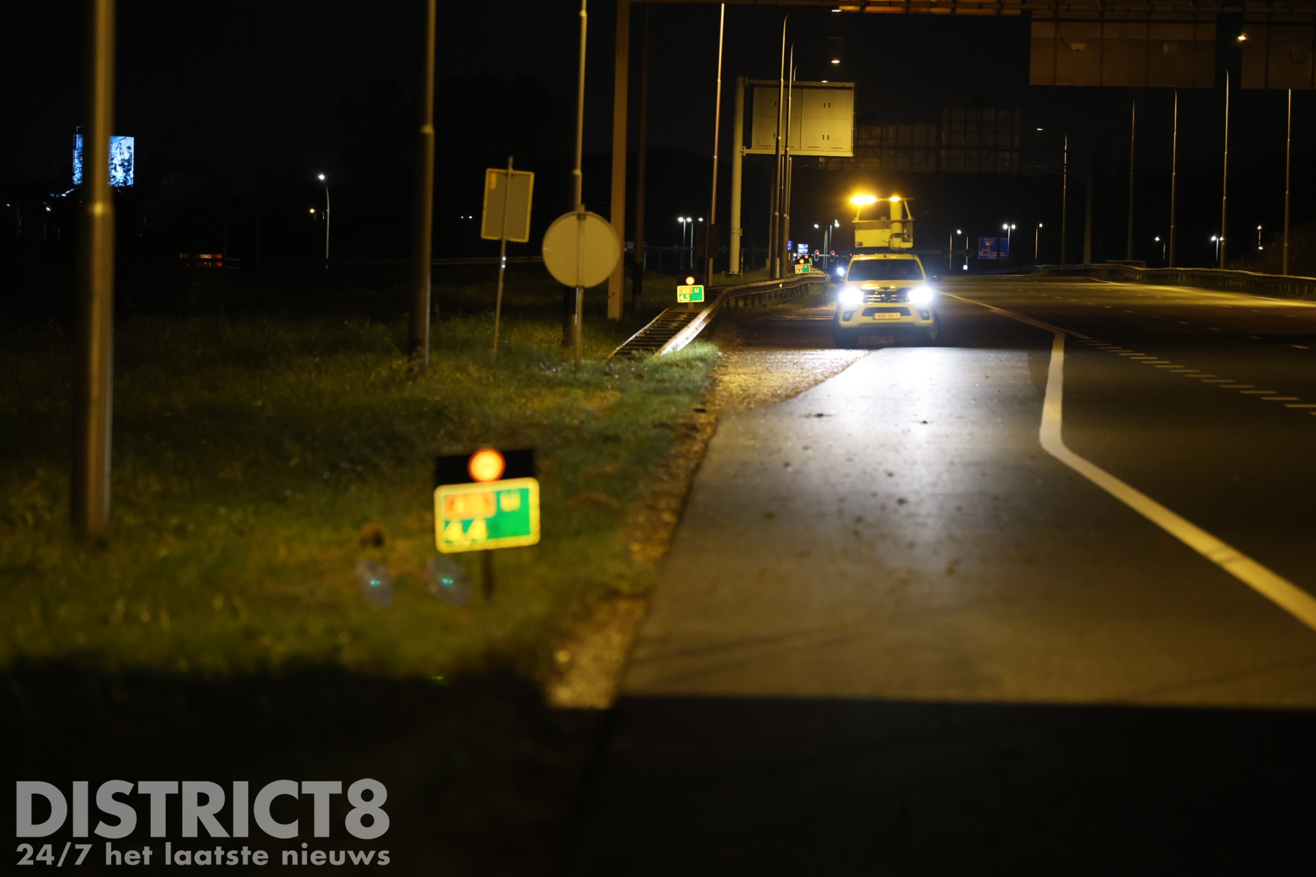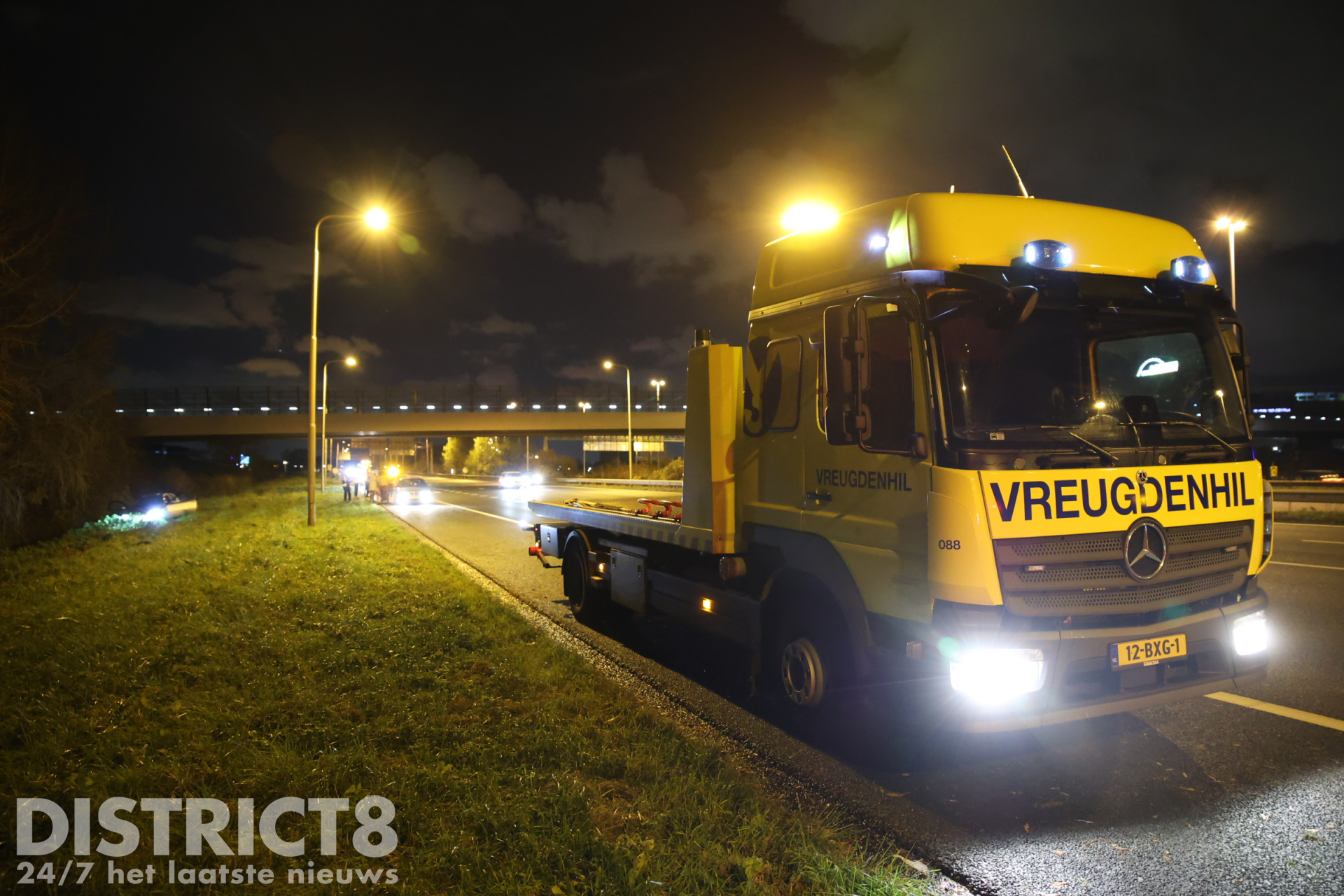 Een berger is ter plekke gekomen en neemt de auto mee. Door het ongeval ontstond een kleine file, maar er hoefde geen rijbanen afgesloten te worden.