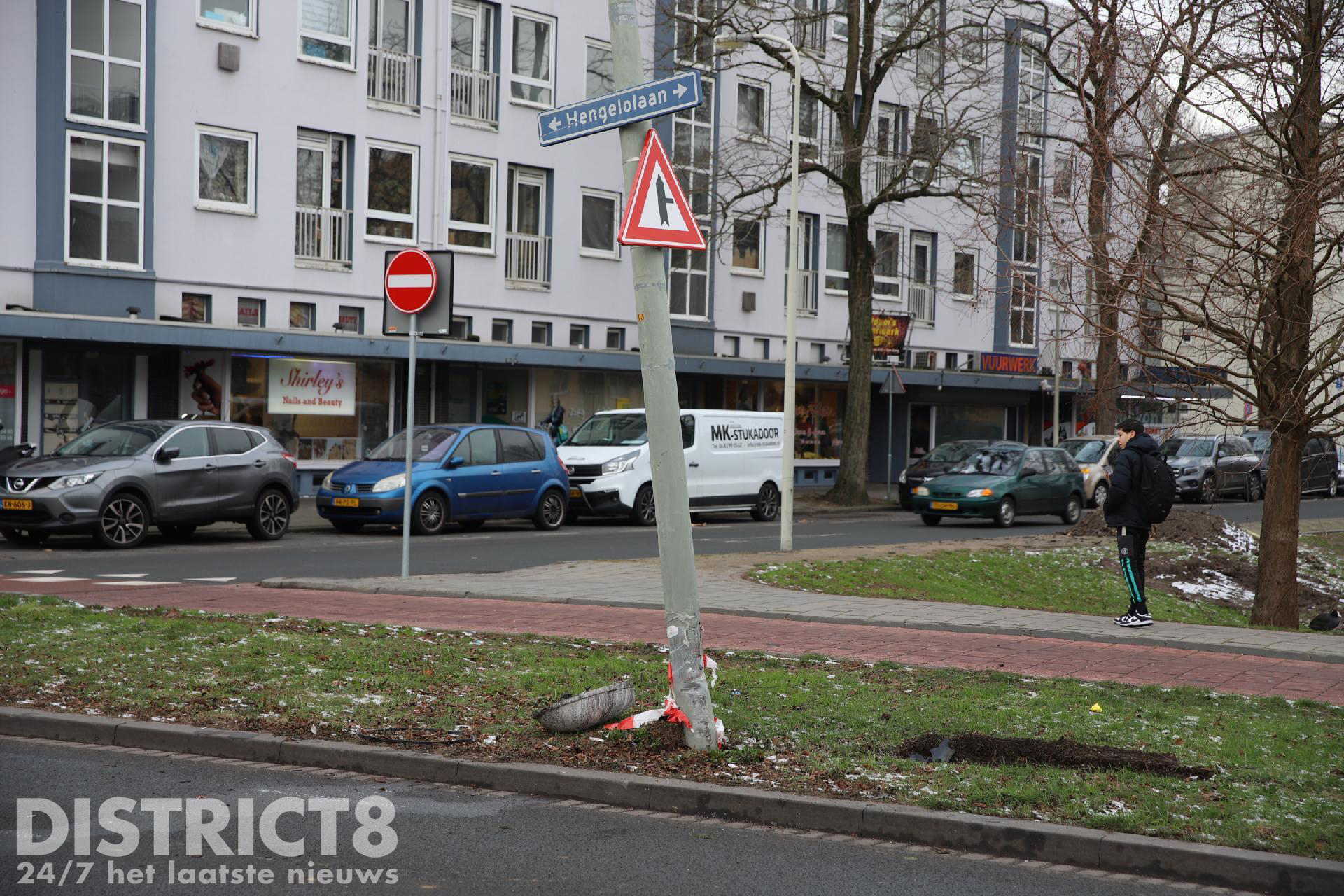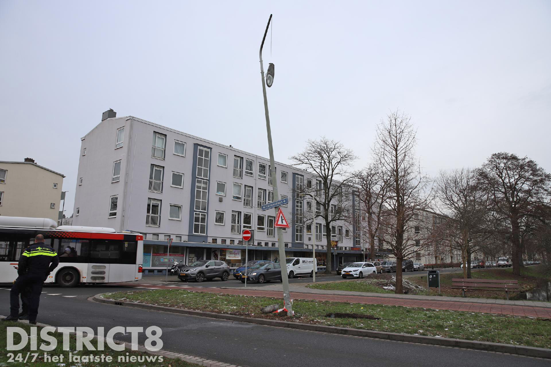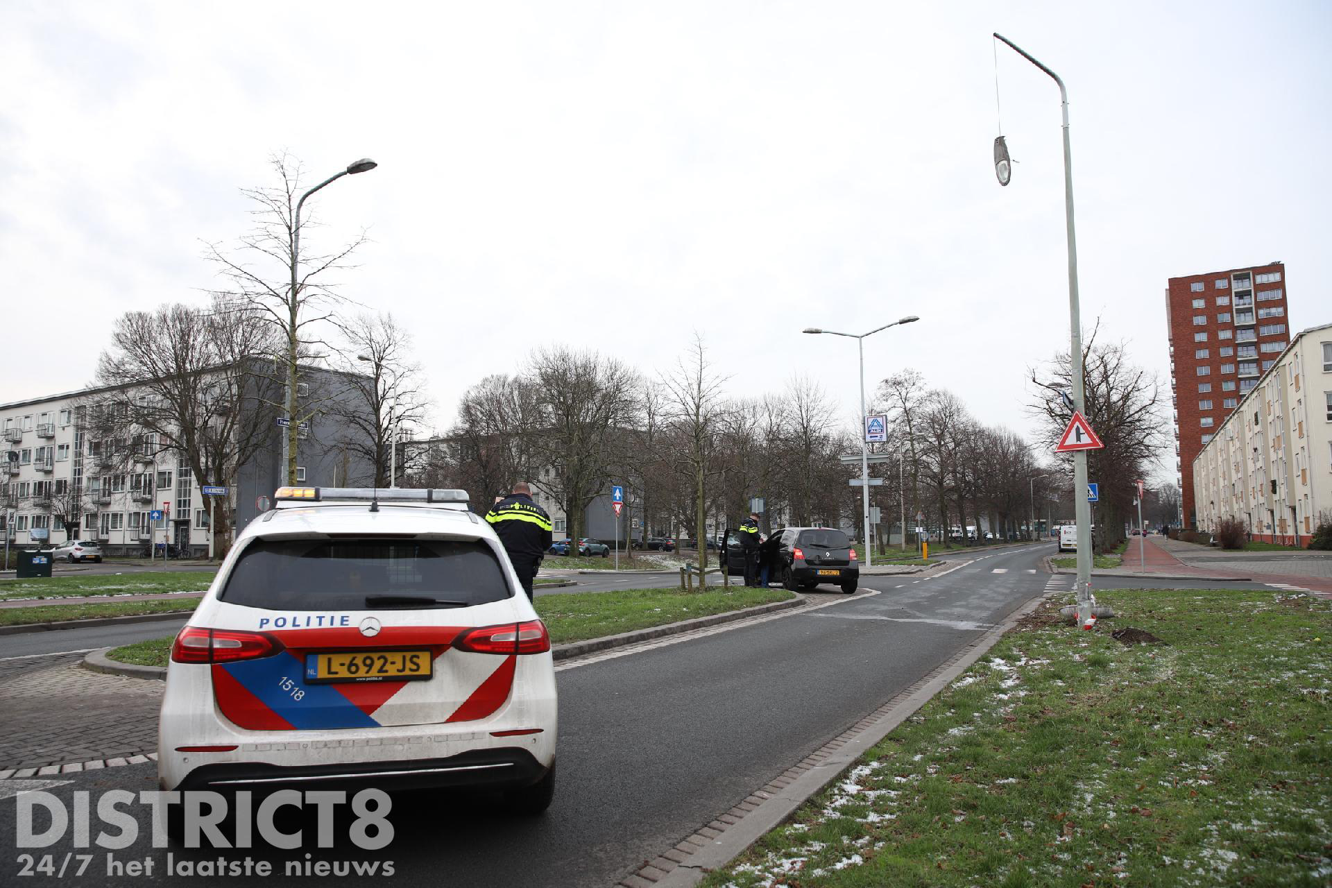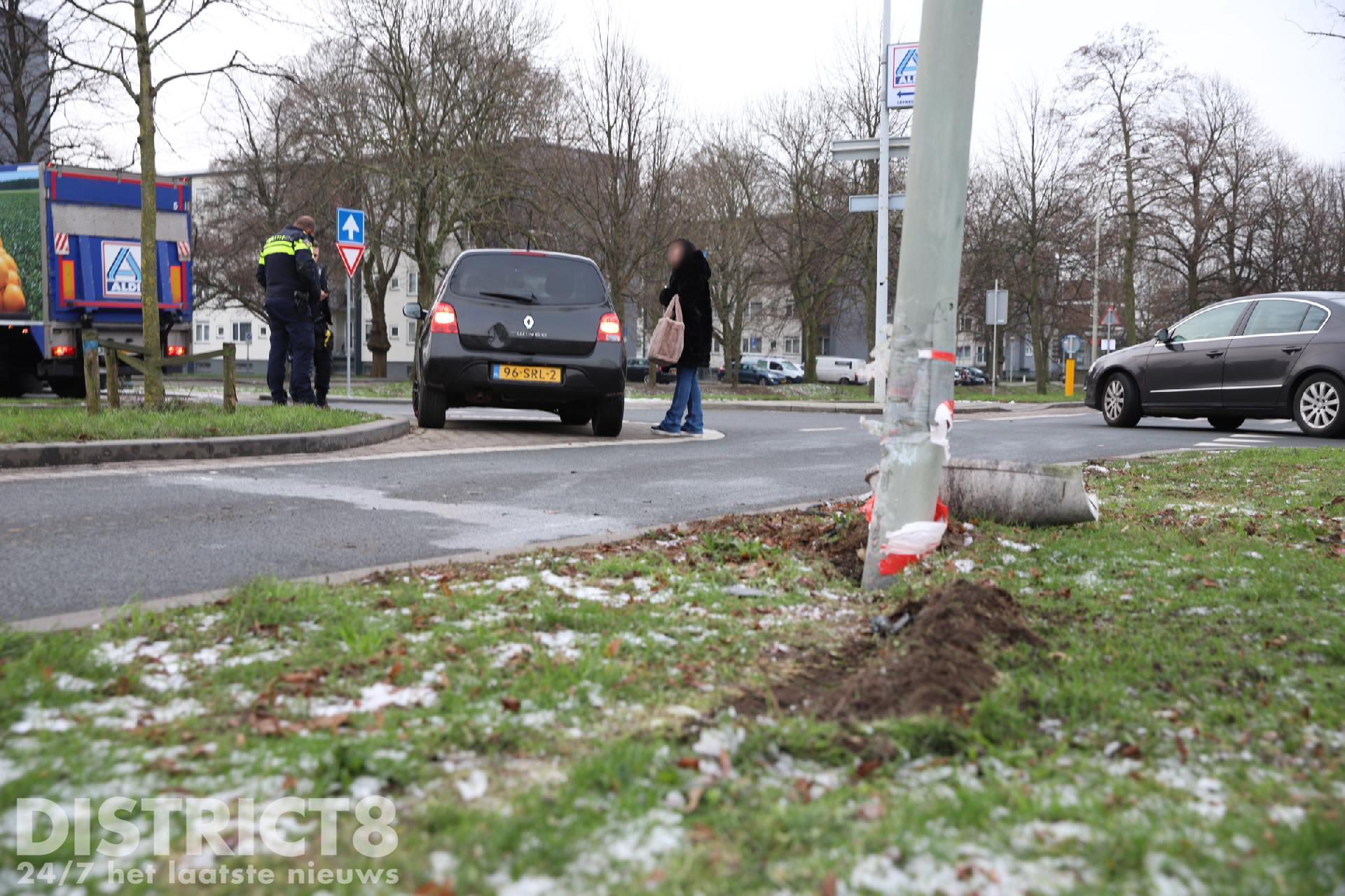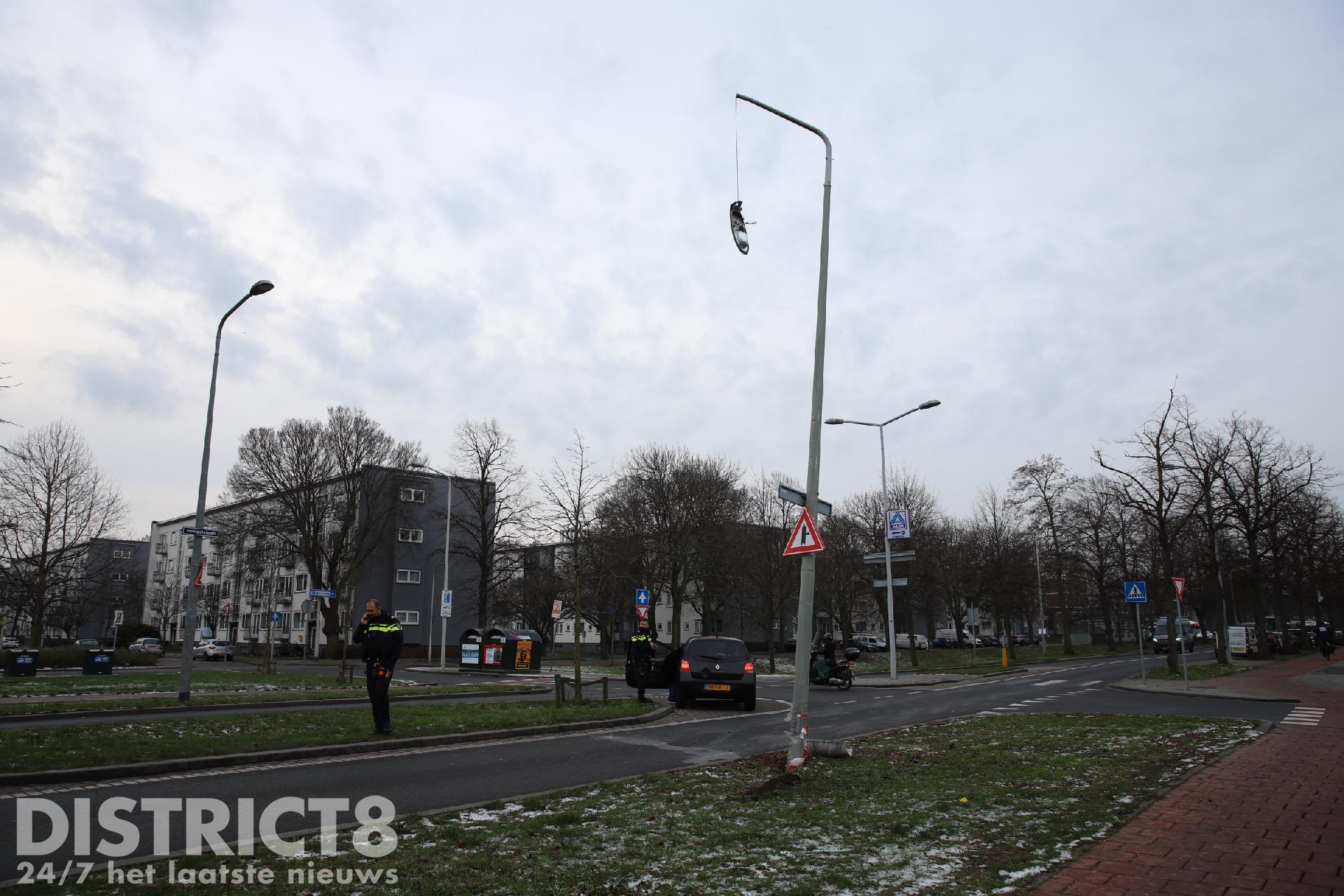 Eenmaal ter plaatse troffen de hulpdiensten een auto aan en een beschadigde lichtmast waarvan de lamp eraf lag.