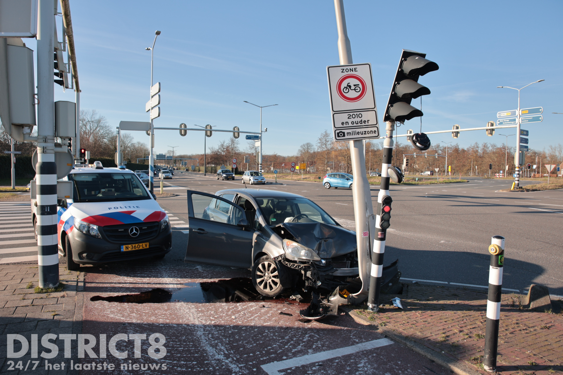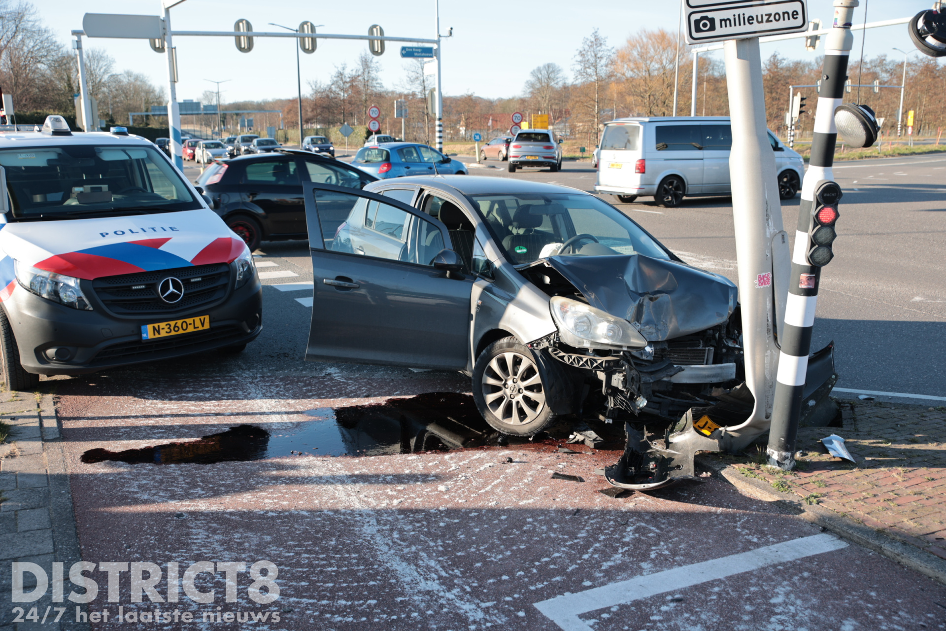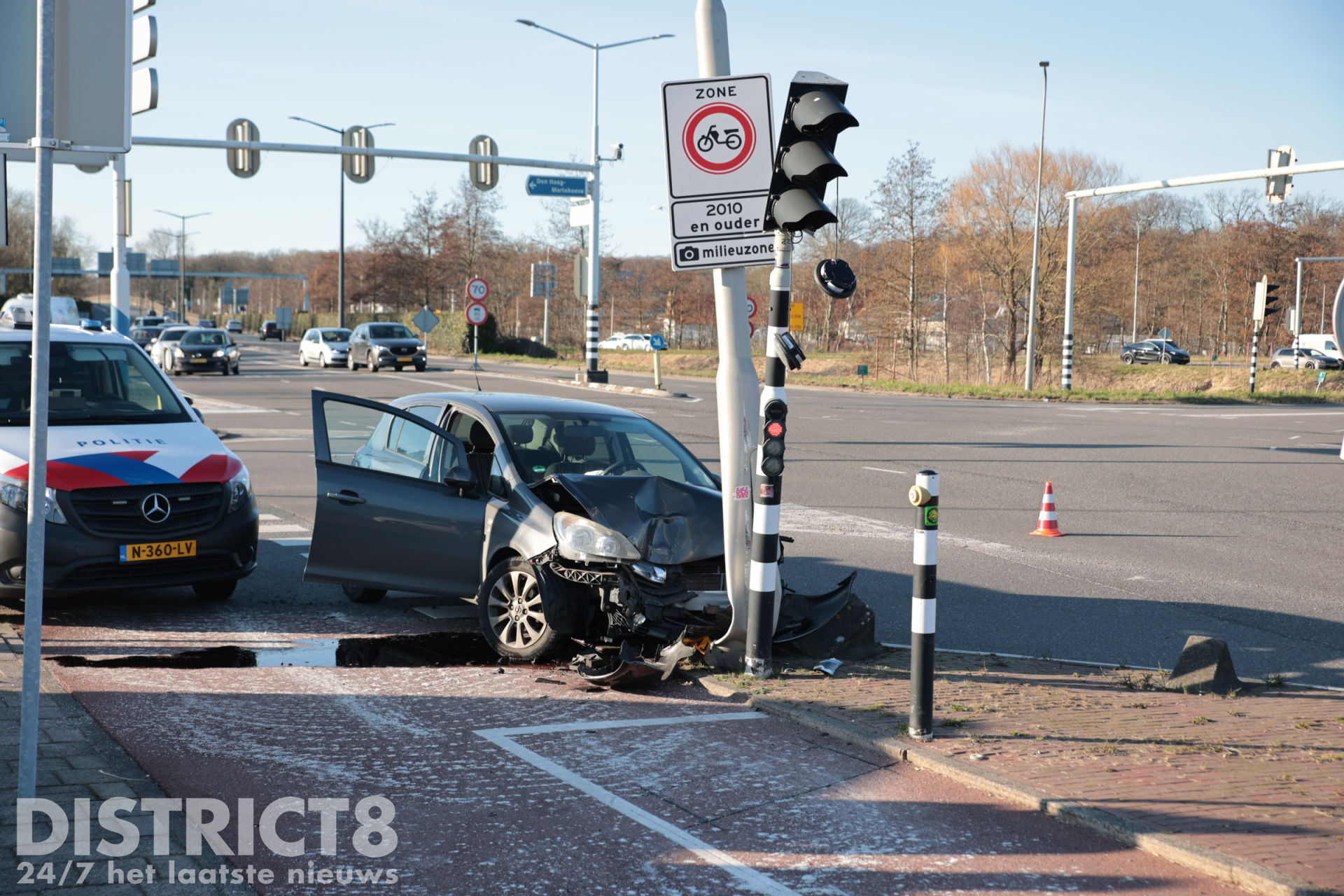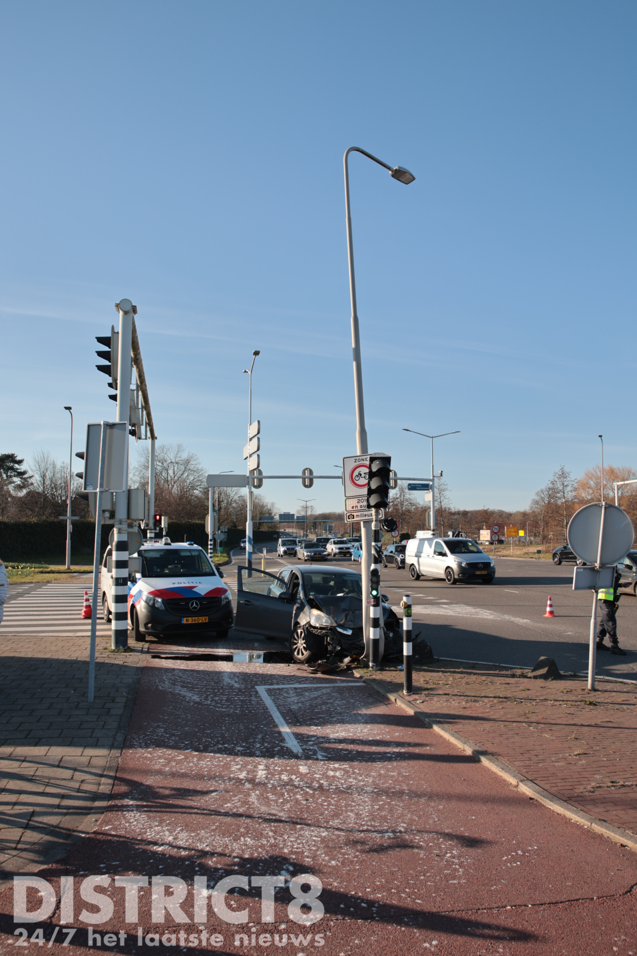 Door de aanrijding is ook een verkeerslicht gesneuveld. Het overige verkeer ondervindt enige hinder door het ongeval. Een bergingsbedrijf zal ter plaatse komen om het voertuig te bergen