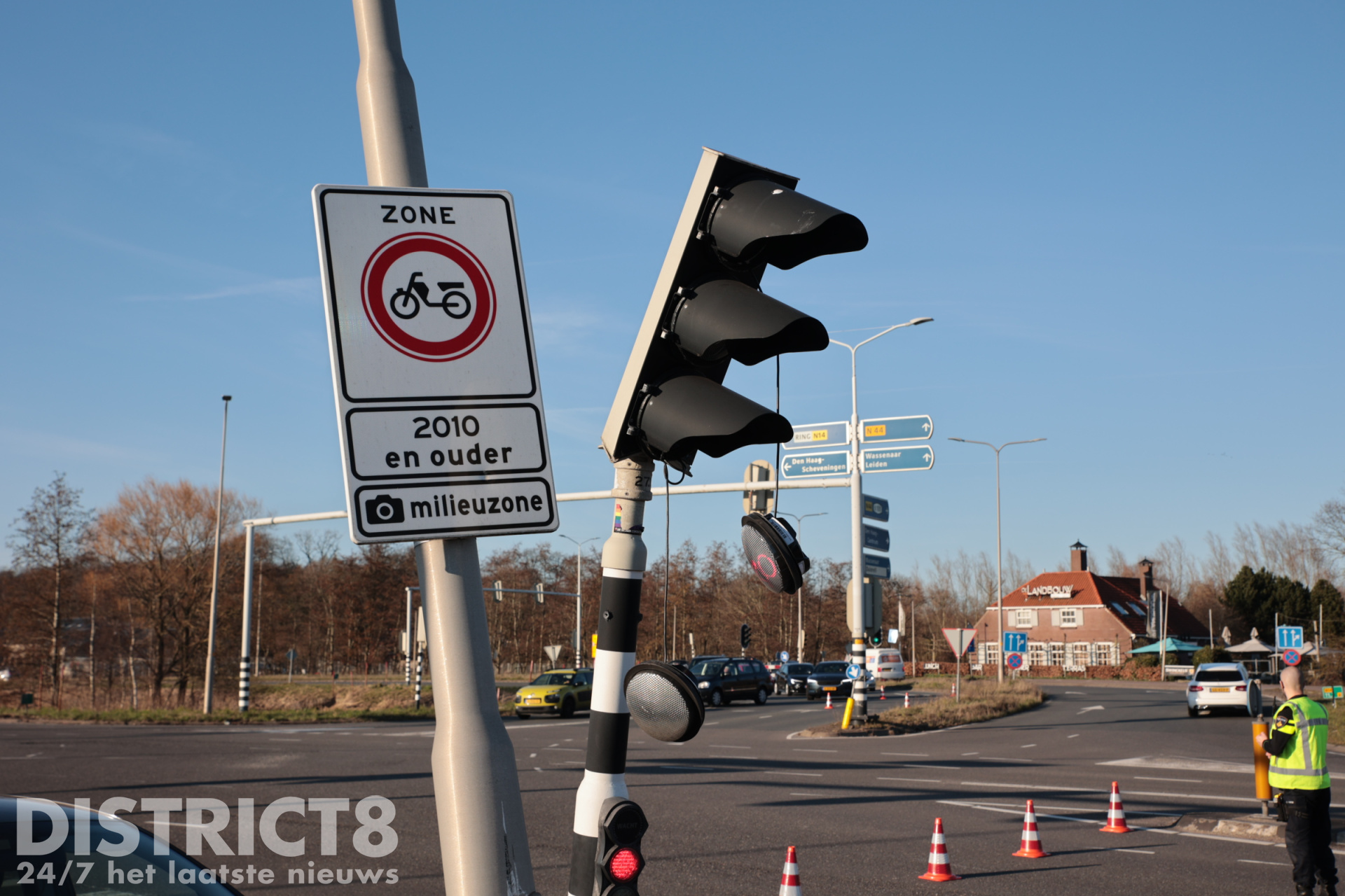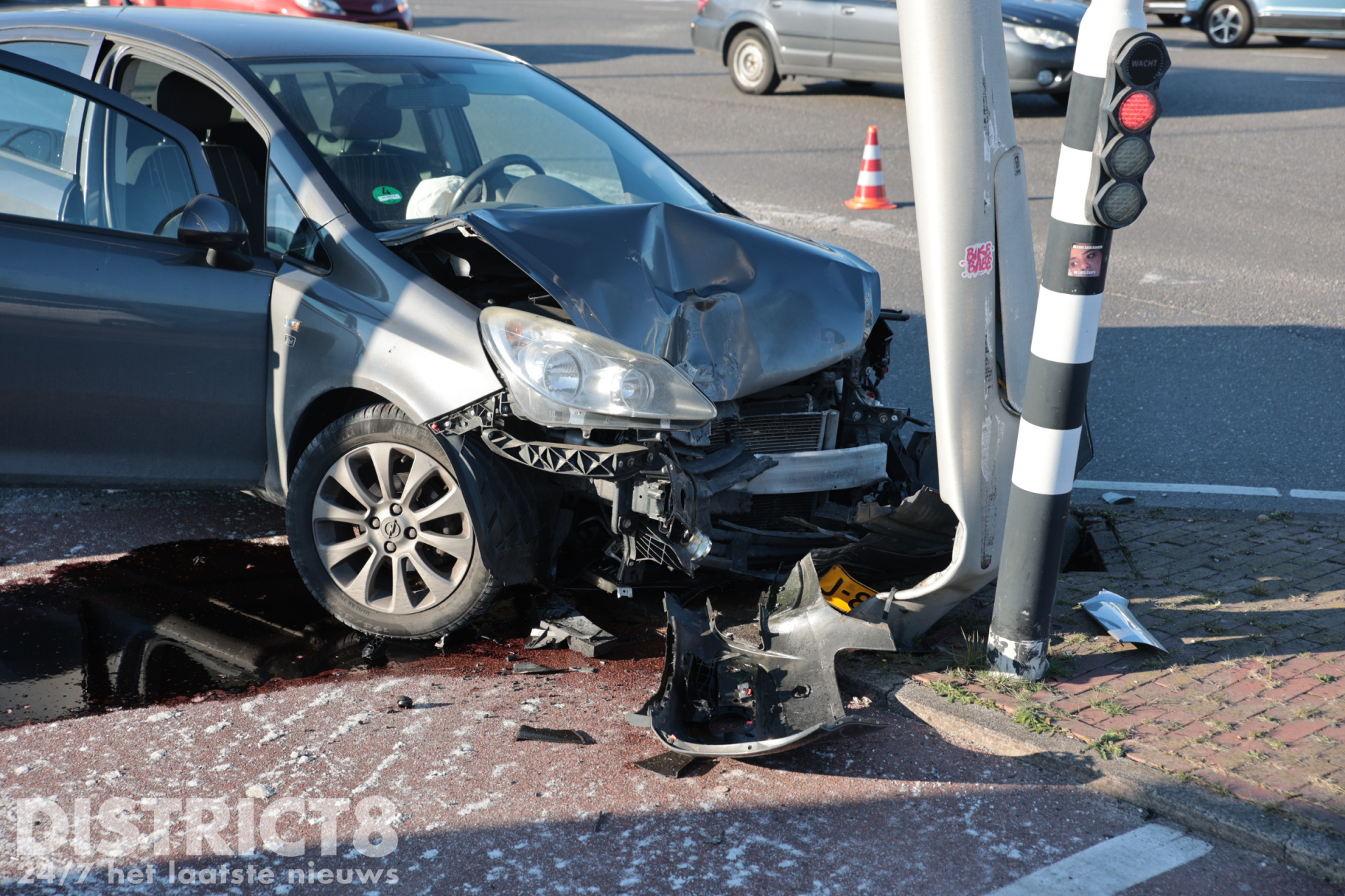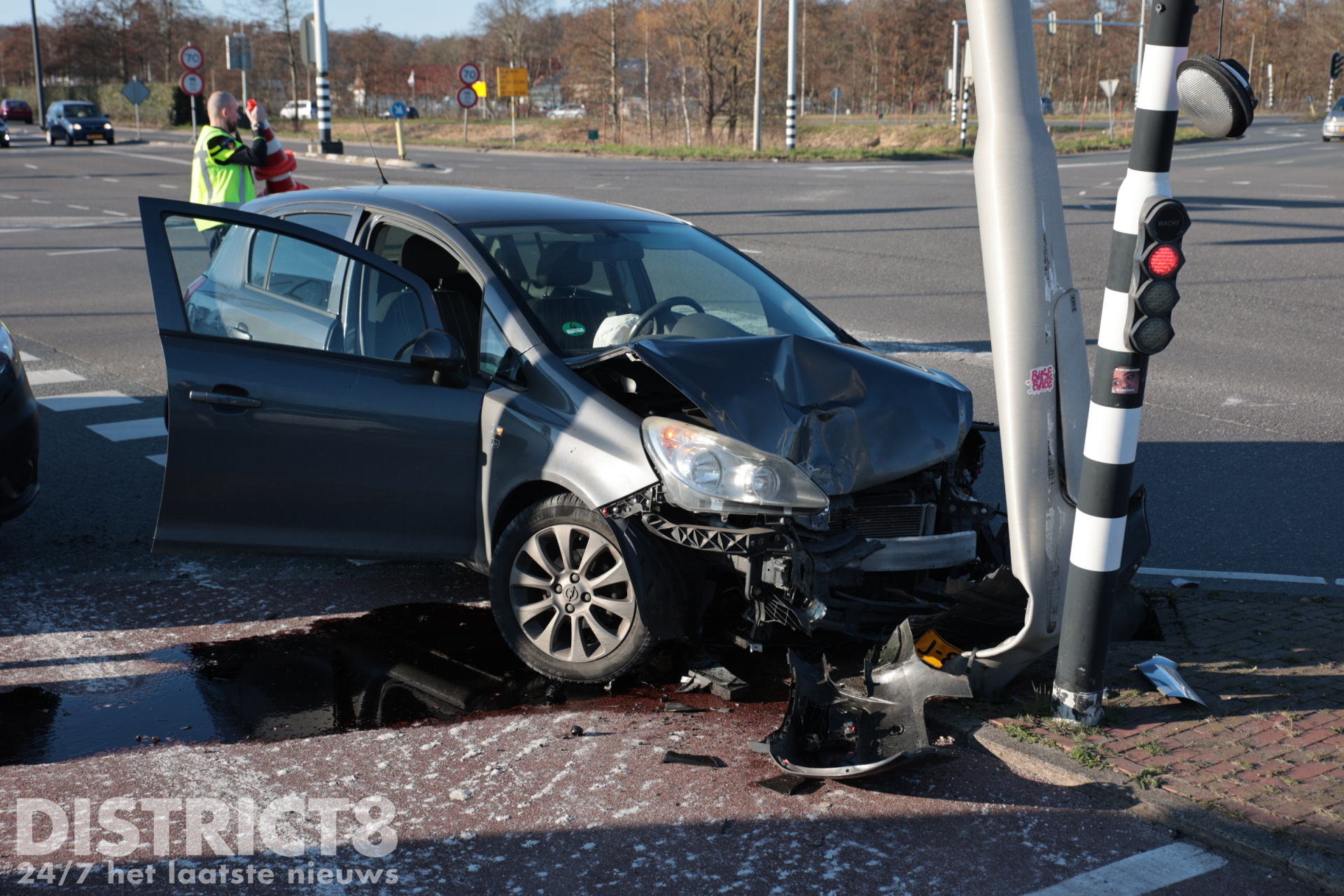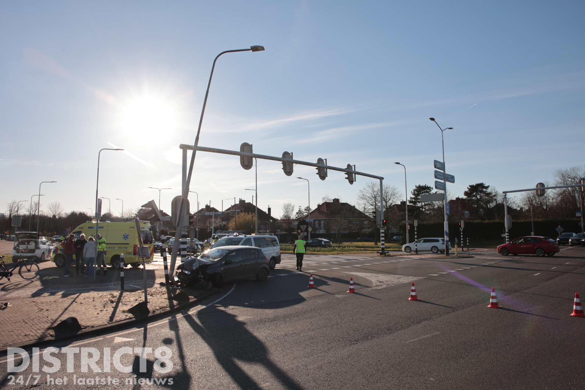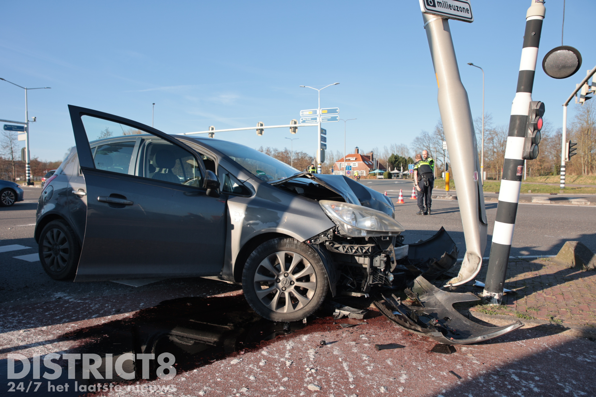 Door de aanrijding is ook een verkeerslicht gesneuveld. Het overige verkeer ondervindt enige hinder door het ongeval. Een bergingsbedrijf zal ter plaatse komen om het voertuig te bergen