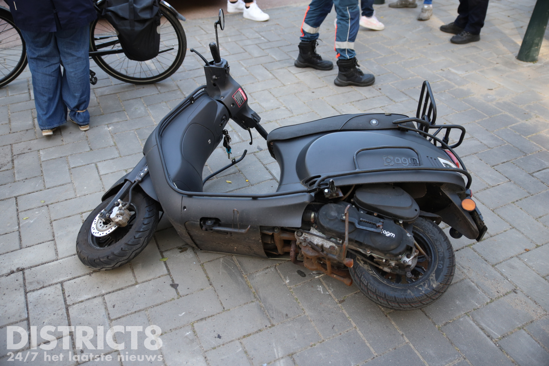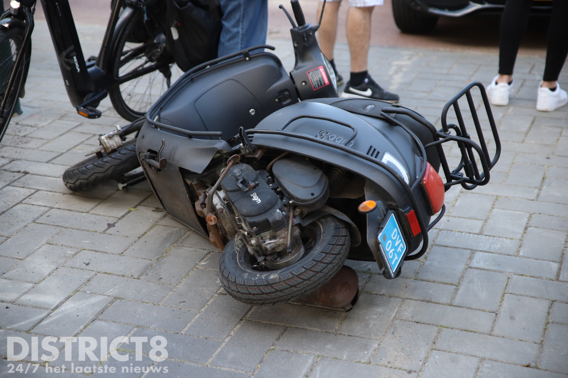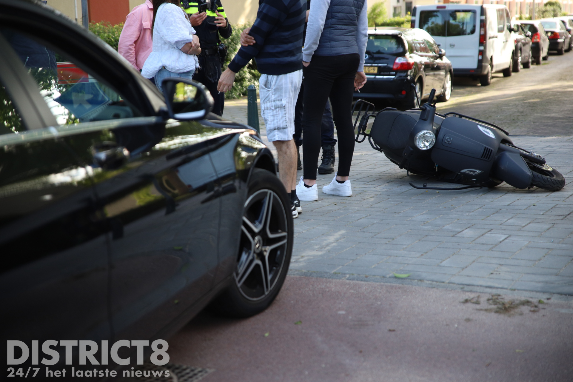 De bestuurder van de scooter vloog over de motorkap en kwam hard op de grond terecht. Hij raakte daarbij gewond en moest in een ambulance worden behandeld. Na controle is hij naar het ziekenhuis vervoerd. De bijrijder raakte lichtgewond.