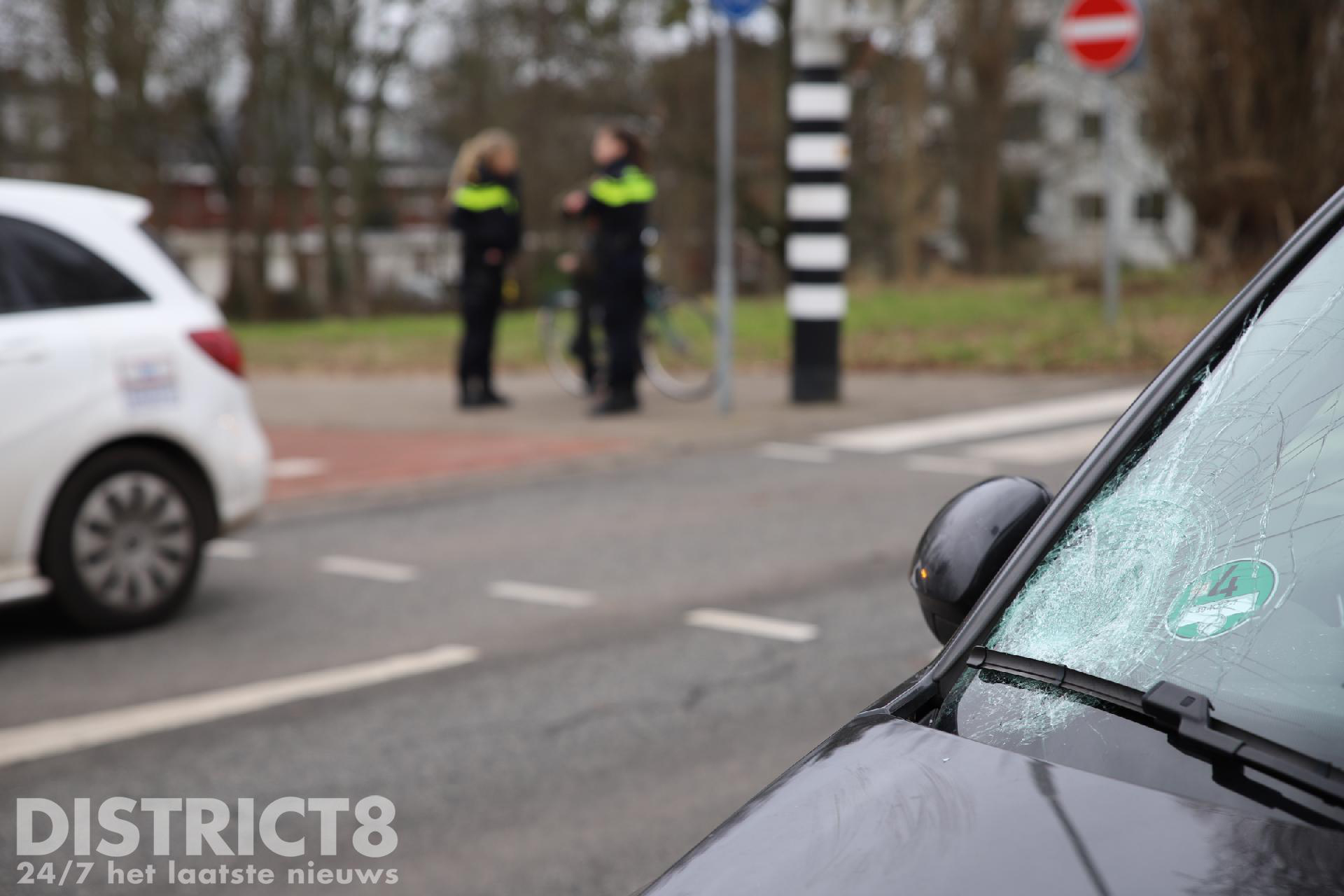 Even voor half twaalf ging het mis. De fietser kwam met zijn hoofd tegen de voorruit van de auto aan en kwam met flinke snelheid op het asfalt terecht.
